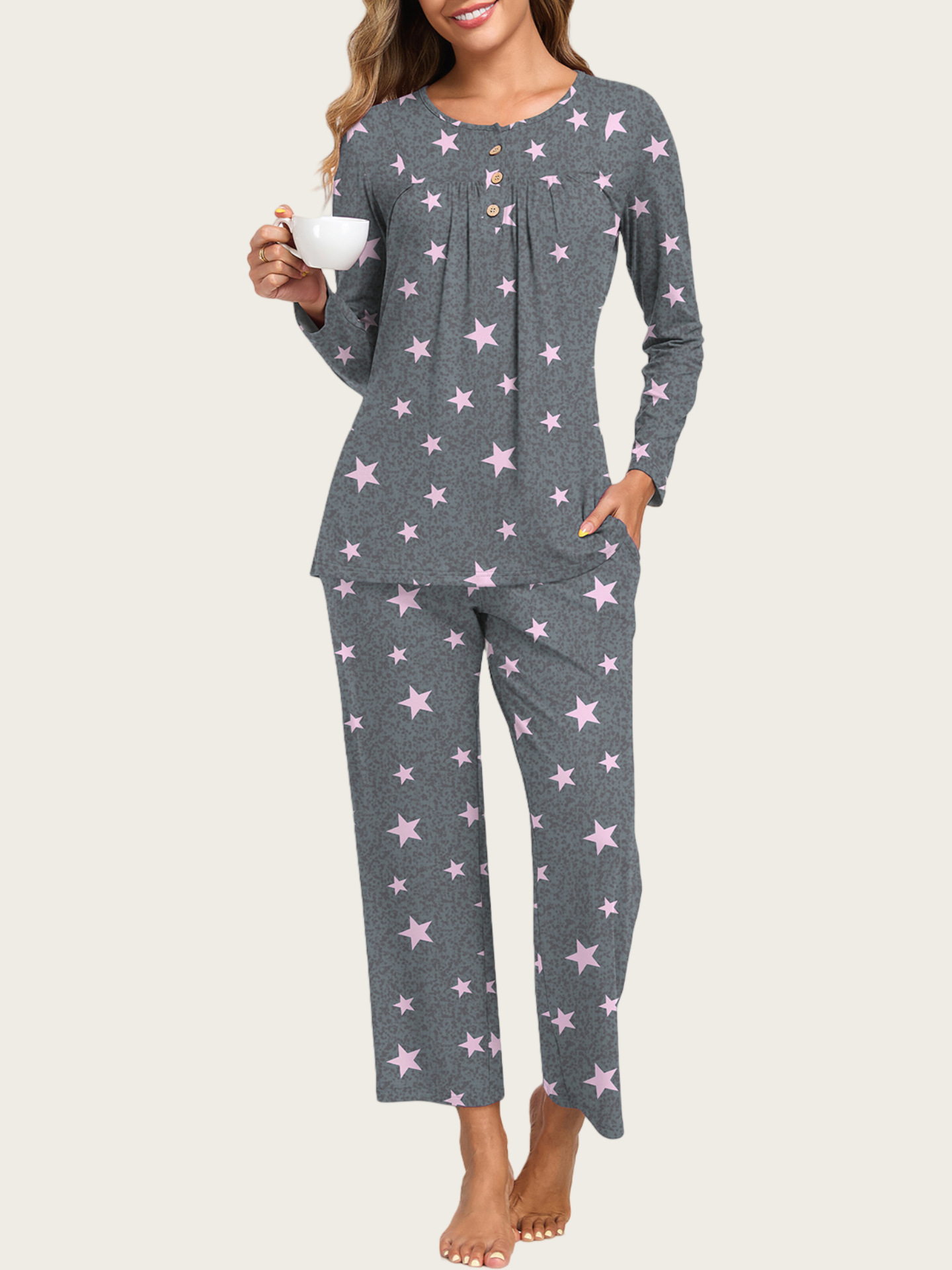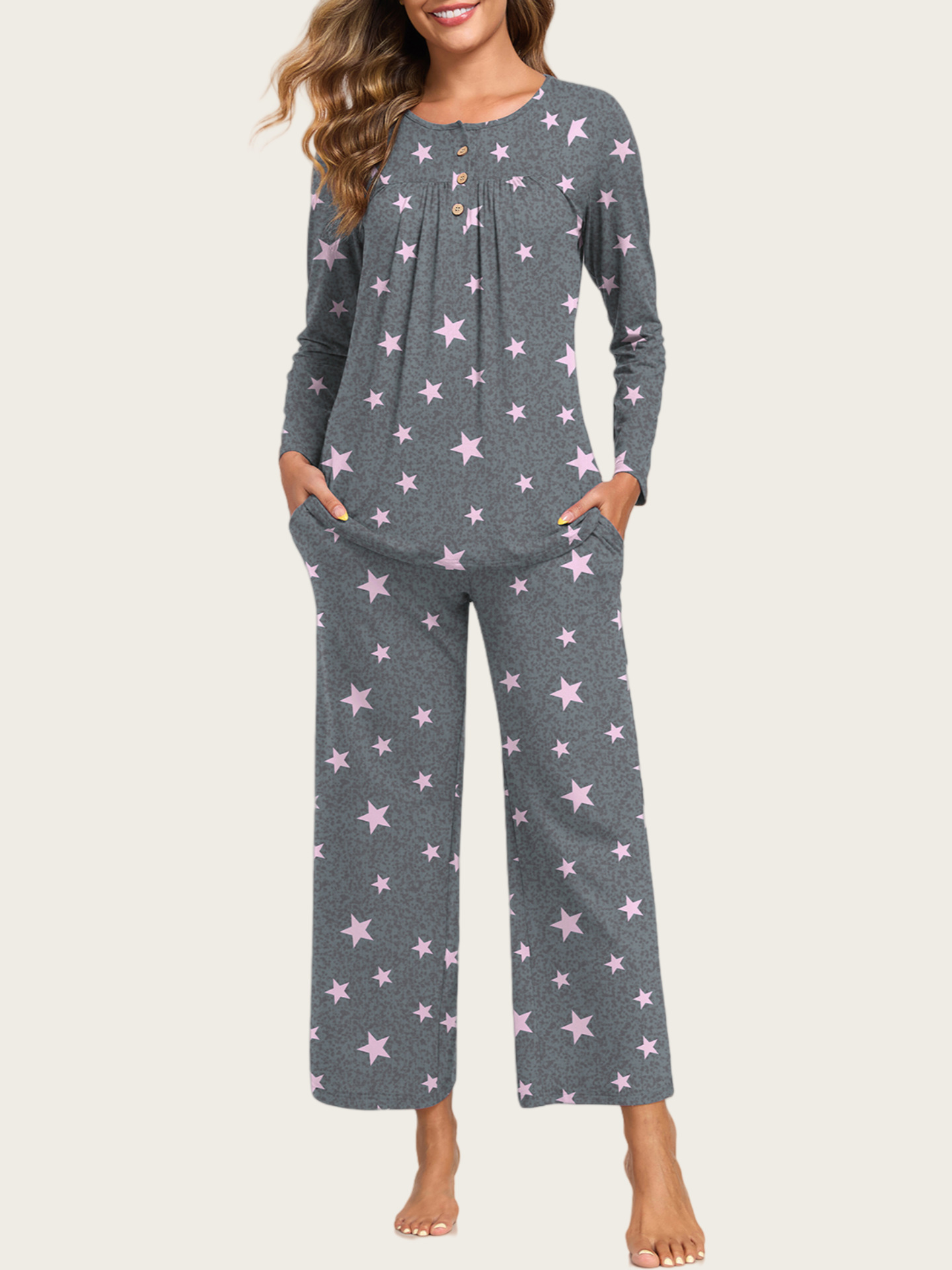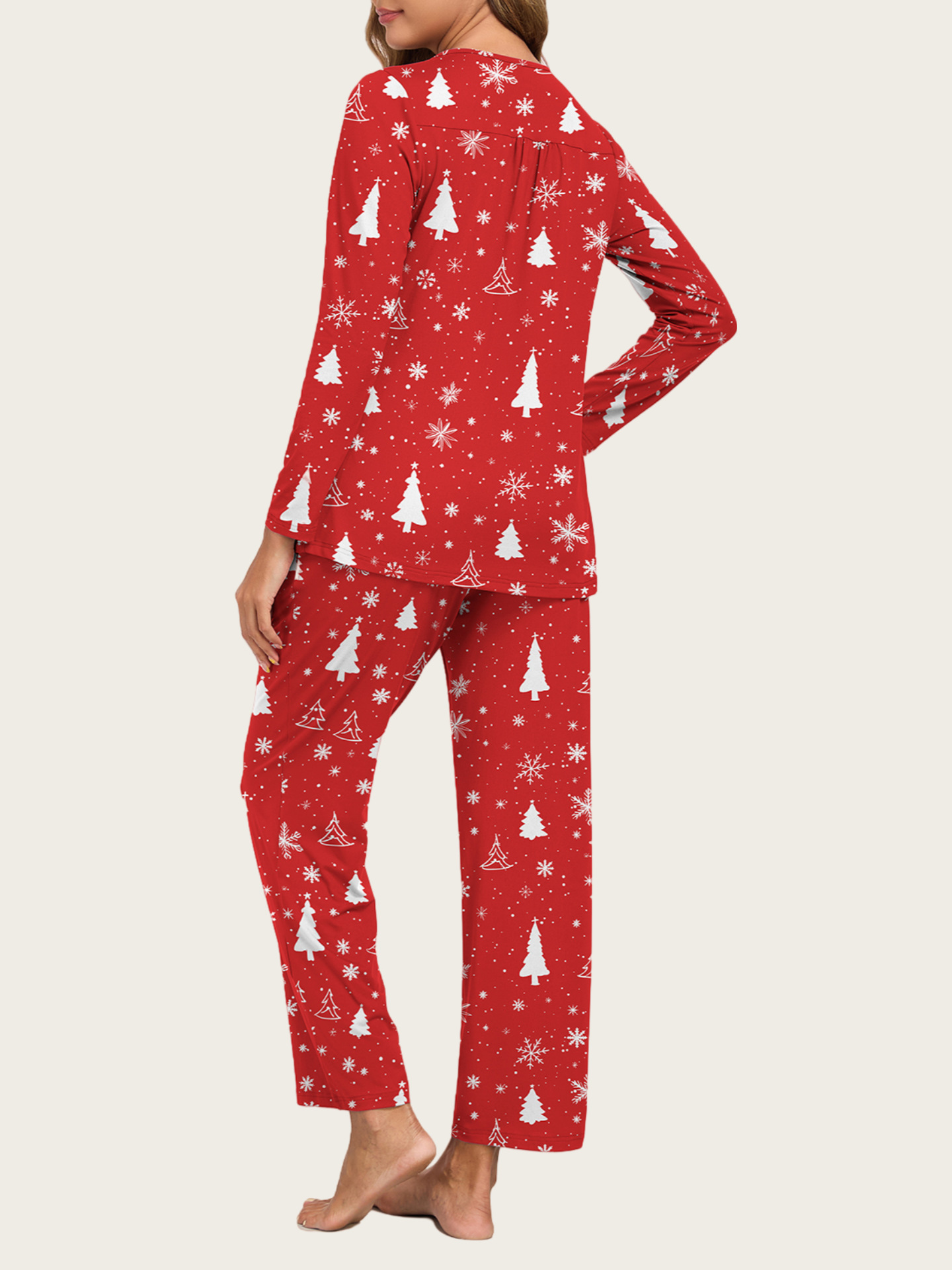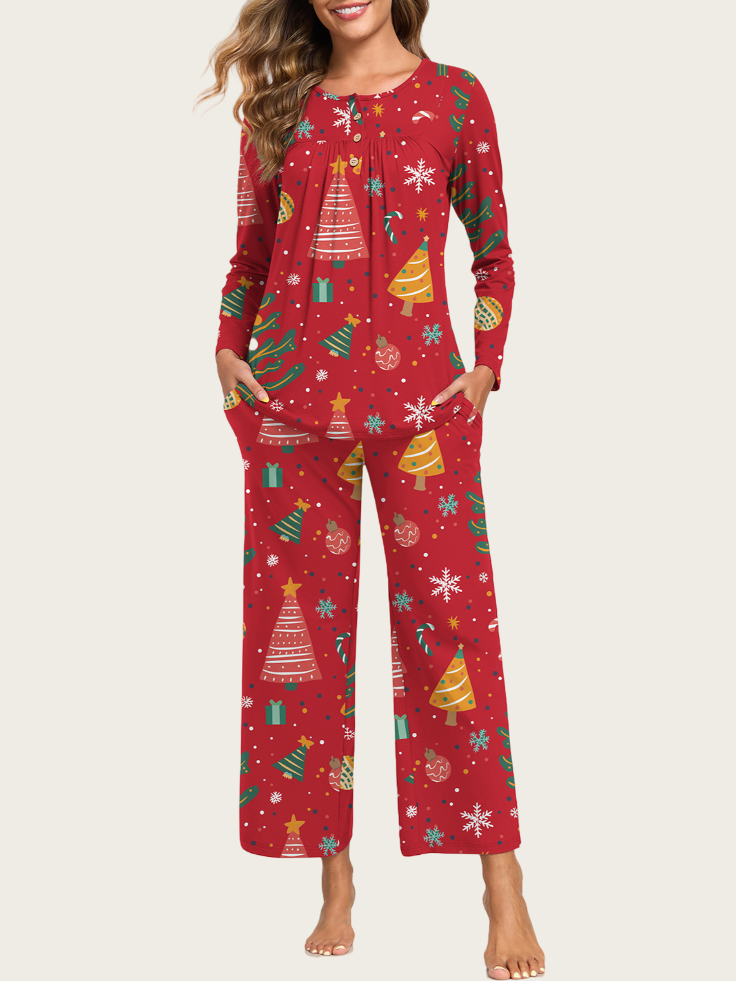 0 Review for 2-Piece Casual Christmas Pajama Set With Pockets