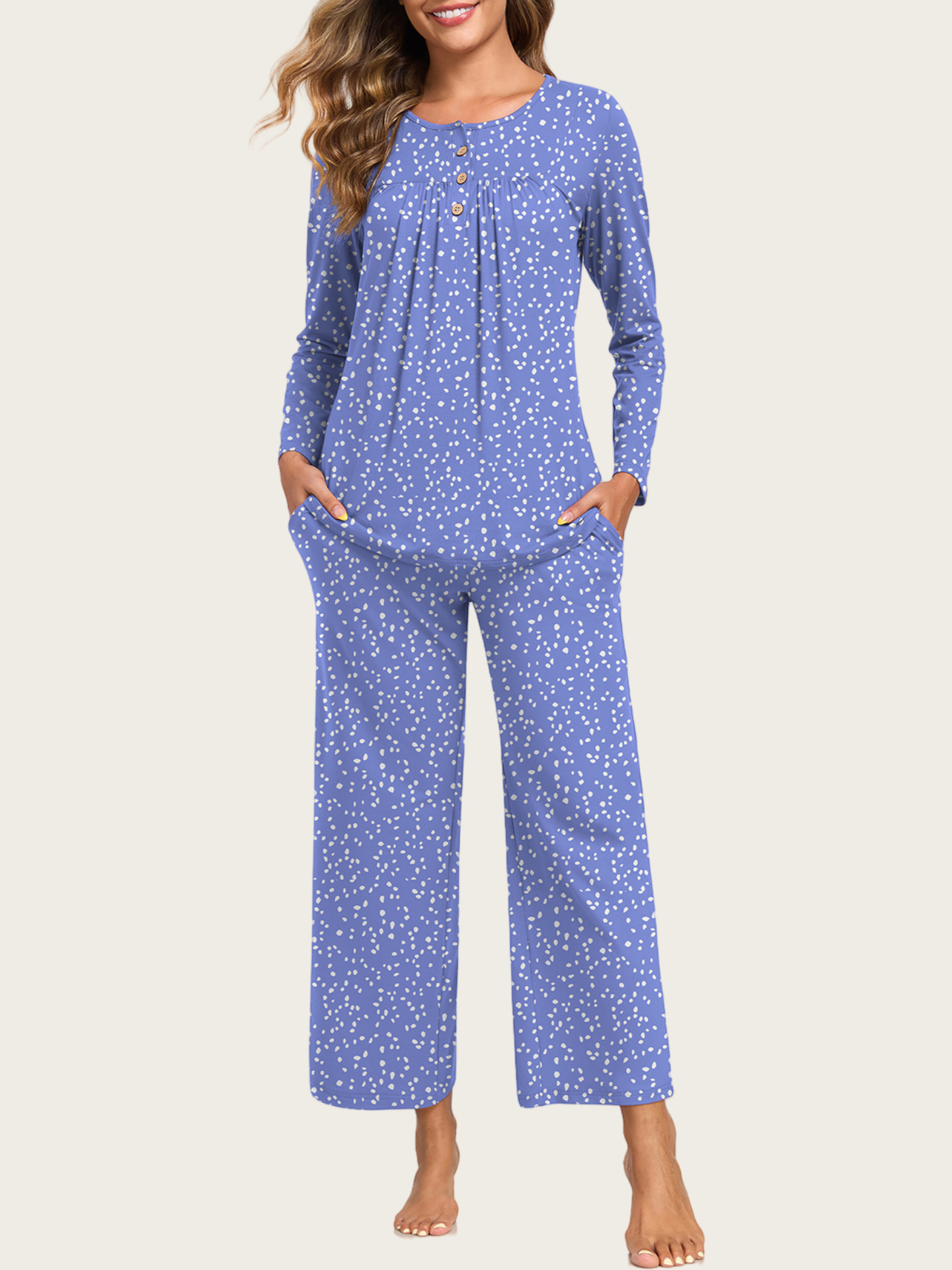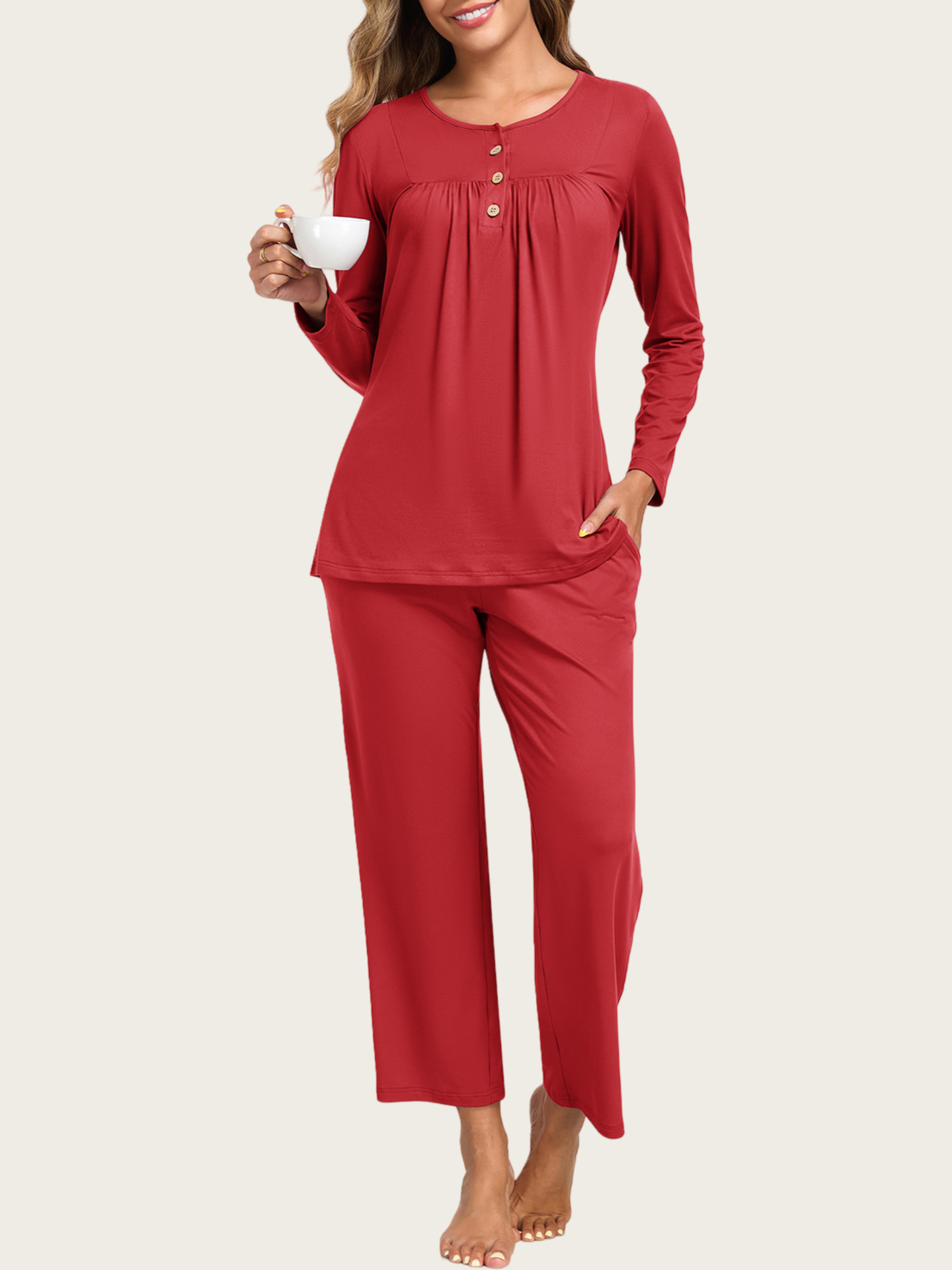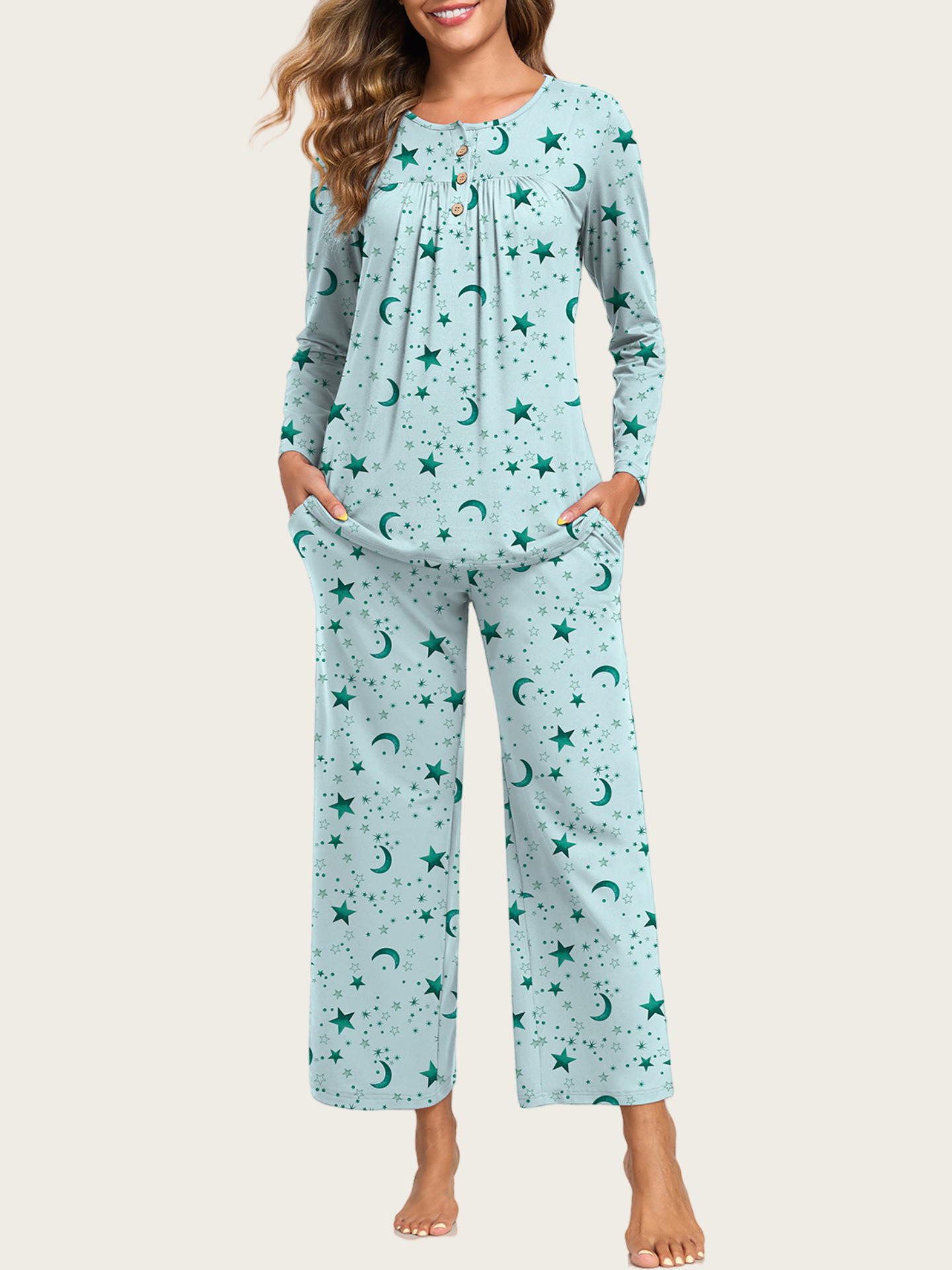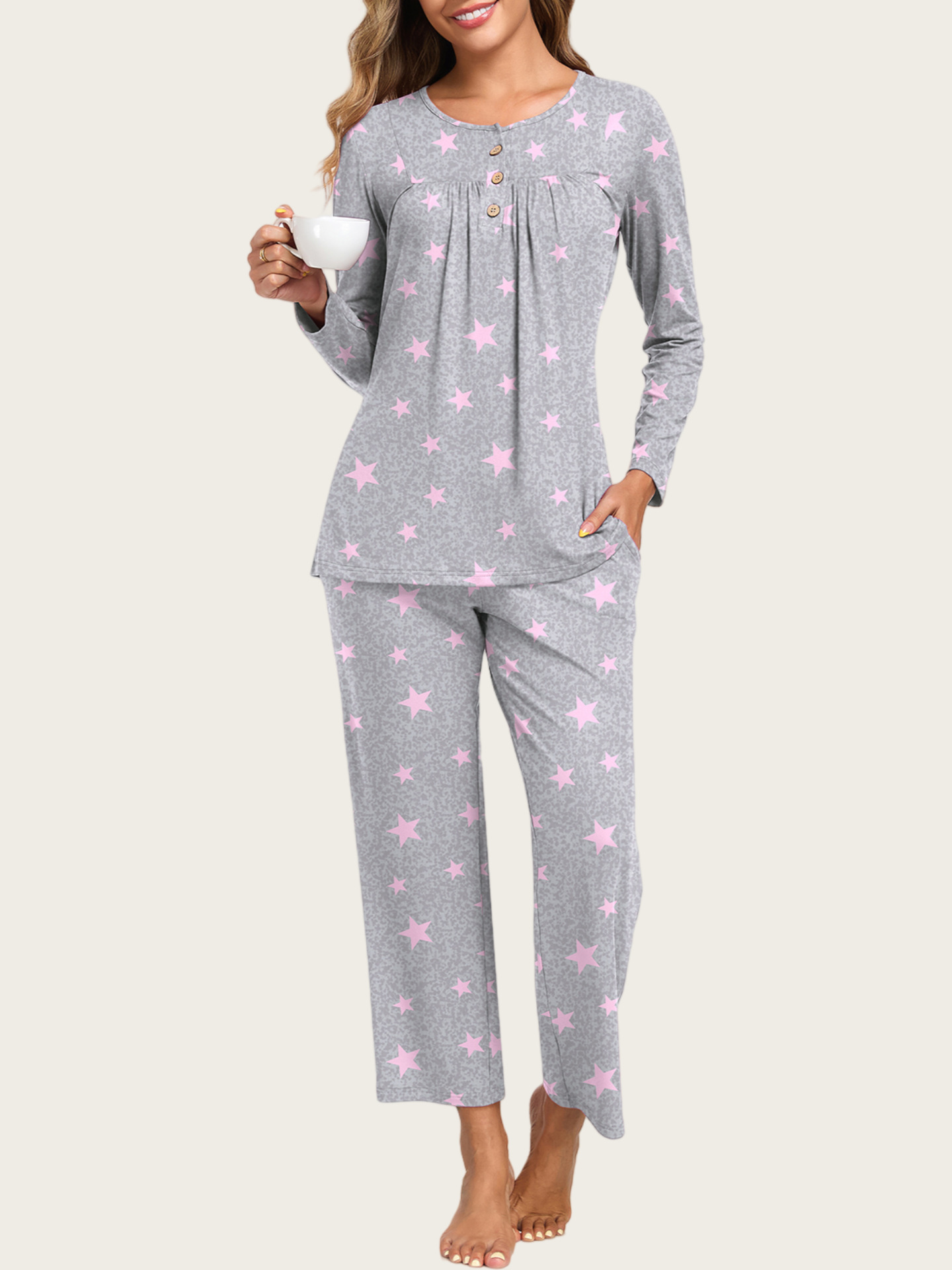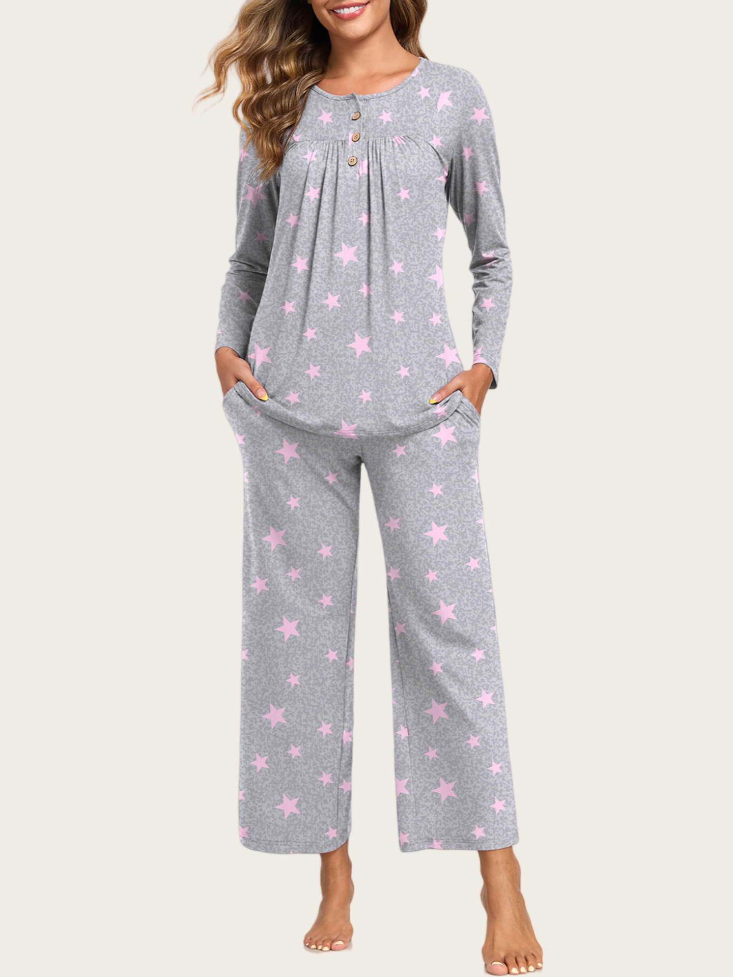 0 Review for 2-Piece Casual Christmas Pajama Set With Pockets