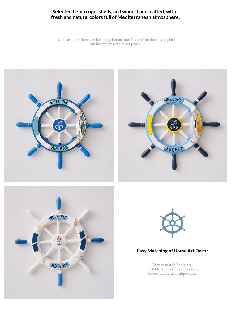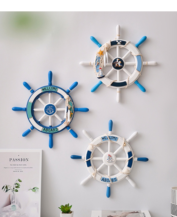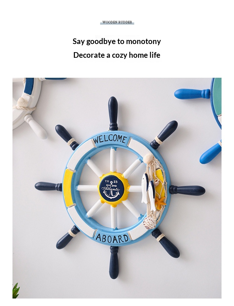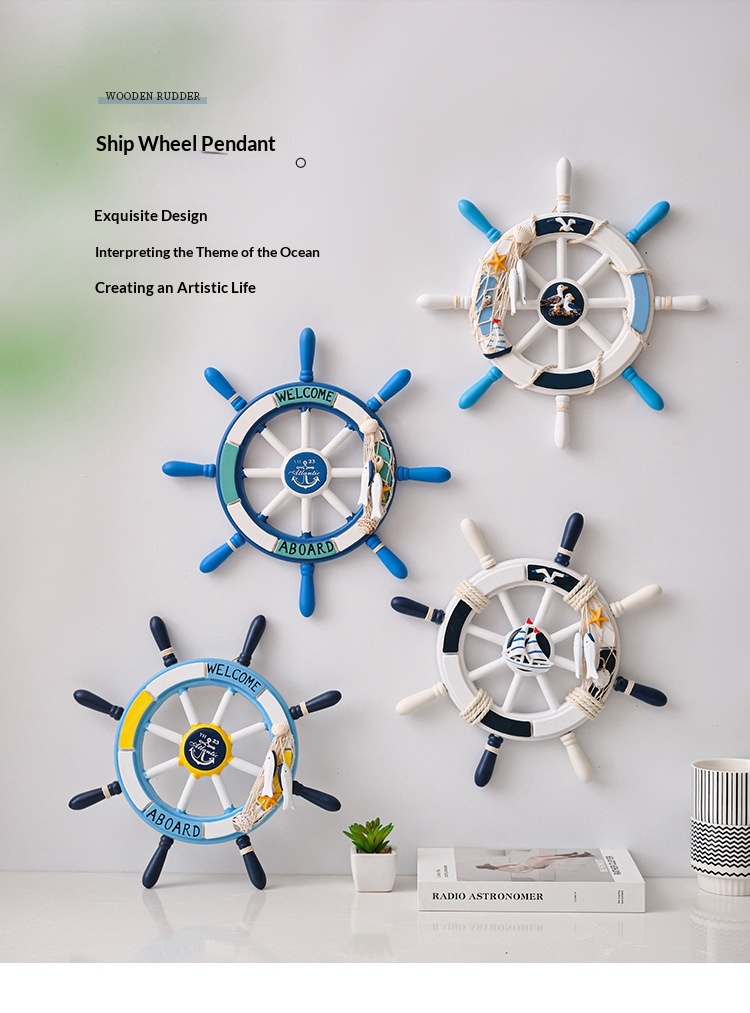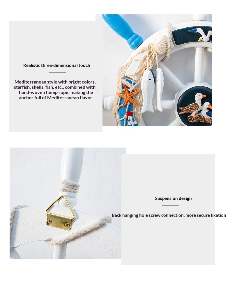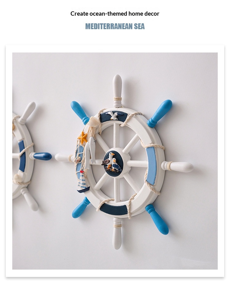 34 Cm Mediterranean-style Decorative Wall Hanging With A Mesh Wooden Ships Wheel