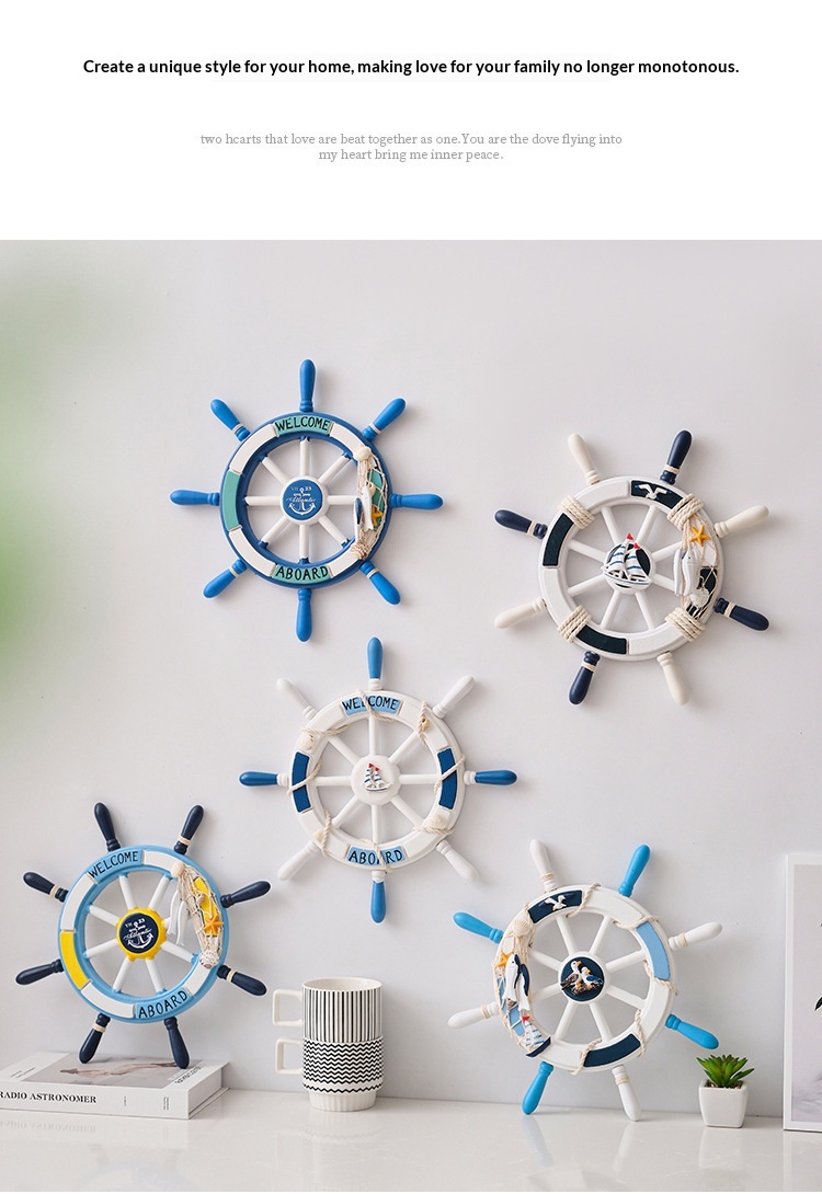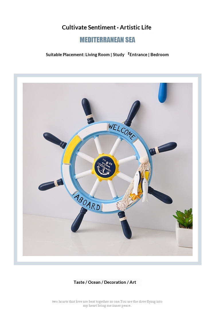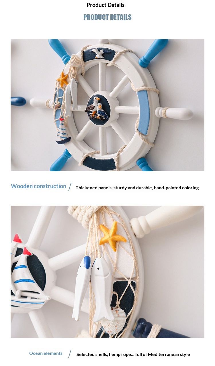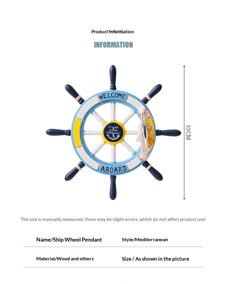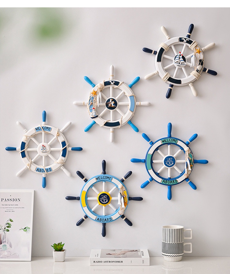 34 Cm Mediterranean-style Decorative Wall Hanging With A Mesh Wooden Ships Wheel