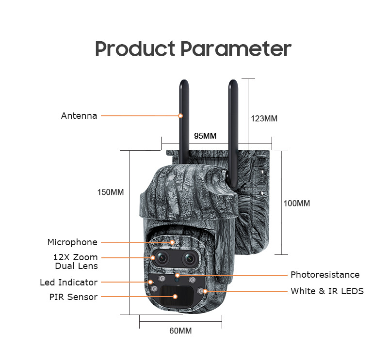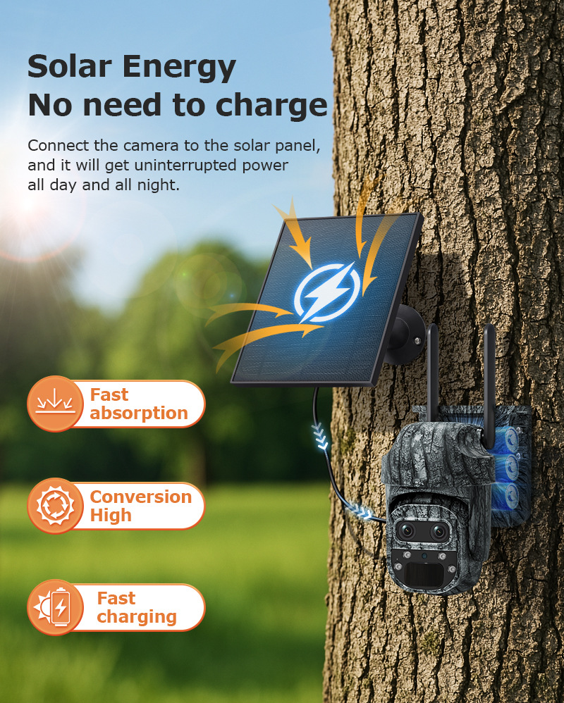 6 Million HD Night Vision Camera Low Power Consumption 4G Solar Camouflage Camera