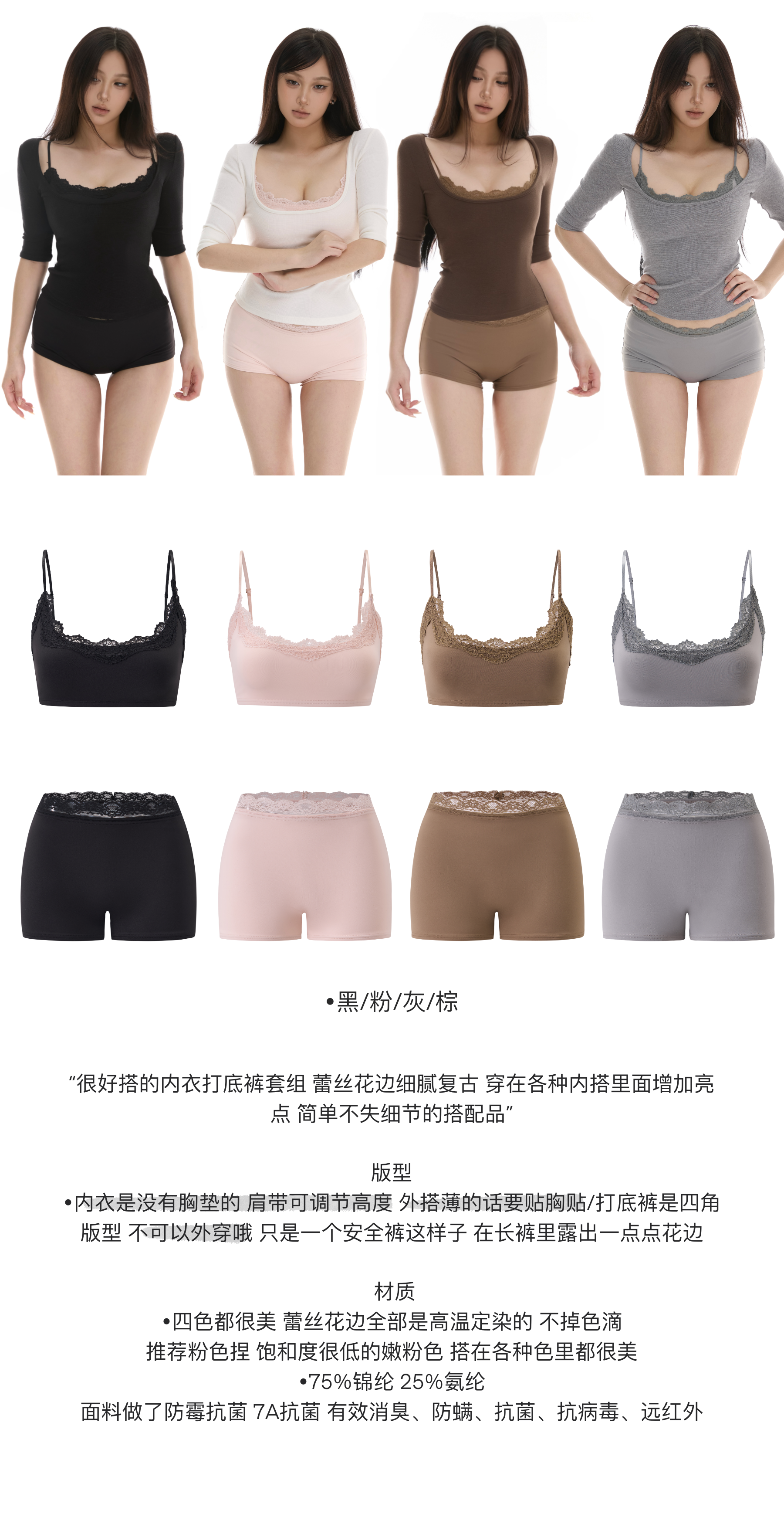 0 Review for 7A Antibacterial Dyeing Lace Trim Bra And Leggings Set