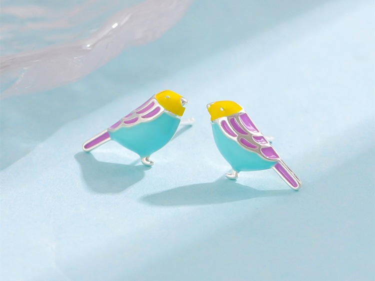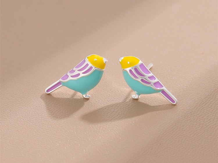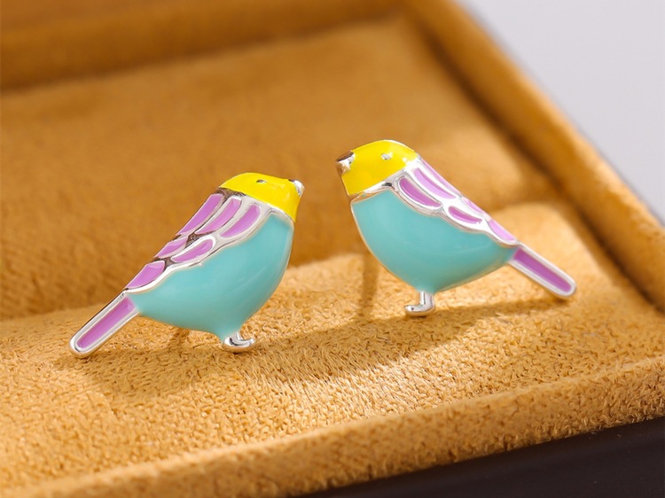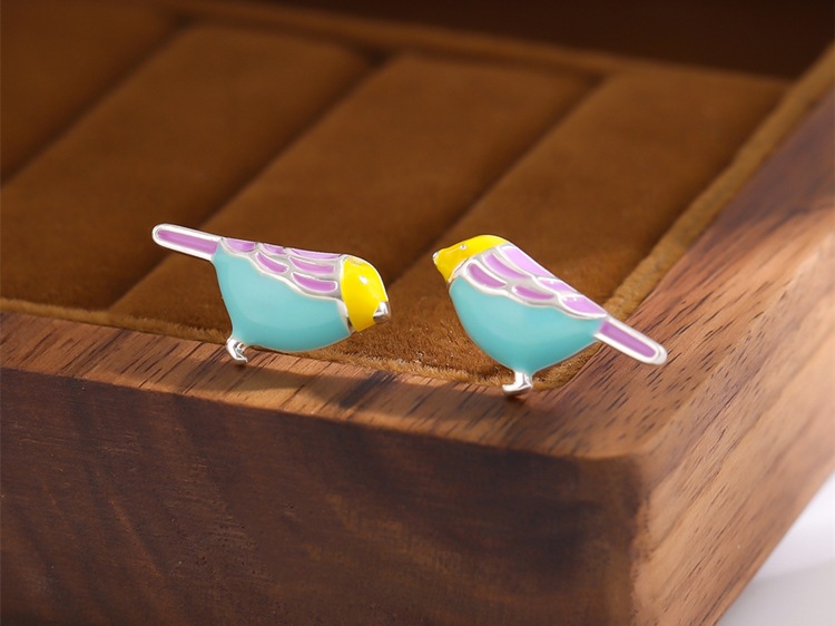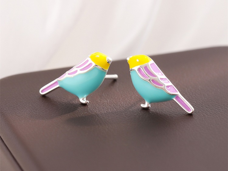 0 Review for 925 Sterling Silver Earrings Colorful Epoxy Bird Simple
