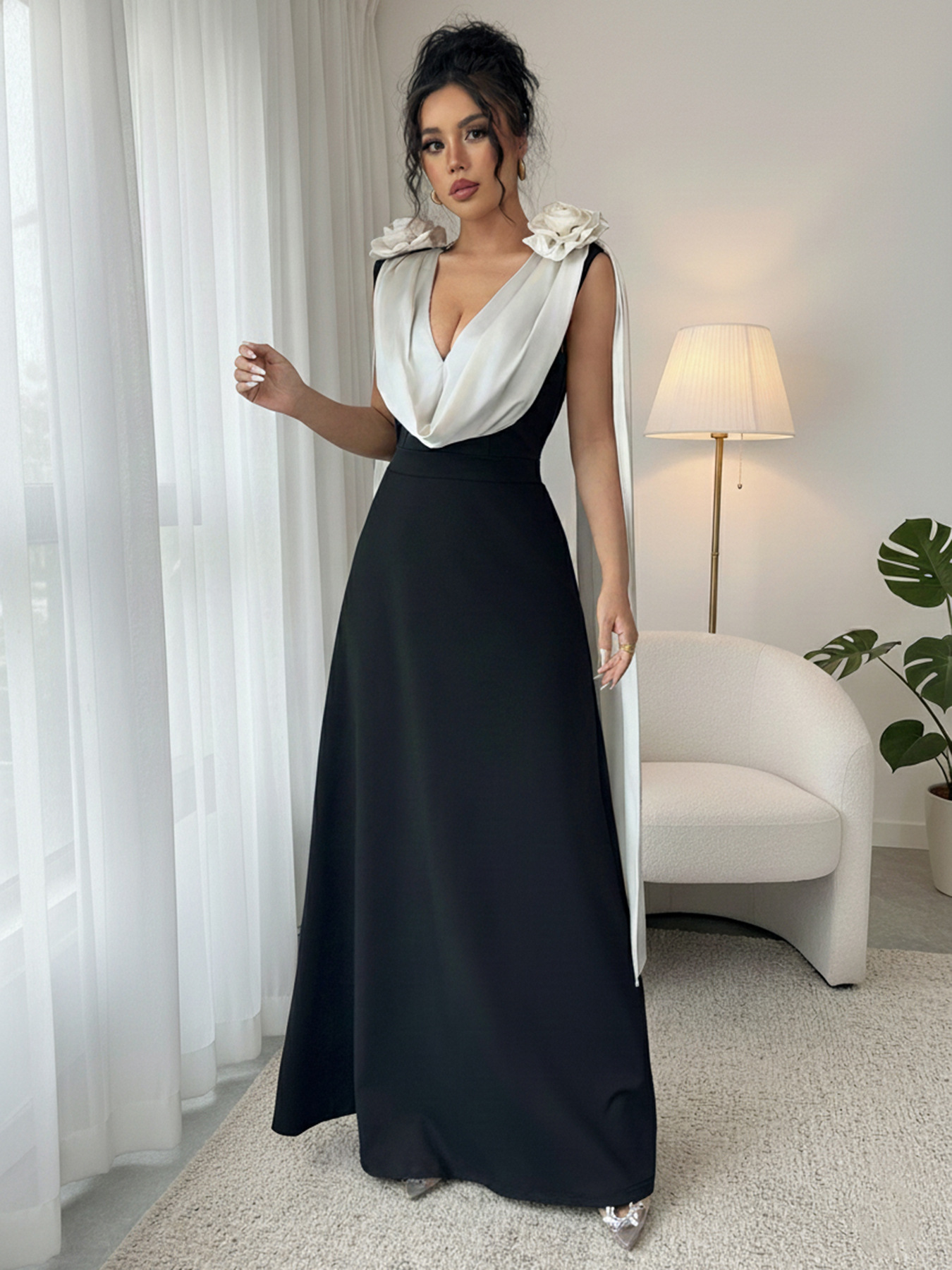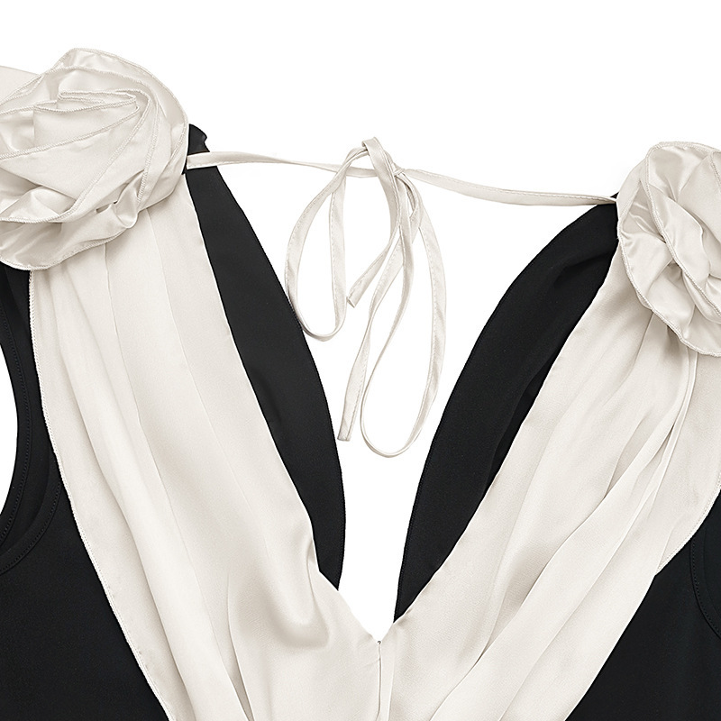 A High-end And Elegant V-neck Sleeveless Dress With Contrasting Colors