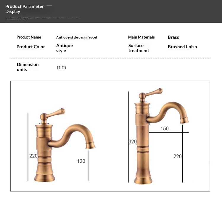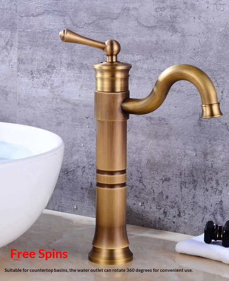 All-Copper Retro European-Style Tall Single-Hole Hot And Cold Water Faucet