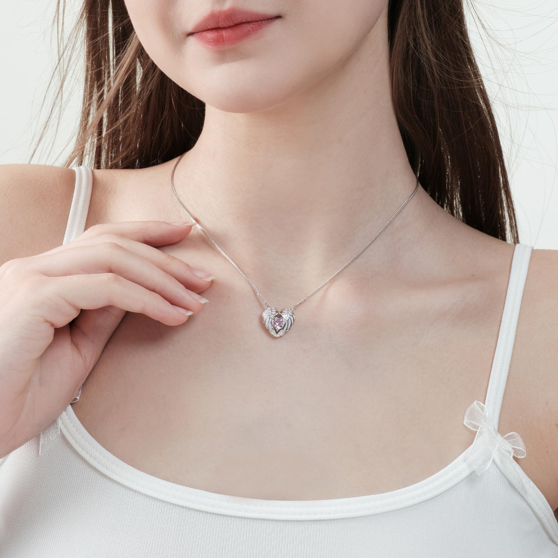 Angel Wings Heart-shaped Collarbone Necklace Angel Wings Oil Dripping Lady