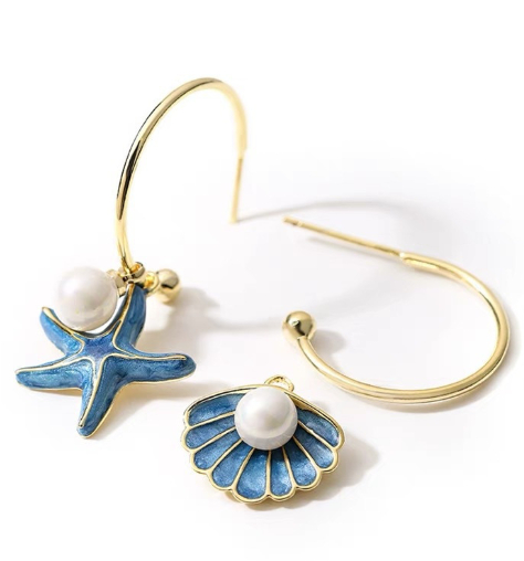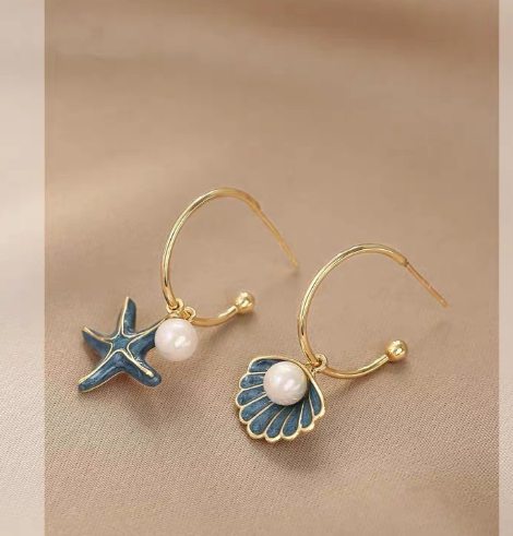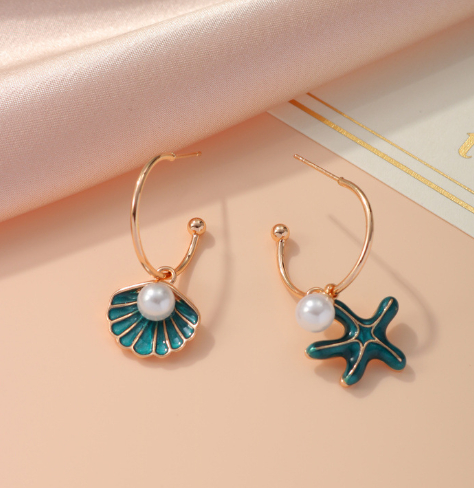 0 Review for Asymmetric Pearl Shell And Starfish Earrings