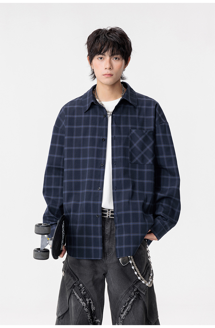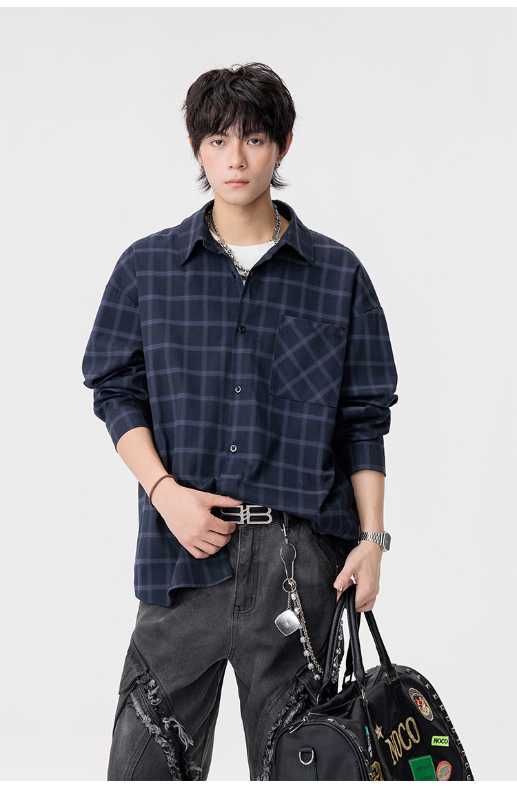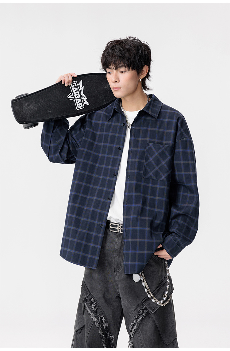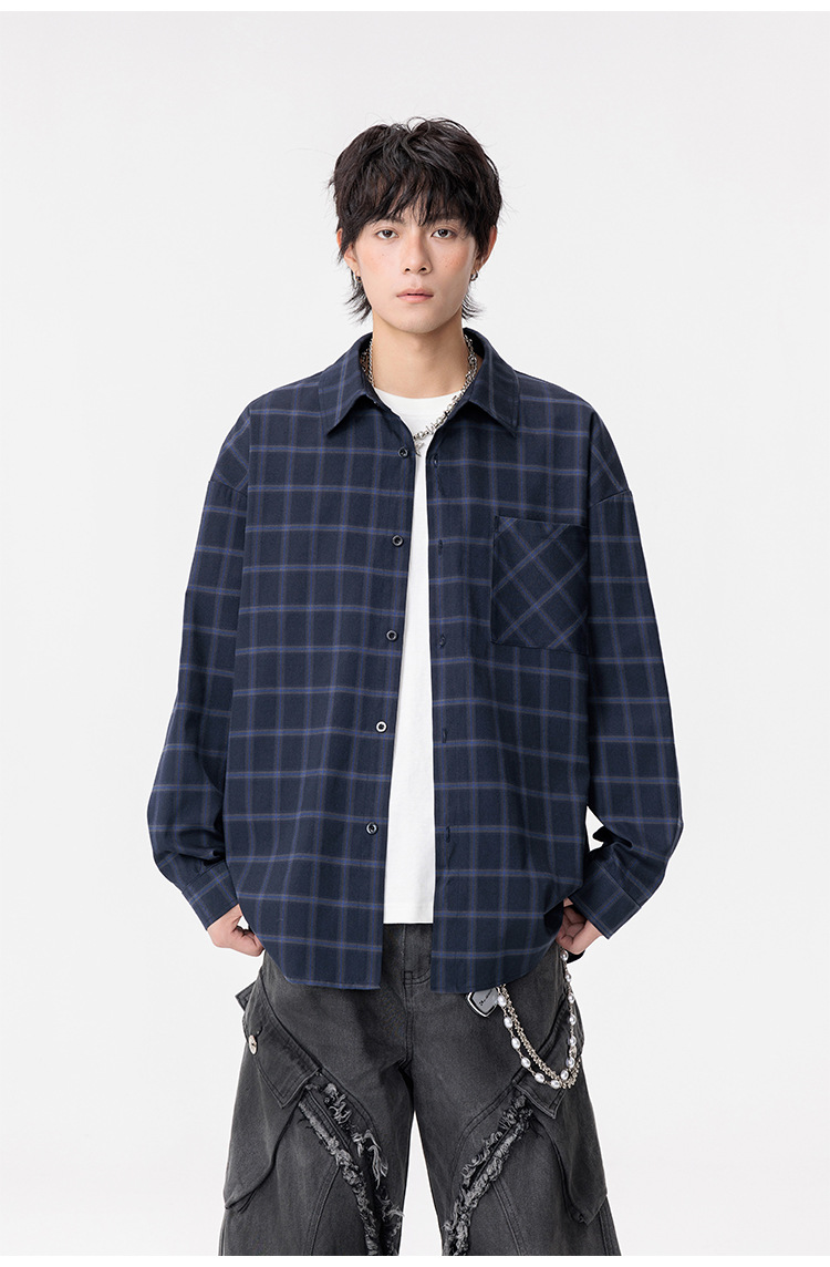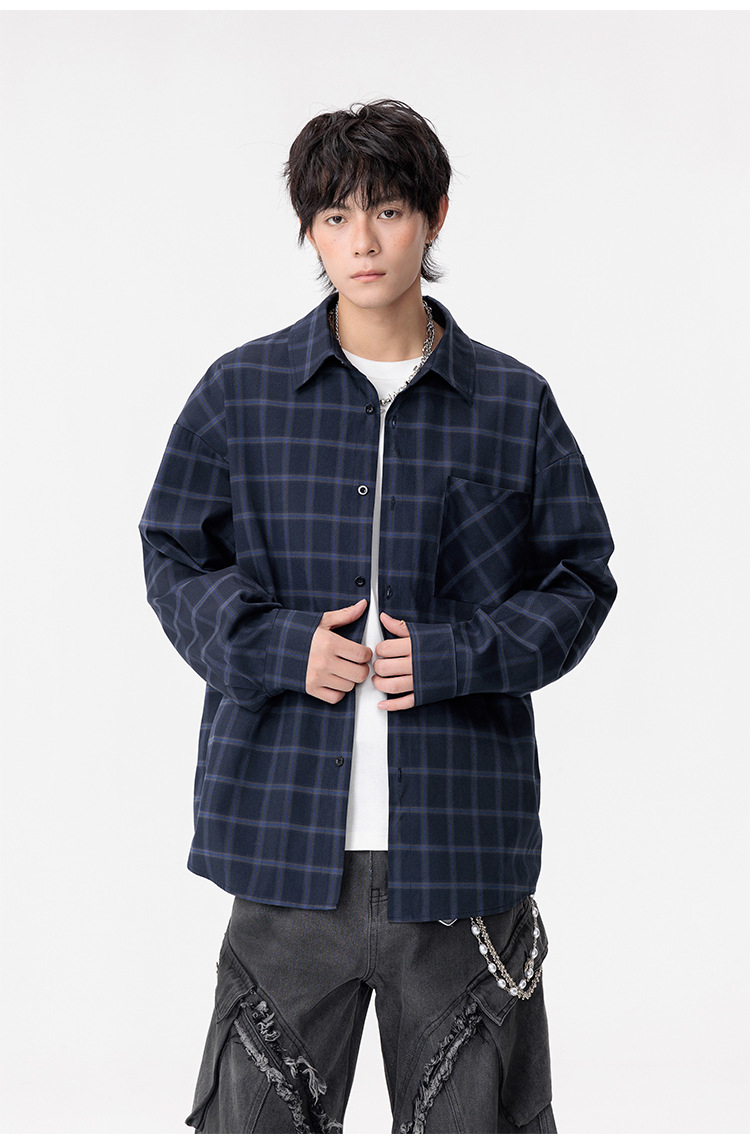 Autumn New Casual Large Size Long Sleeve Plaid Lapel Loose Shirt Coat