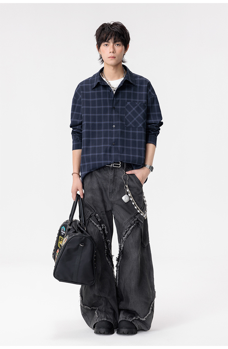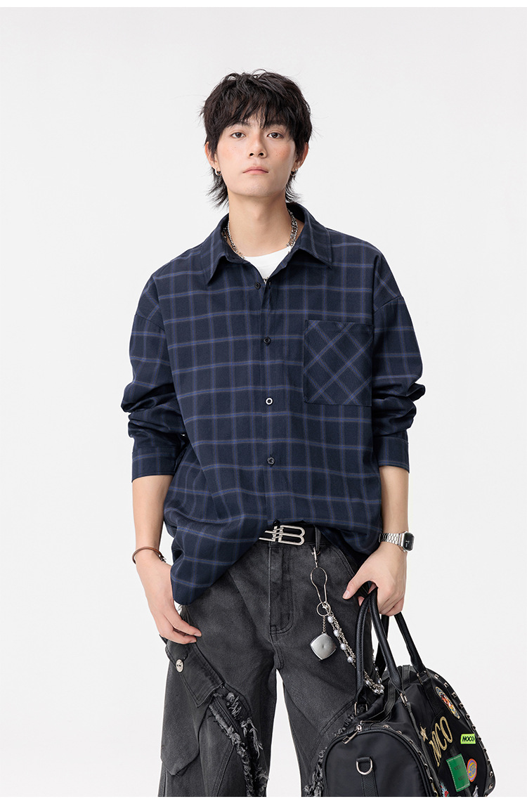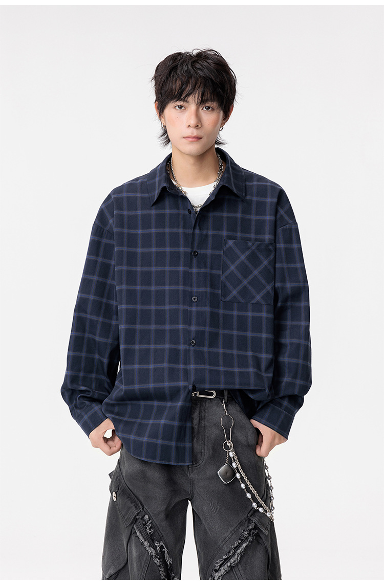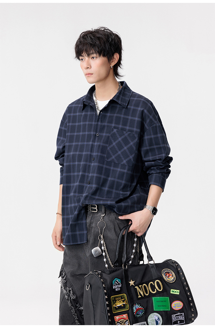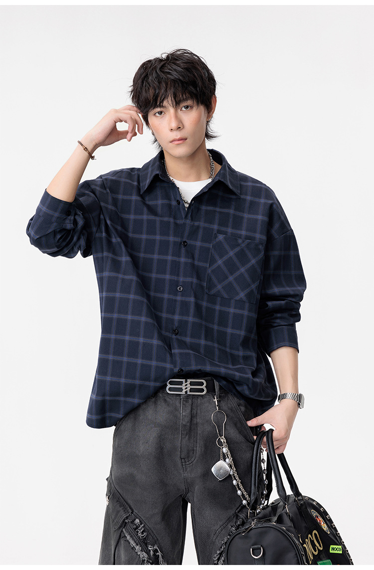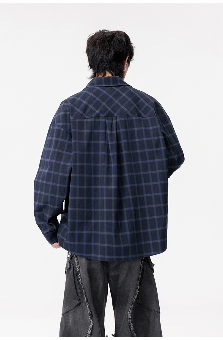 Autumn New Casual Large Size Long Sleeve Plaid Lapel Loose Shirt Coat
