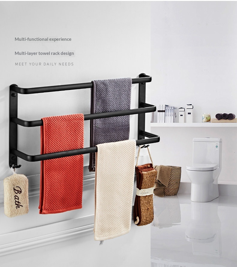 0 Review for Bathroom Towel Bar Bathroom Double-bar Storage Rack