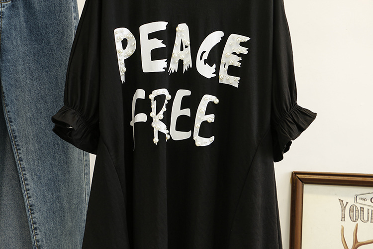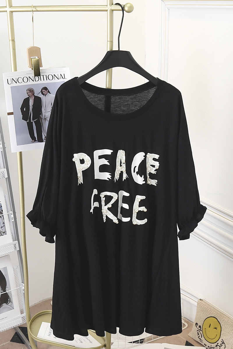 0 Review for Beaded Letters Belly Covering Loose Large Version T-shirt