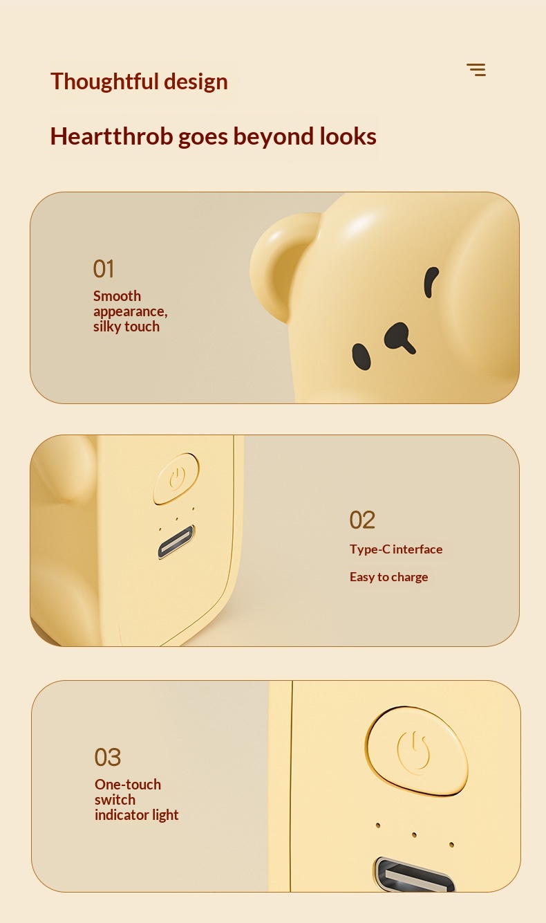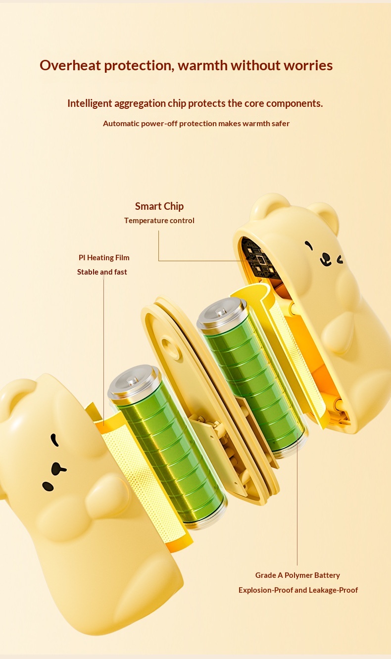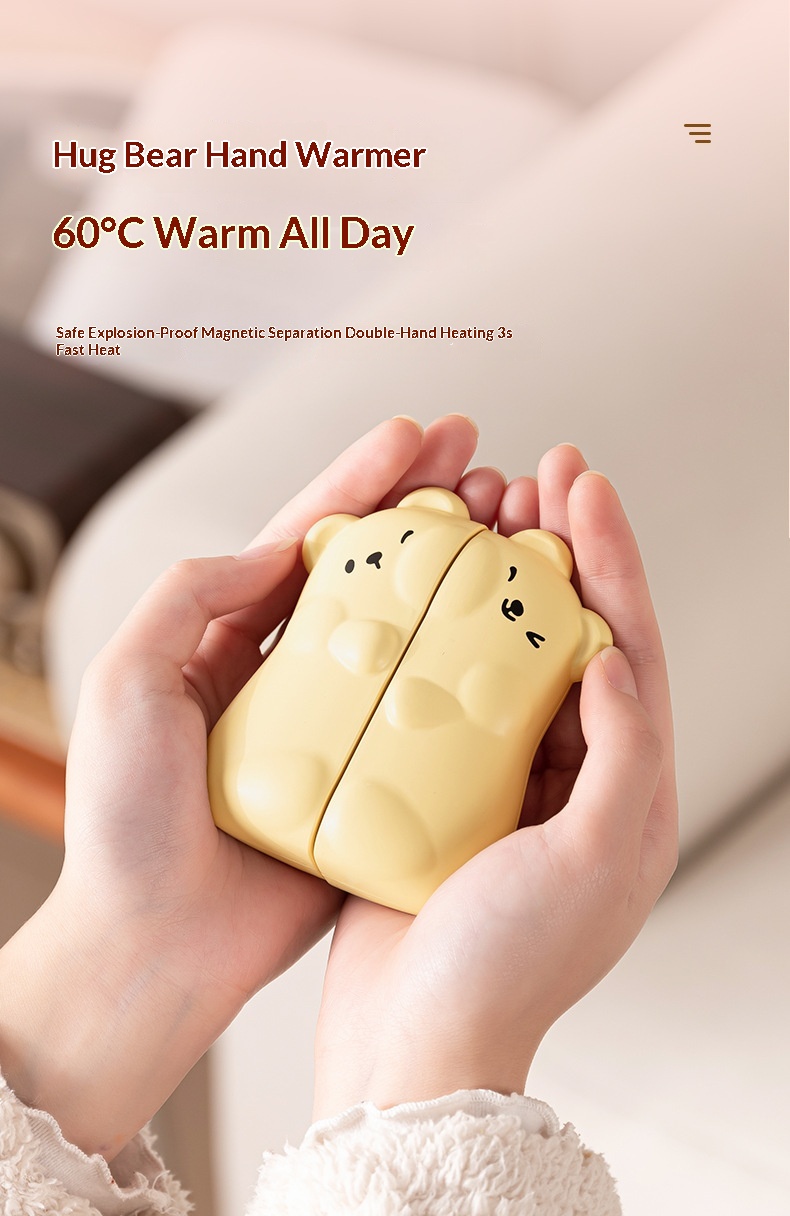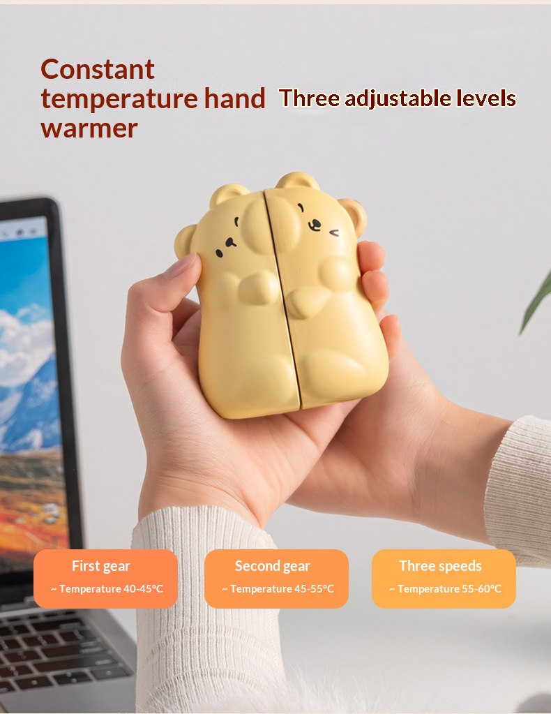 Bear-shaped Handheld Magnetic Detachable Mini Hand Warmer With Multiple Heat Settings And Rechargeable Battery