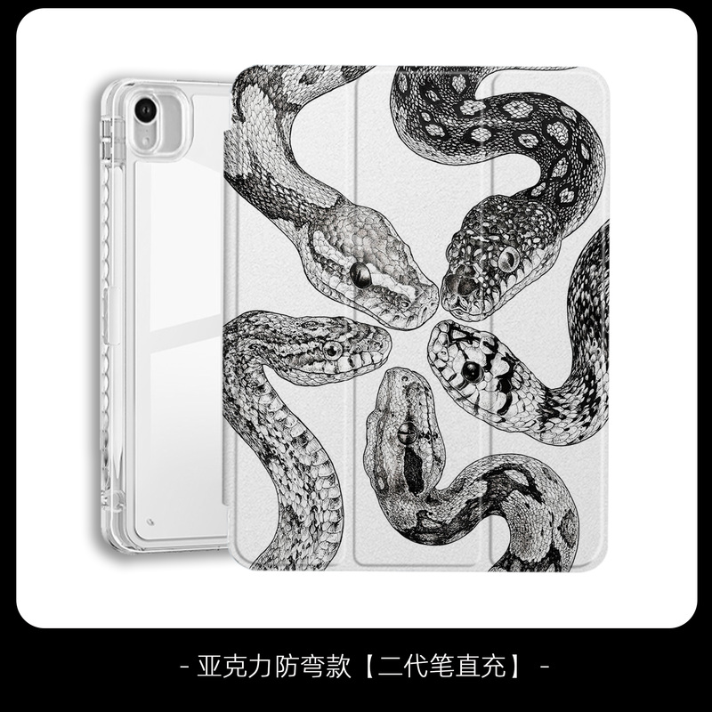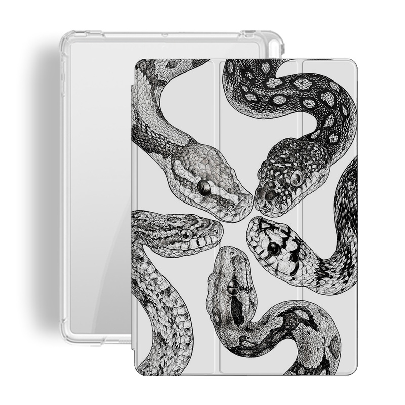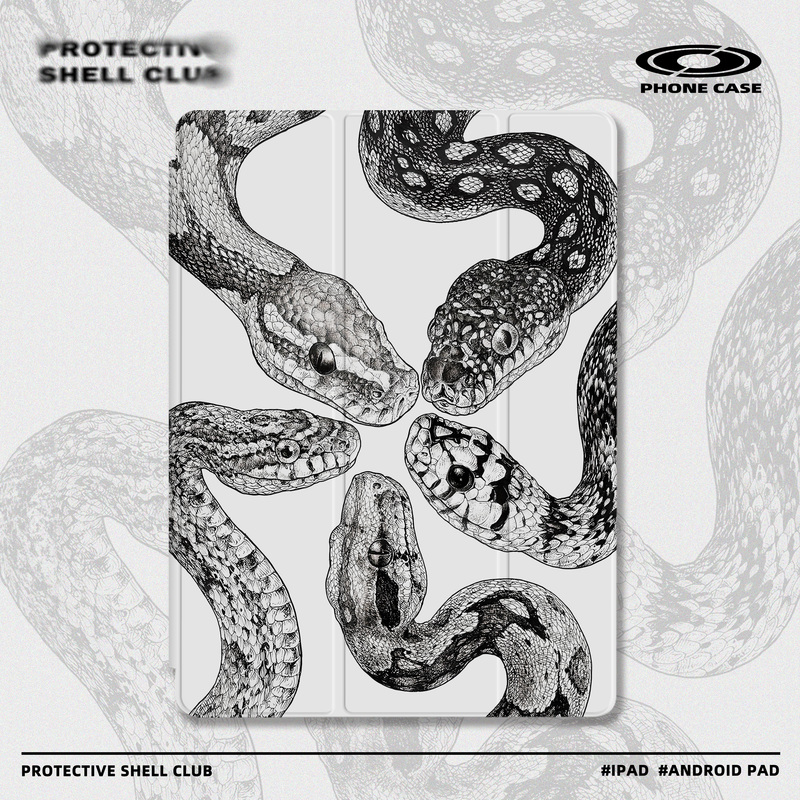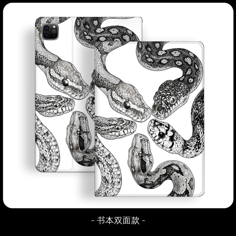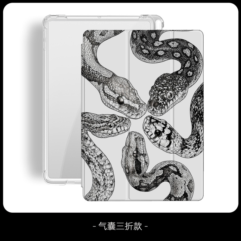 Black And White Niche Retro Python Illustration Tri-fold Airbag Protective Case