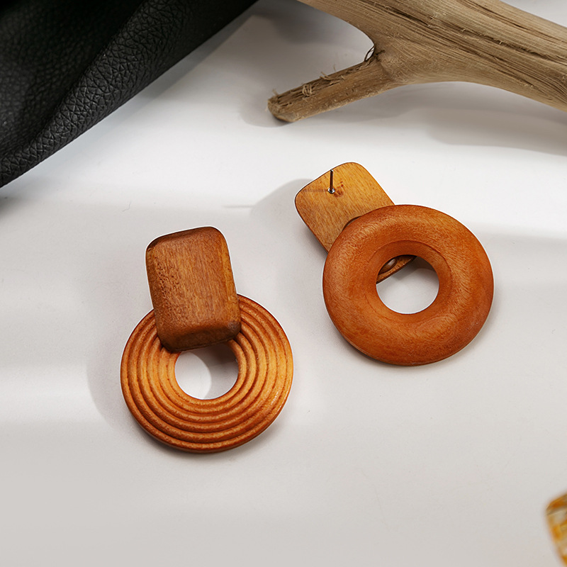 0 Review for Bohemian Exaggerated Wind Log Thread Geometric Round Earrings