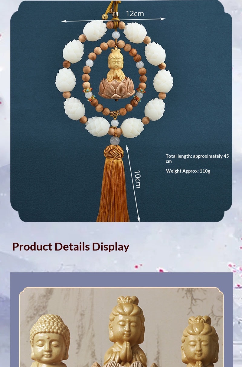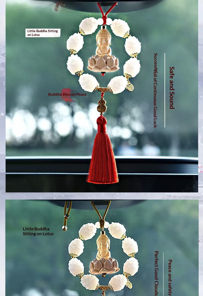 0 Review for Boxwood Small Buddha Rearview Mirror Car Hanging Ornament Pendant