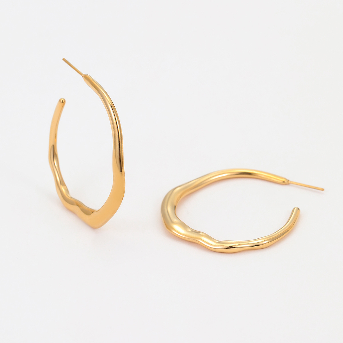 0 Review for C- Ring Earrings Stainless Steel Plated 18K Gold Earrings
