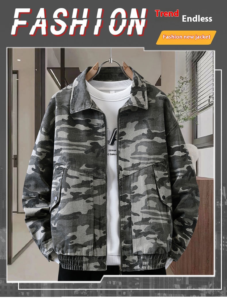 Camouflage American Casual Polo Collar Jacket Men's Spring And Autumn