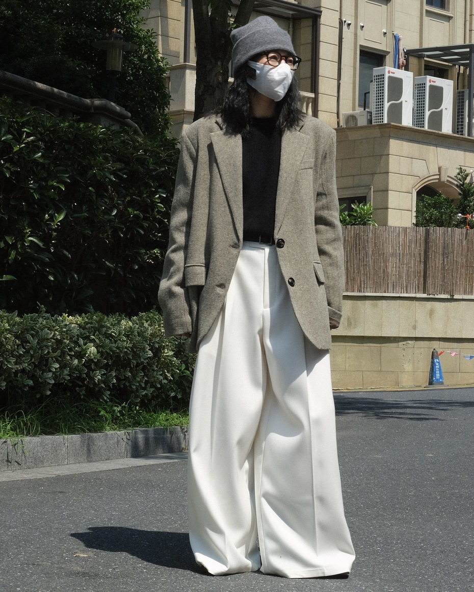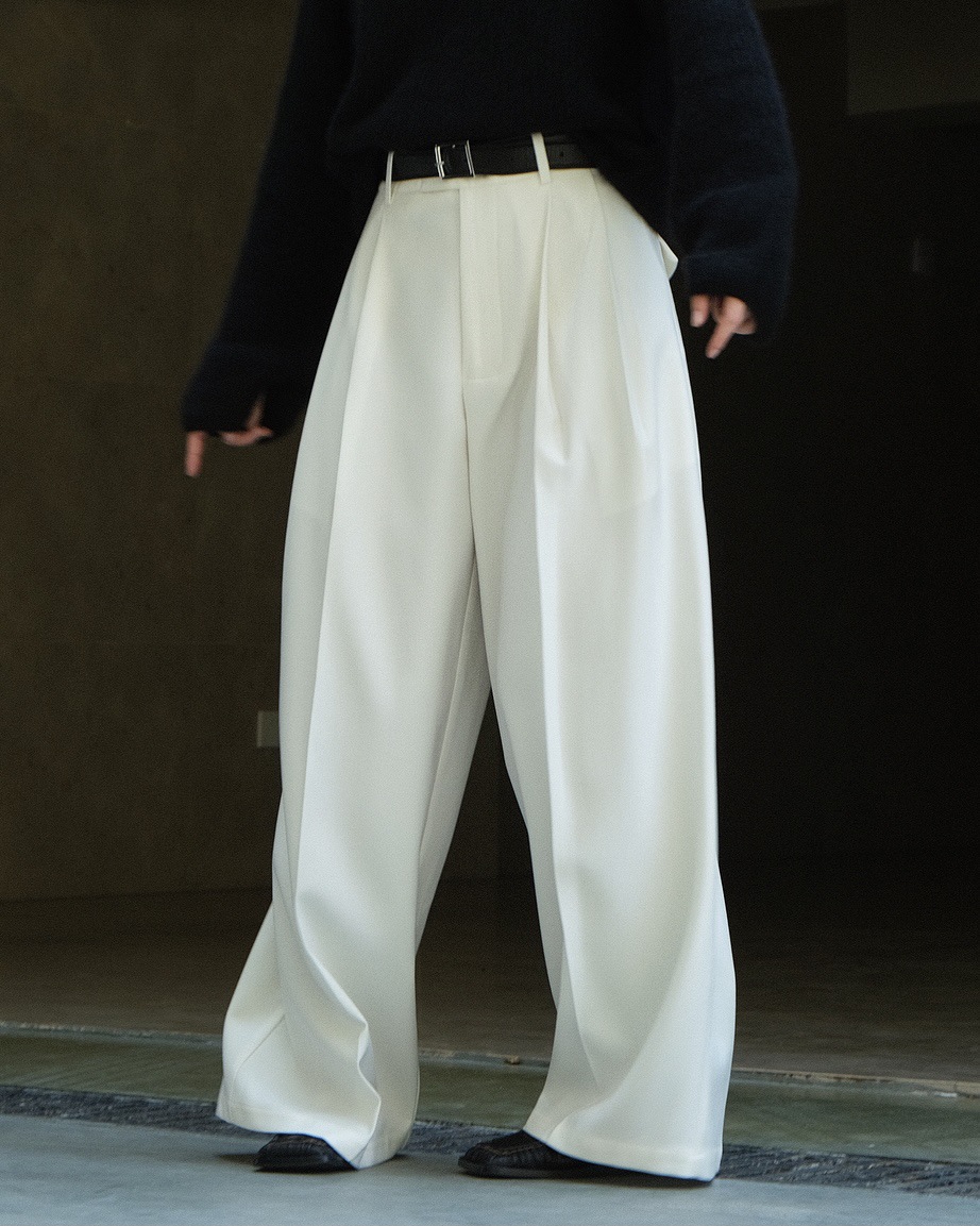 Casual Style Three-dimensional Pleated Suit Pants Loose Drooping Women
