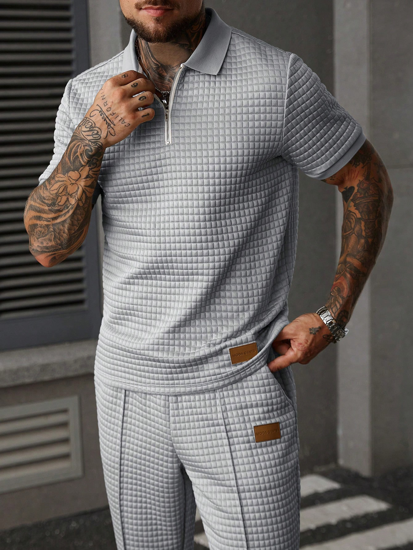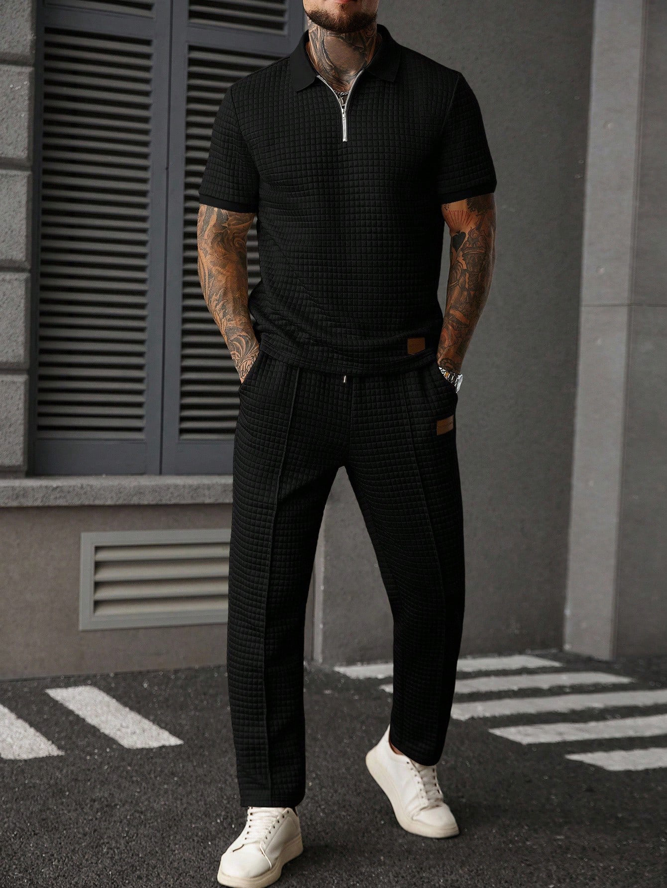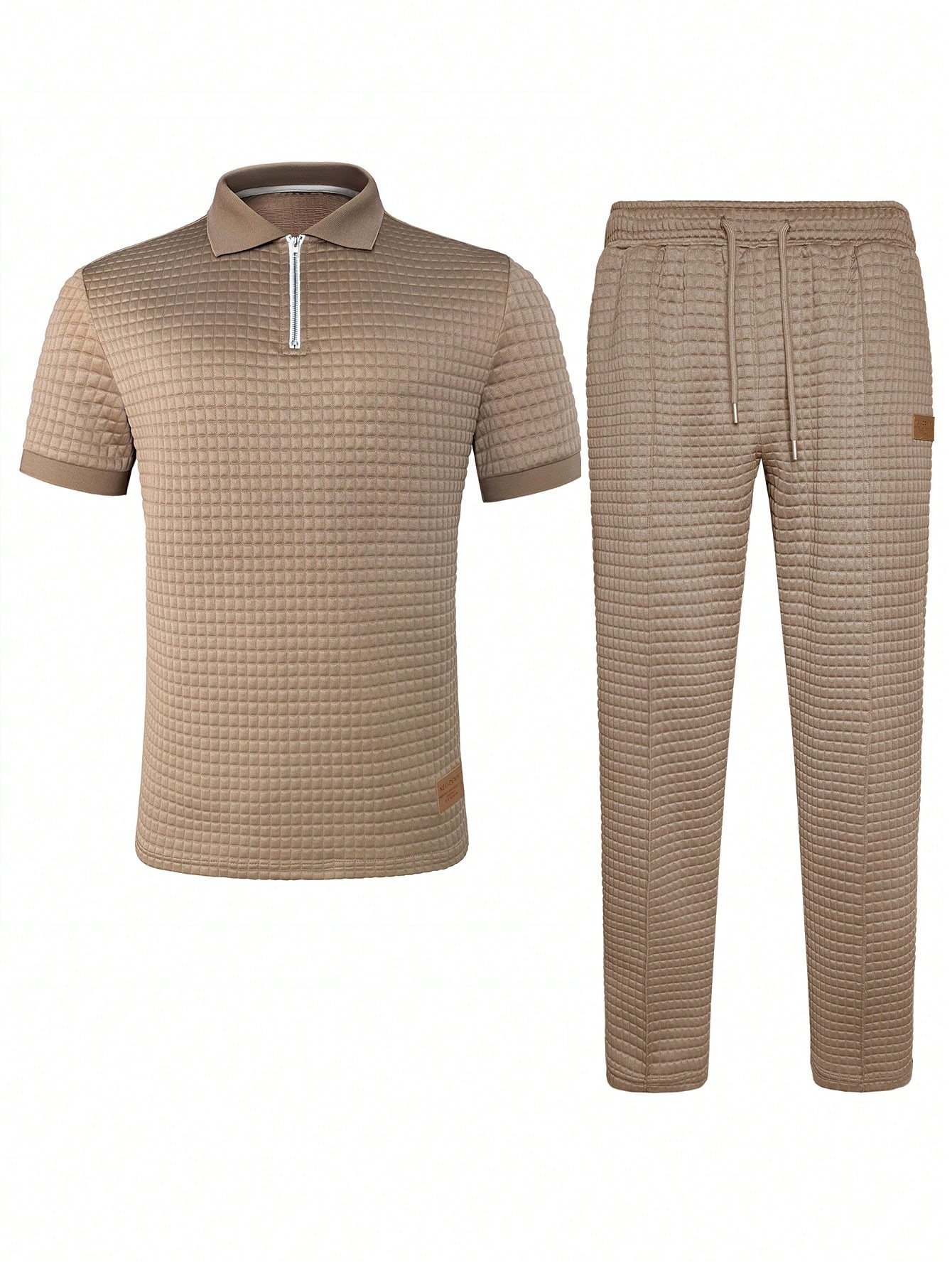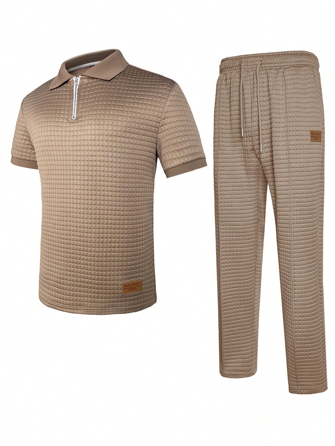 0 Review for Casual Zip-Up Polo Shirt Top And Pants Two-Piece Set