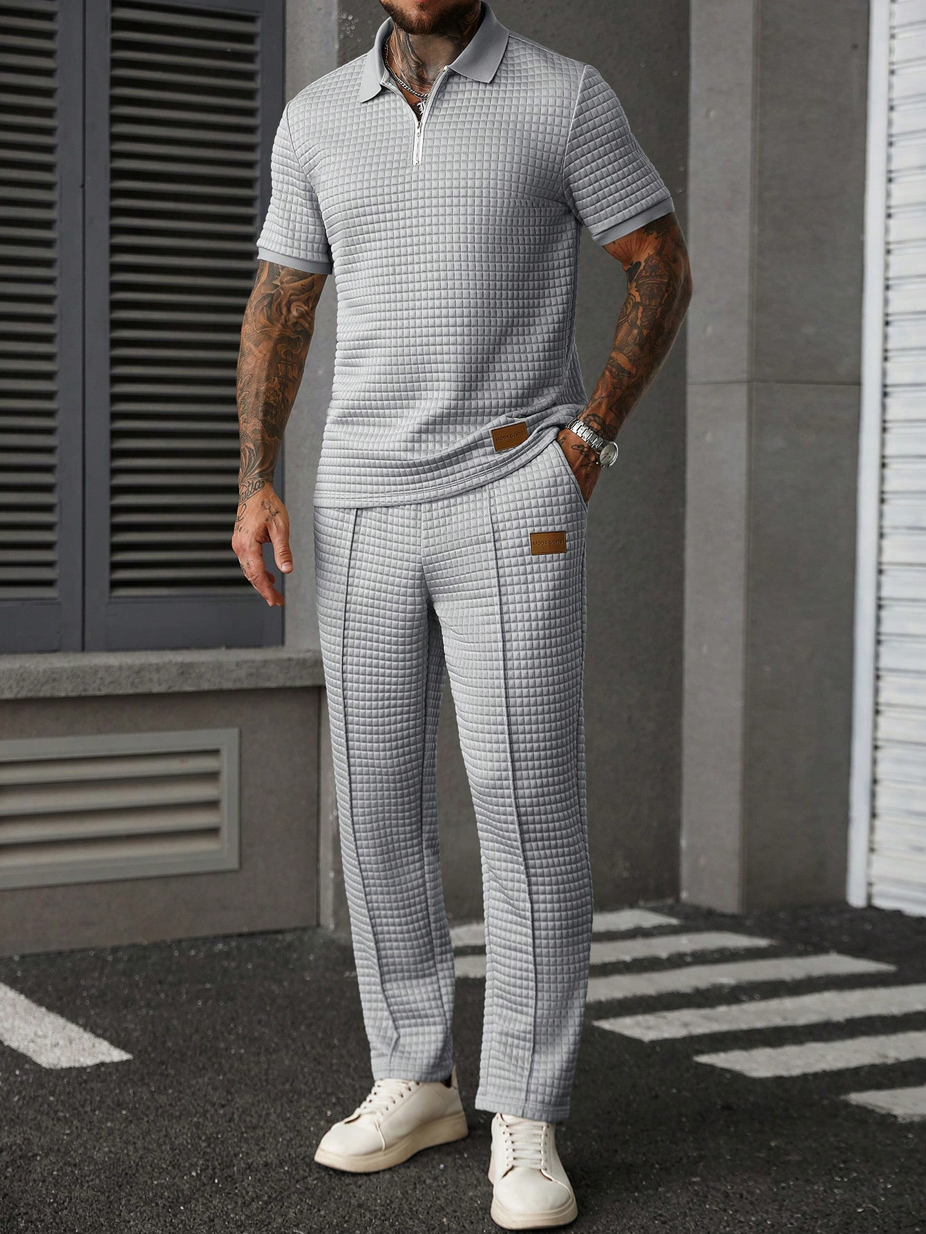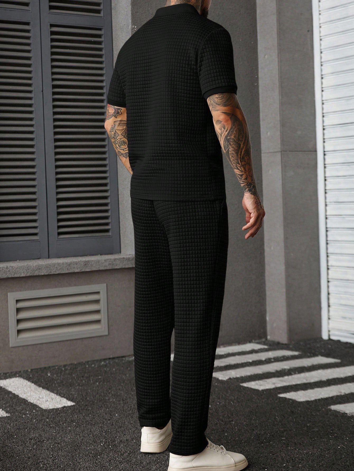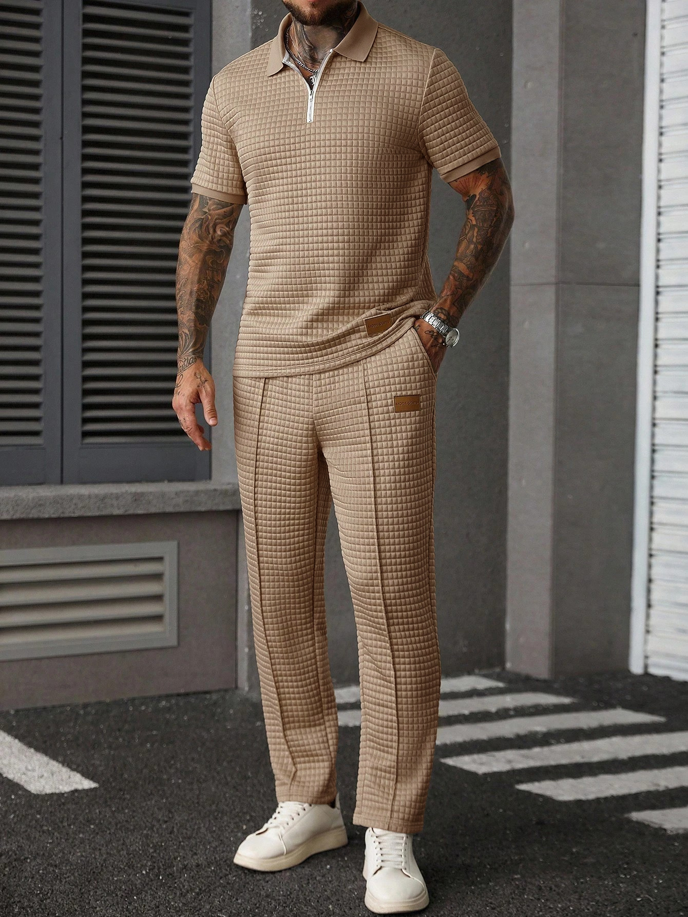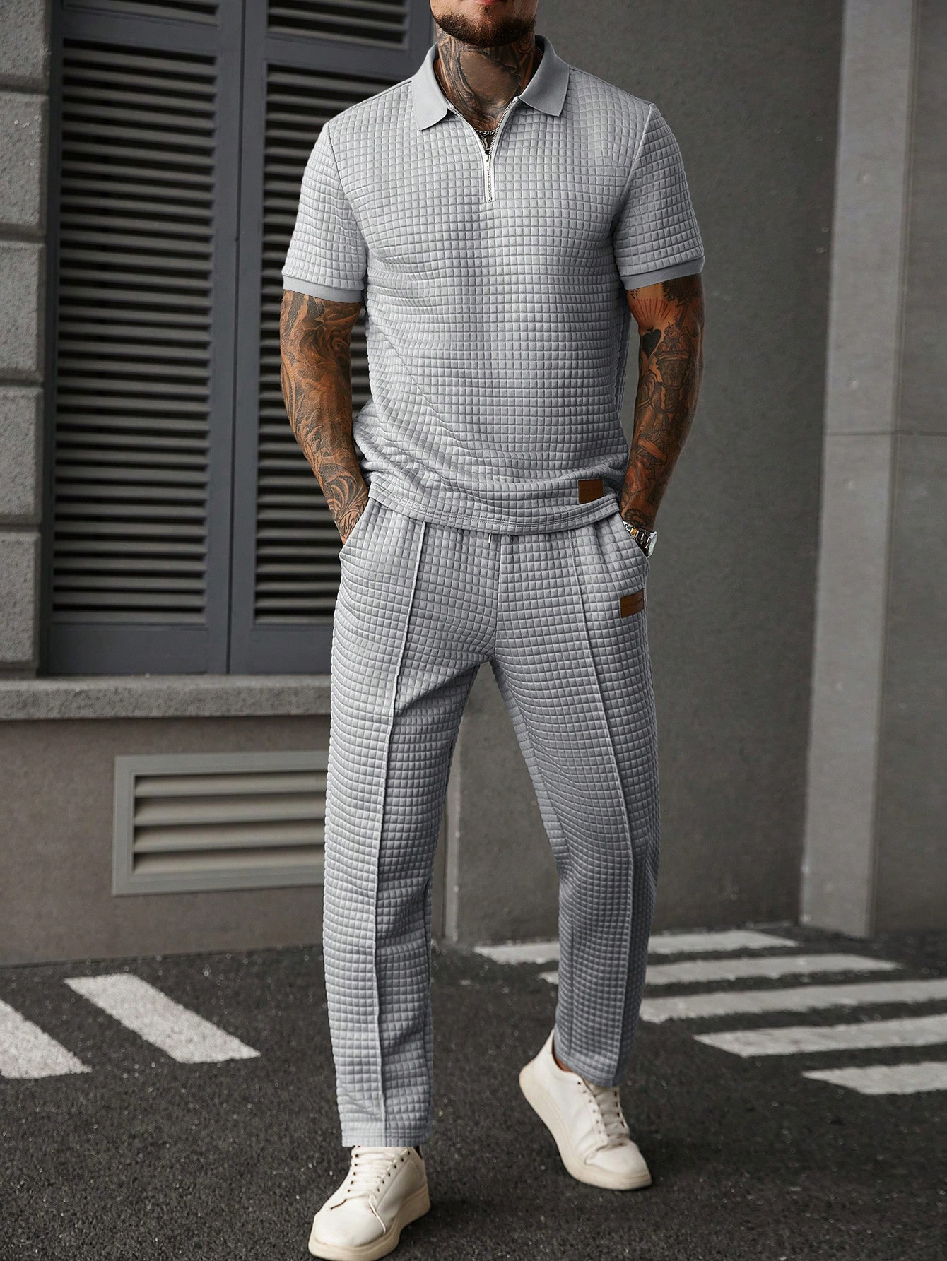 0 Review for Casual Zip-Up Polo Shirt Top And Pants Two-Piece Set