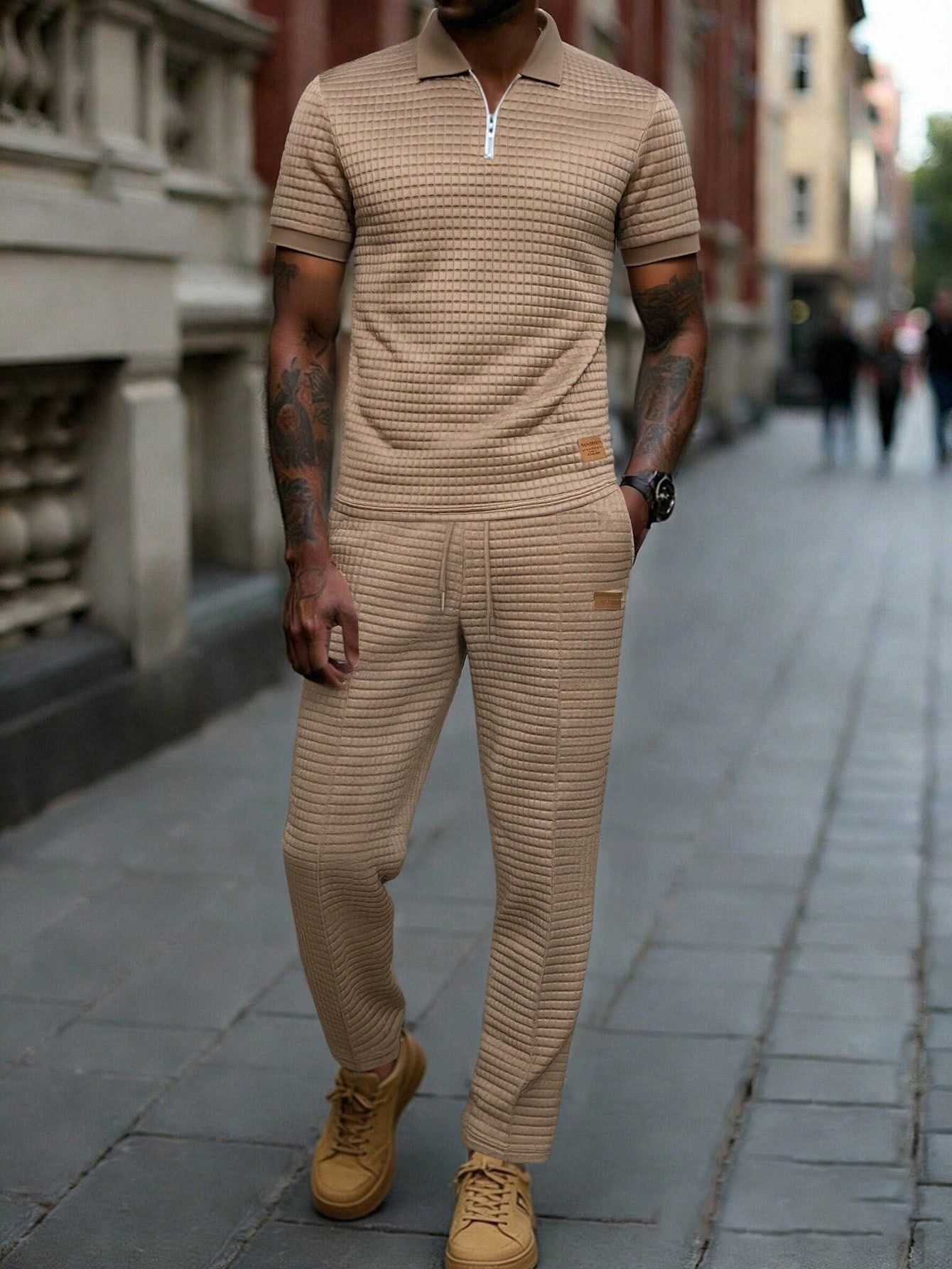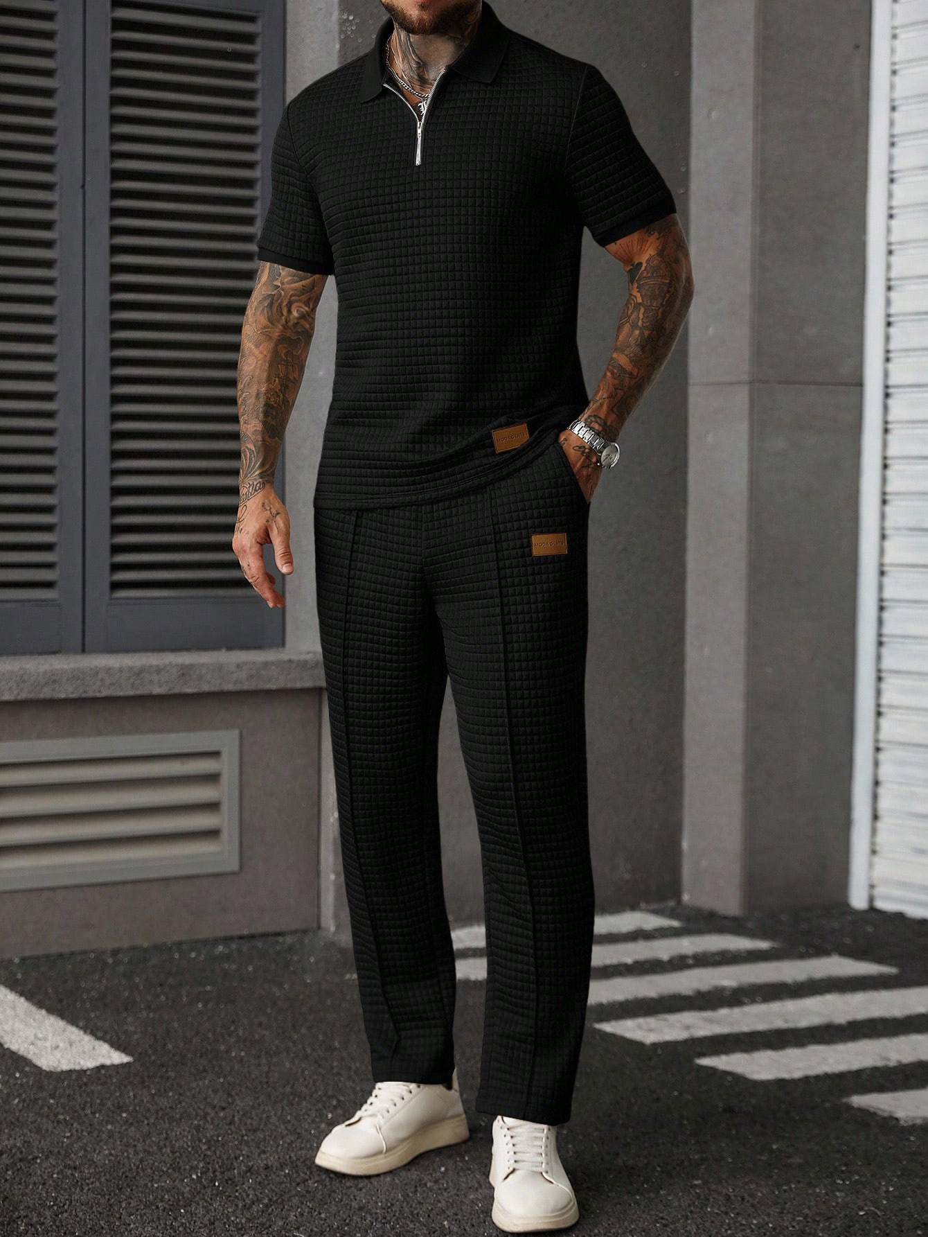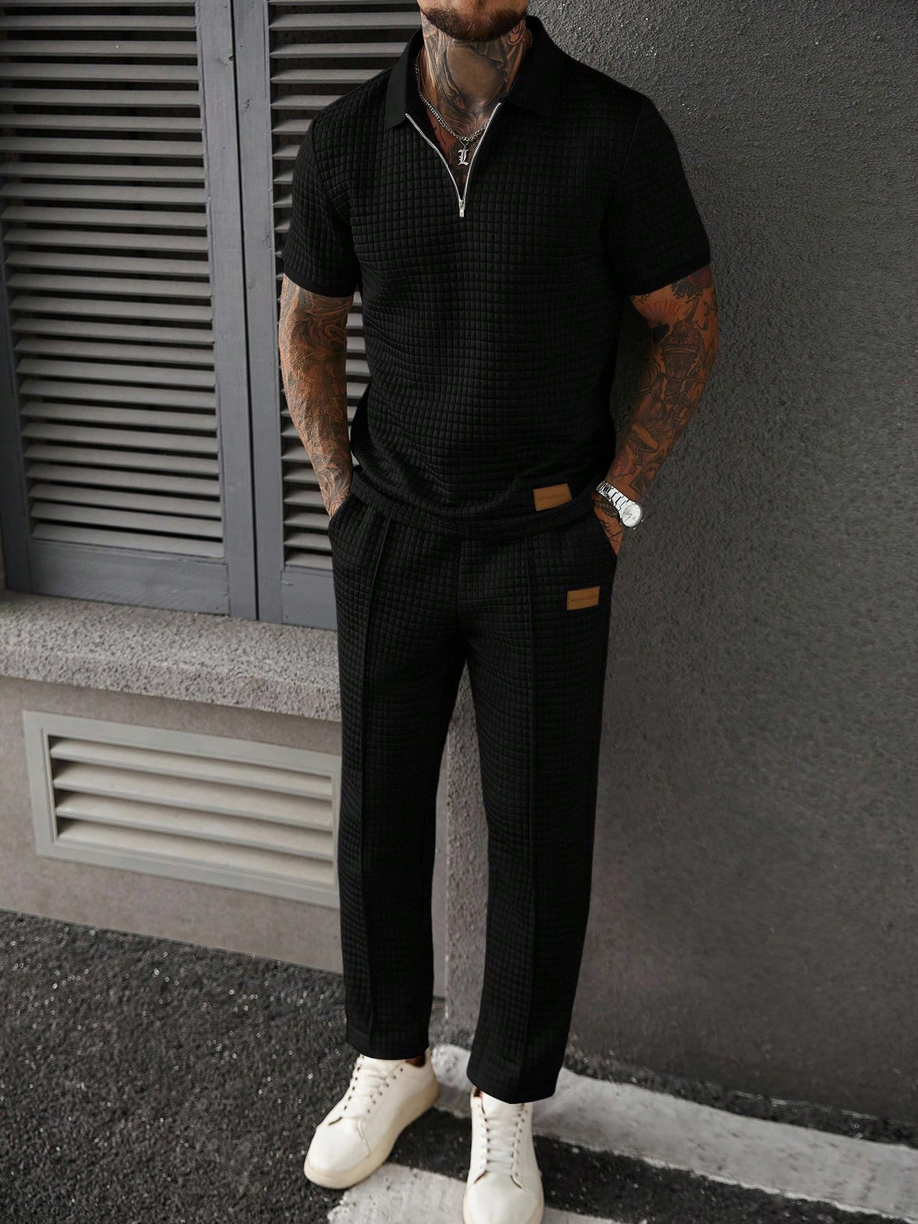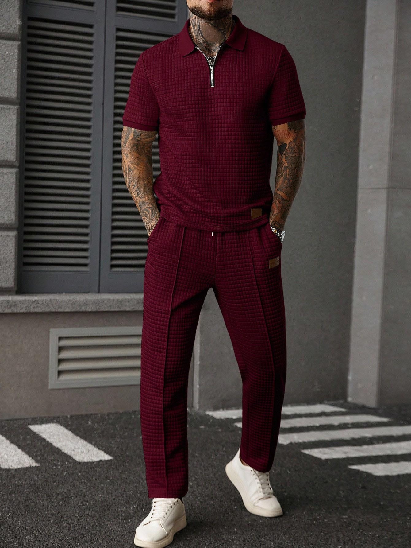 0 Review for Casual Zip-Up Polo Shirt Top And Pants Two-Piece Set