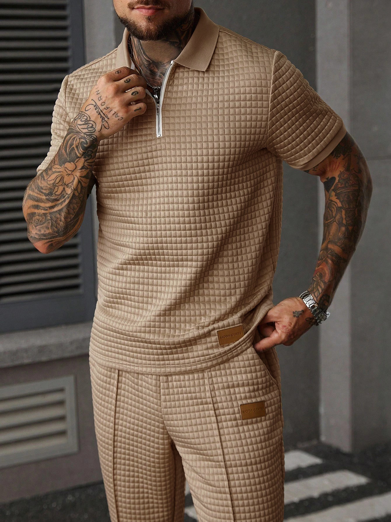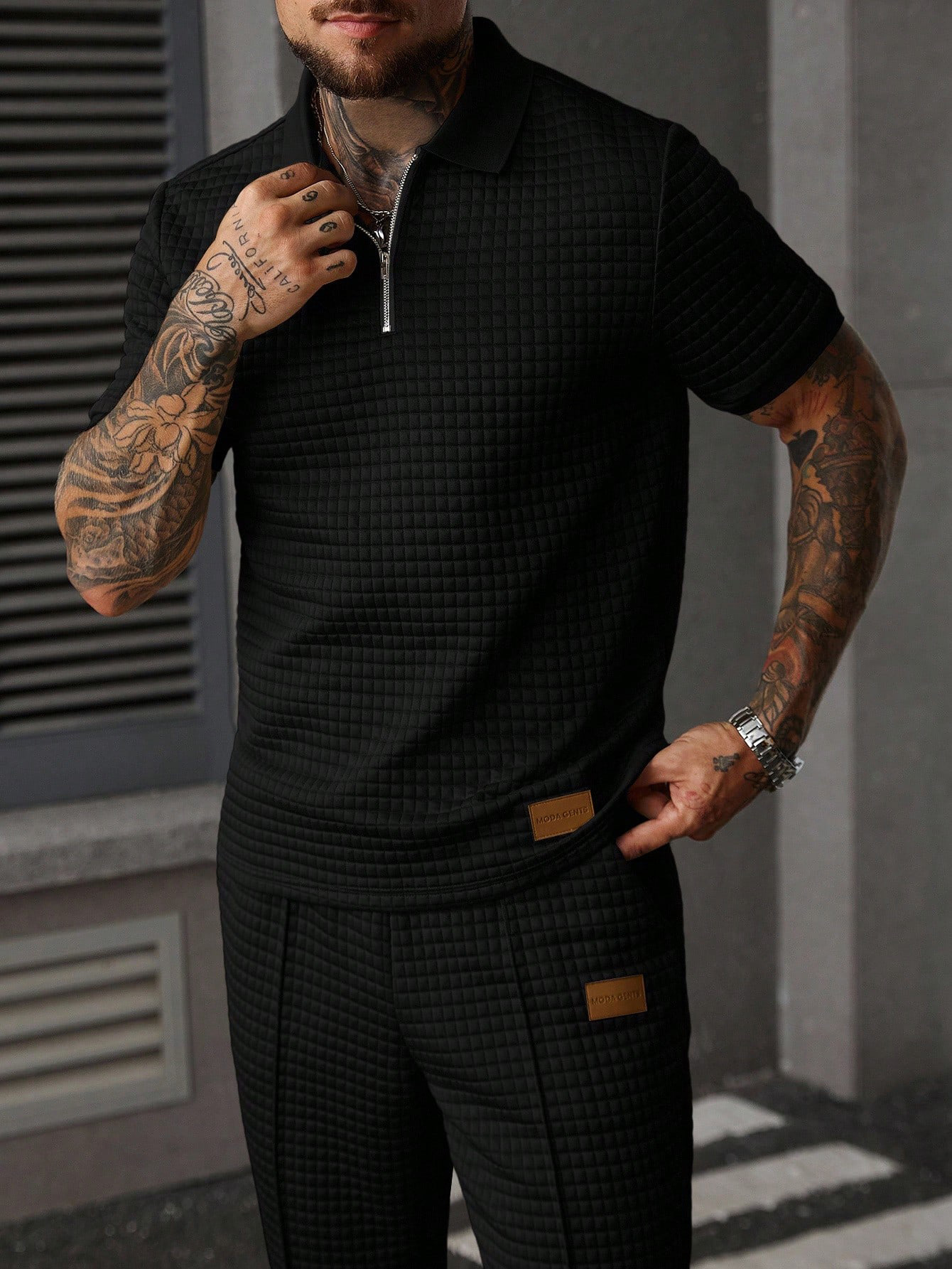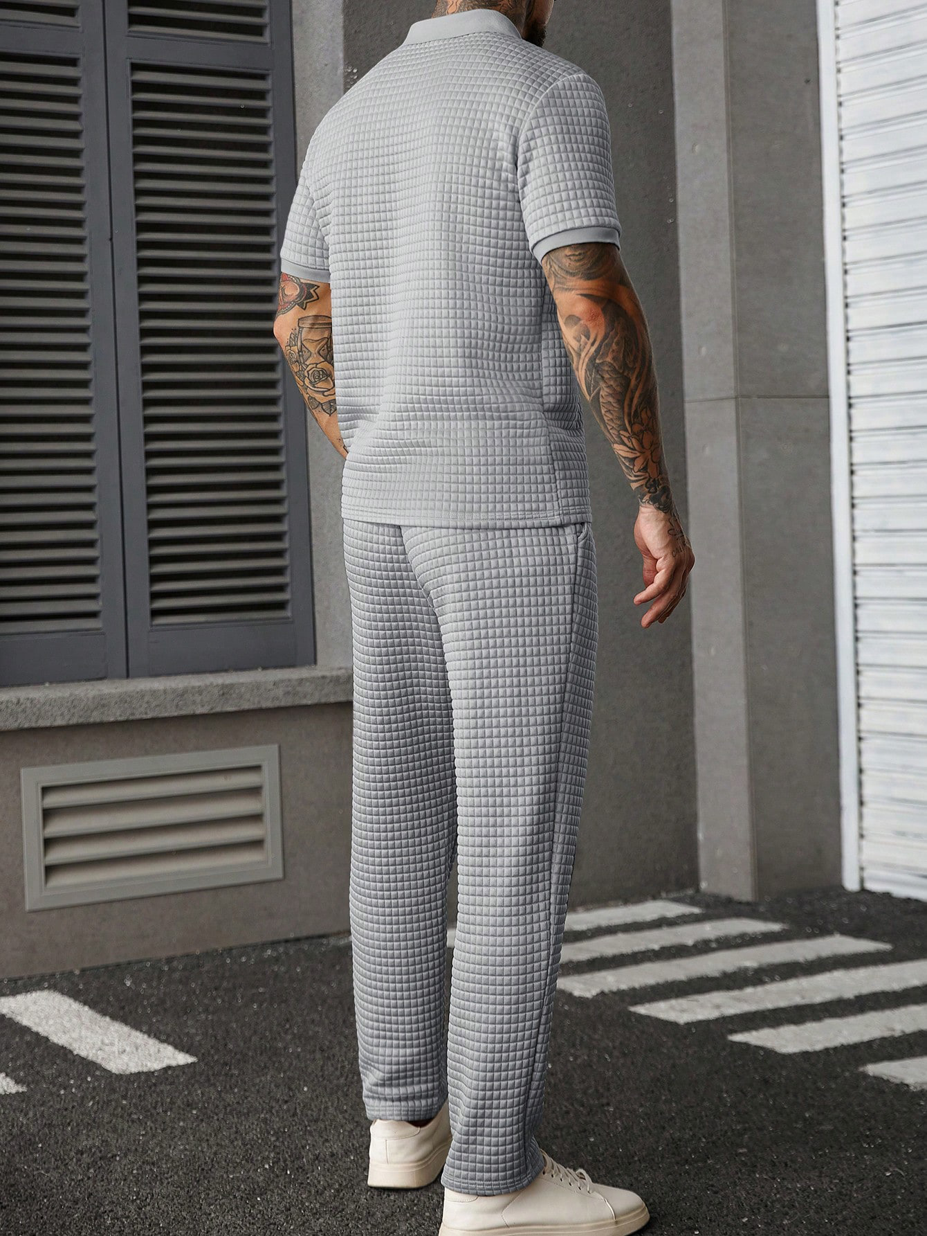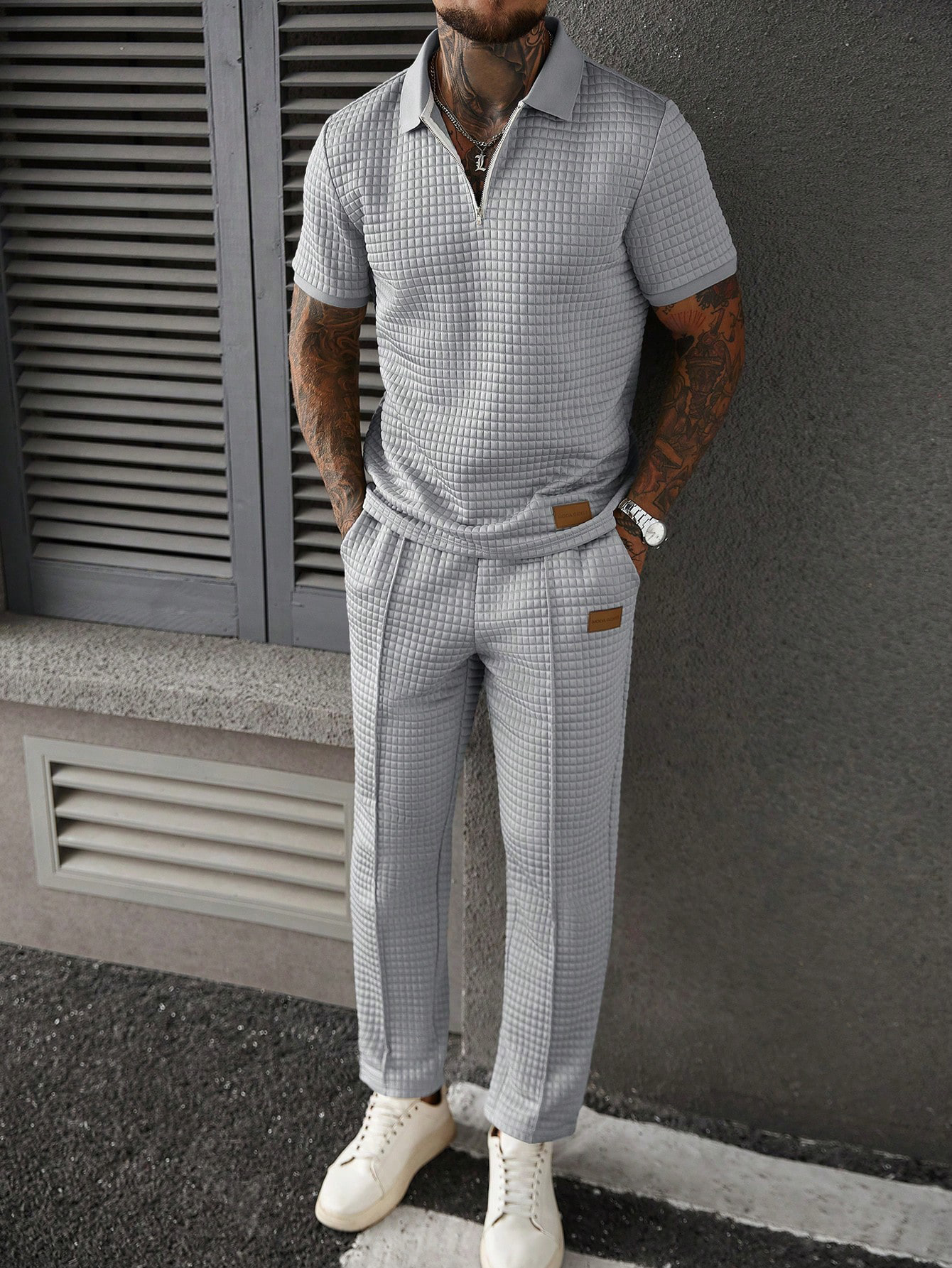 0 Review for Casual Zip-Up Polo Shirt Top And Pants Two-Piece Set