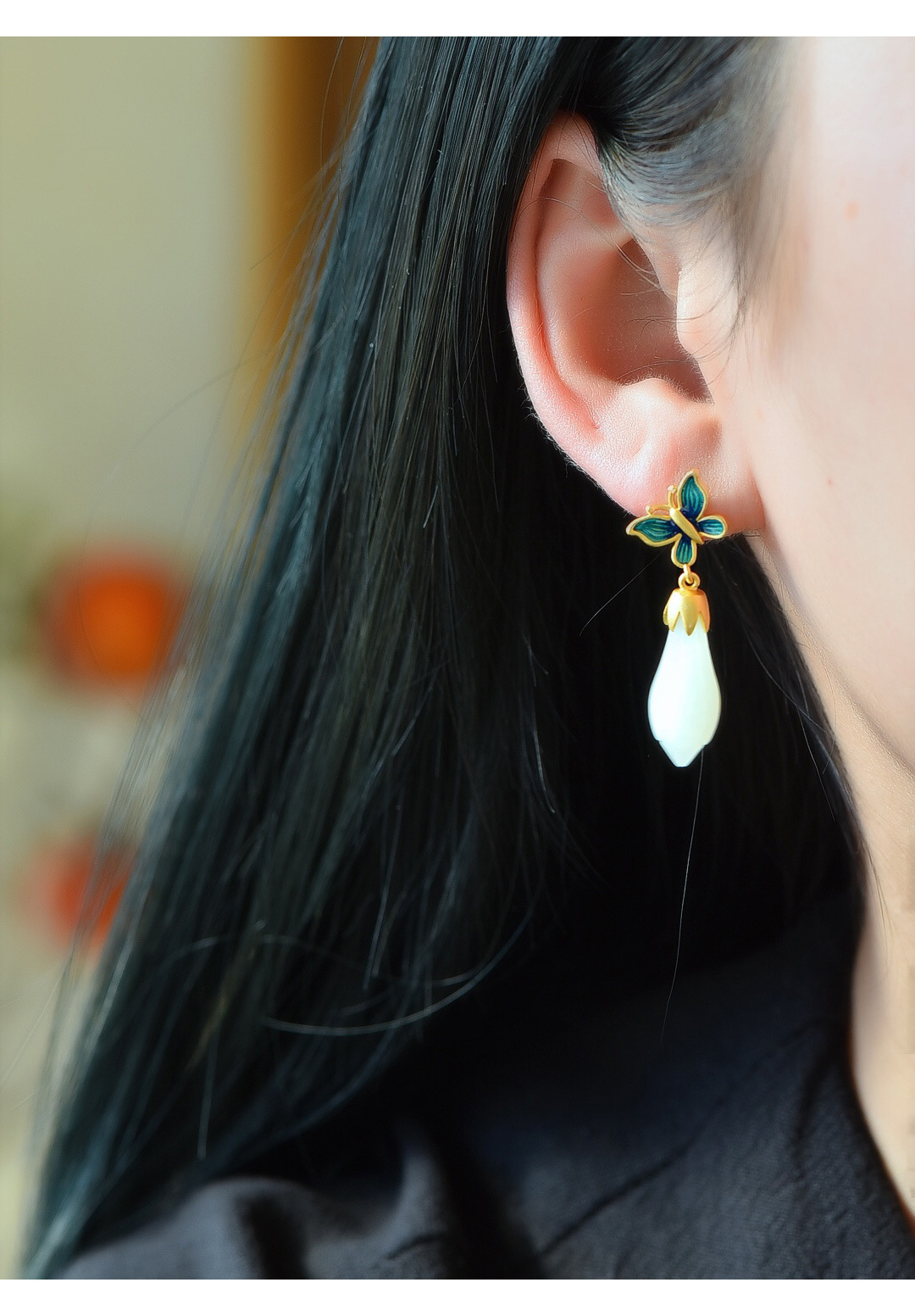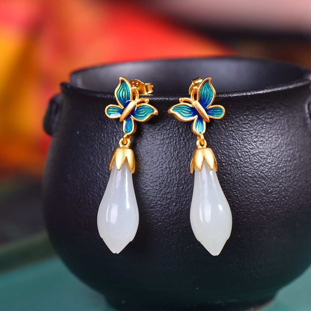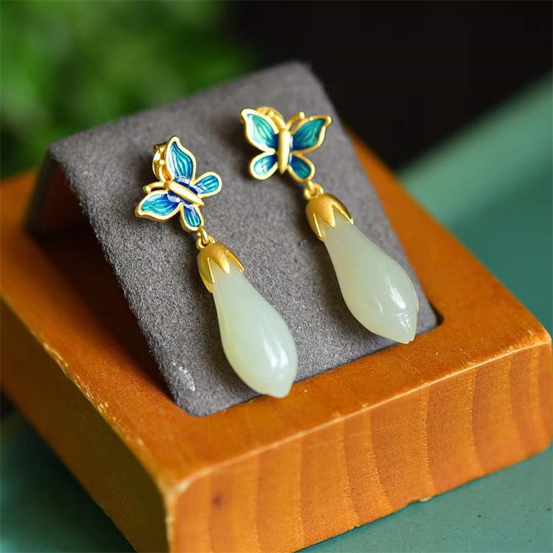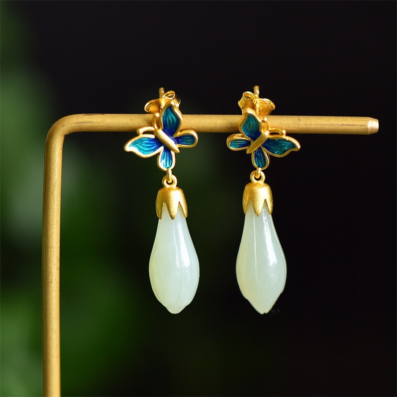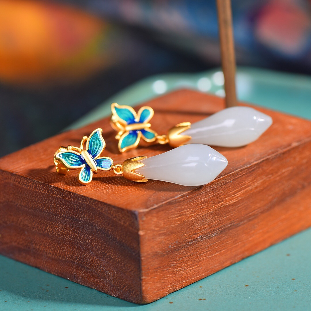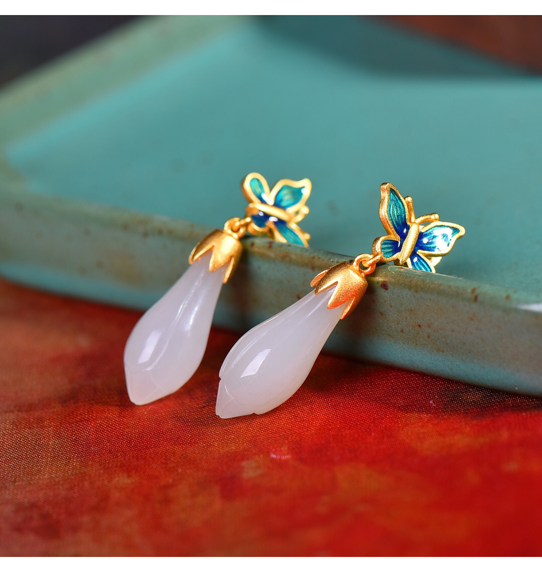 0 Review for Chinese-style Retro Enamel Butterfly Stud Earrings For Women