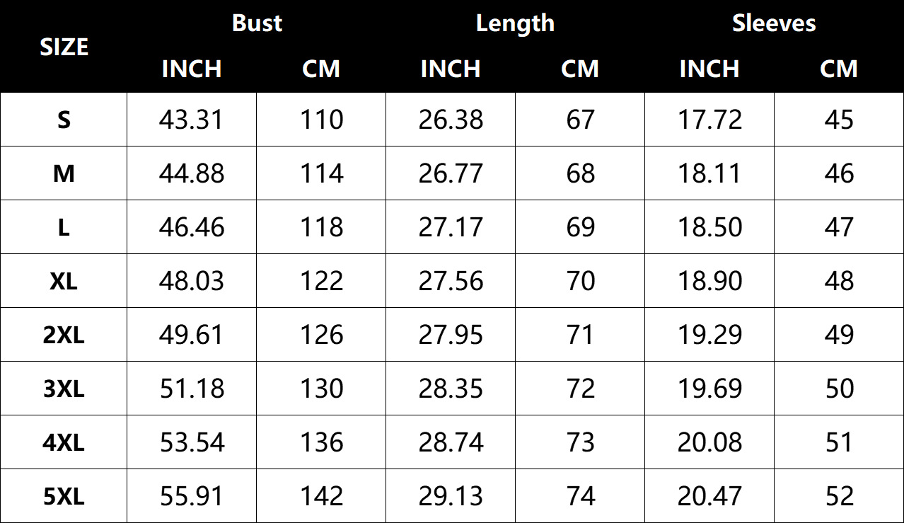 Size: S,M,L,XL,2XL,3XL,4XL,5XL