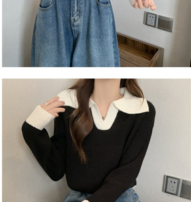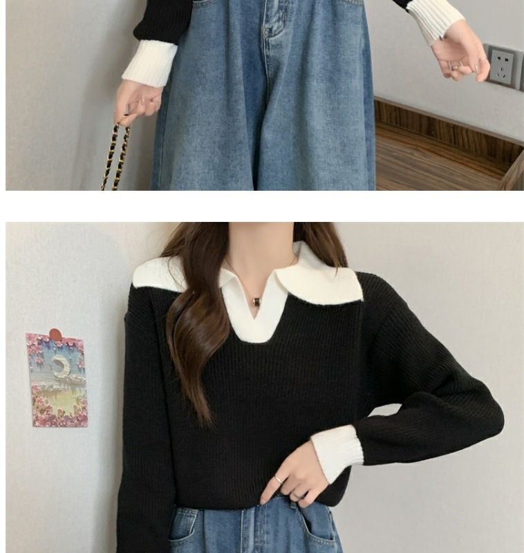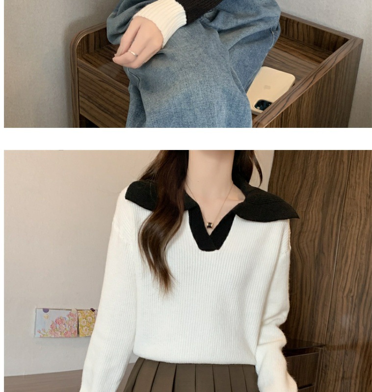 0 Review for Contrast Color Polo Collar Soft Glutinous Sweater Women's Autumn And Winter