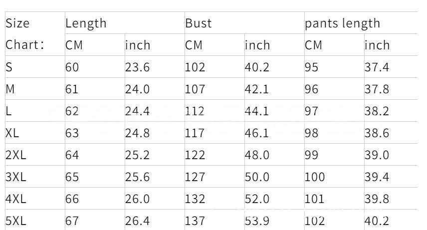 Sizes: S, M, L, XL, 2XL, 3XL, 4XL, 5XL