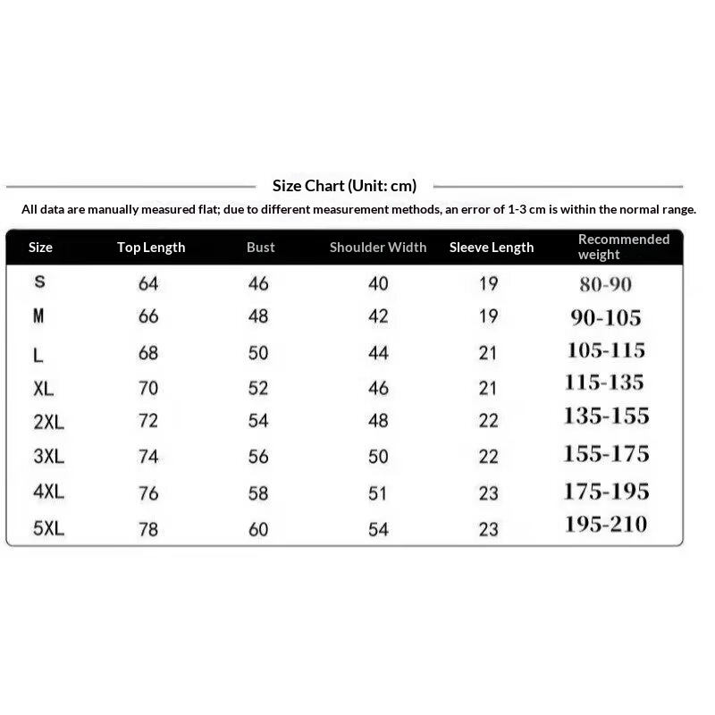 Sizes: S, M, L, XL, 2XL, 3XL, 4XL, 5XL