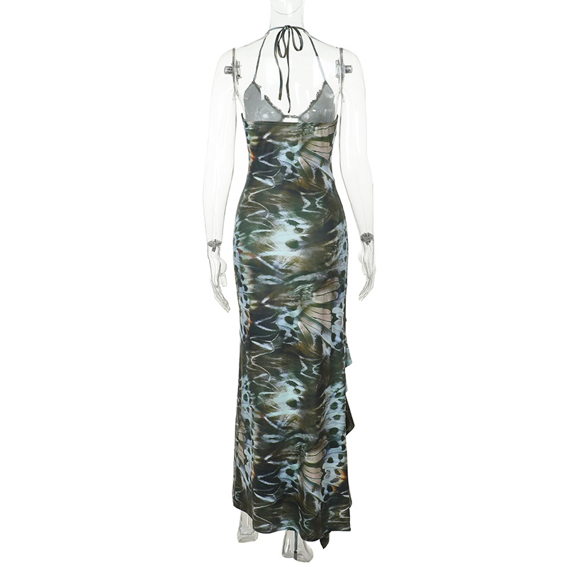 0 Review for Deep-V Chest-enhancing Cutout-strapped High-slit Dress For Women