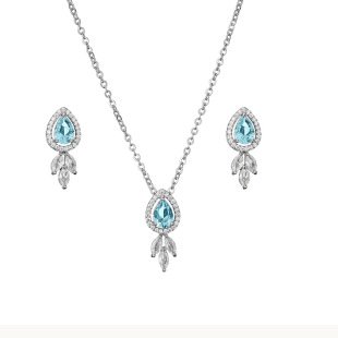 Color: white gold plated (two-piece set), colored gem blue white gold plated (two-piece set)