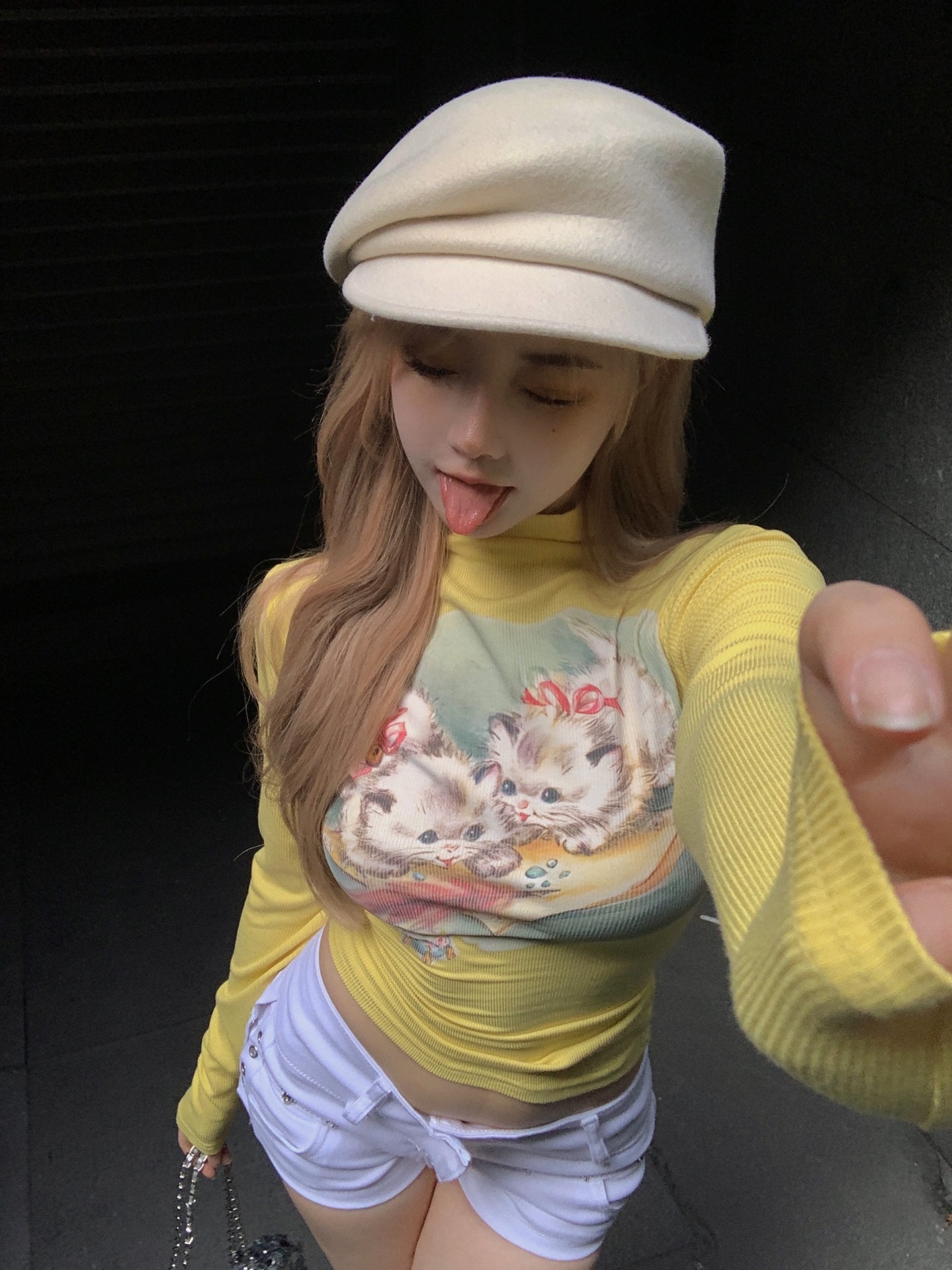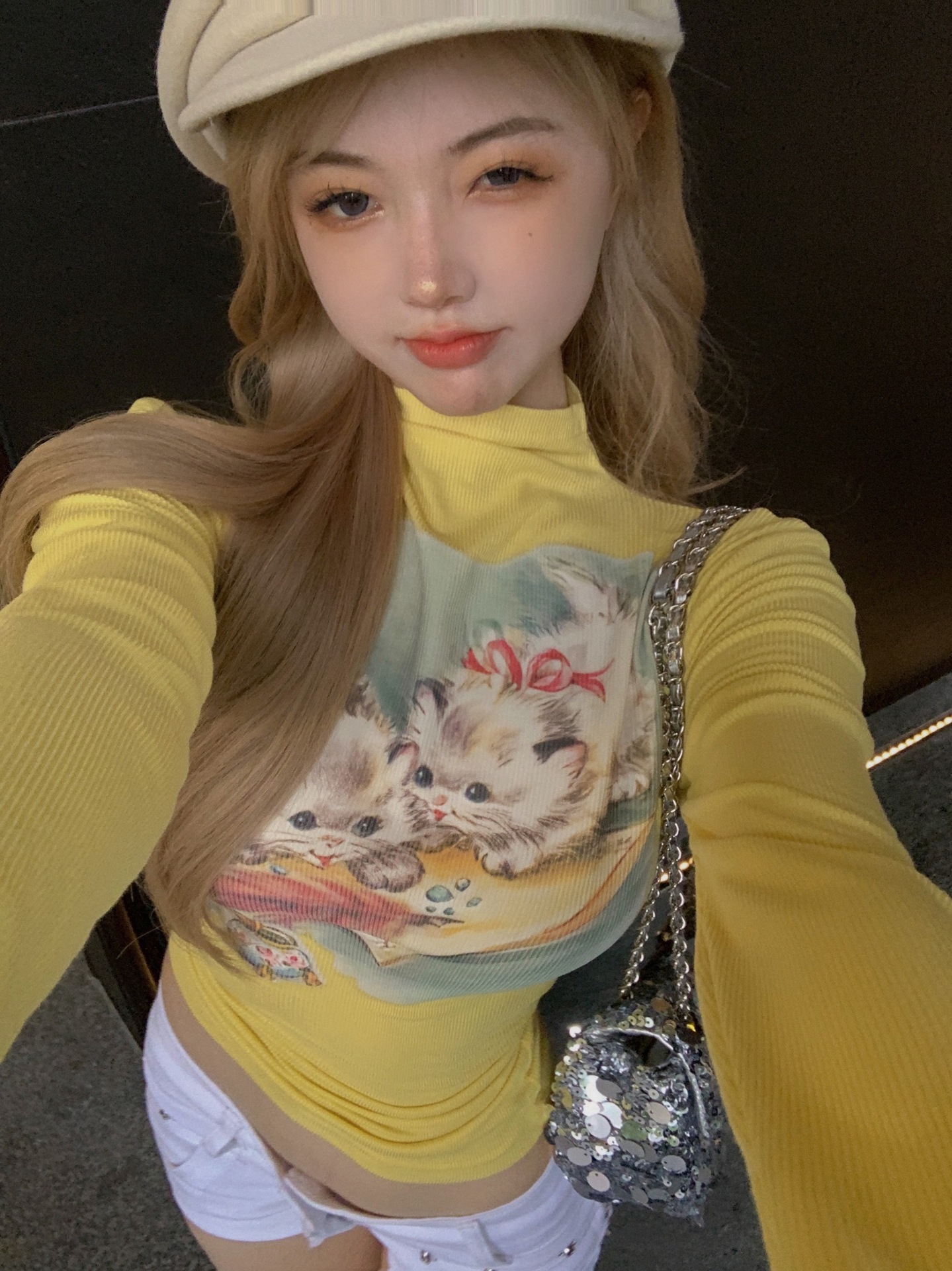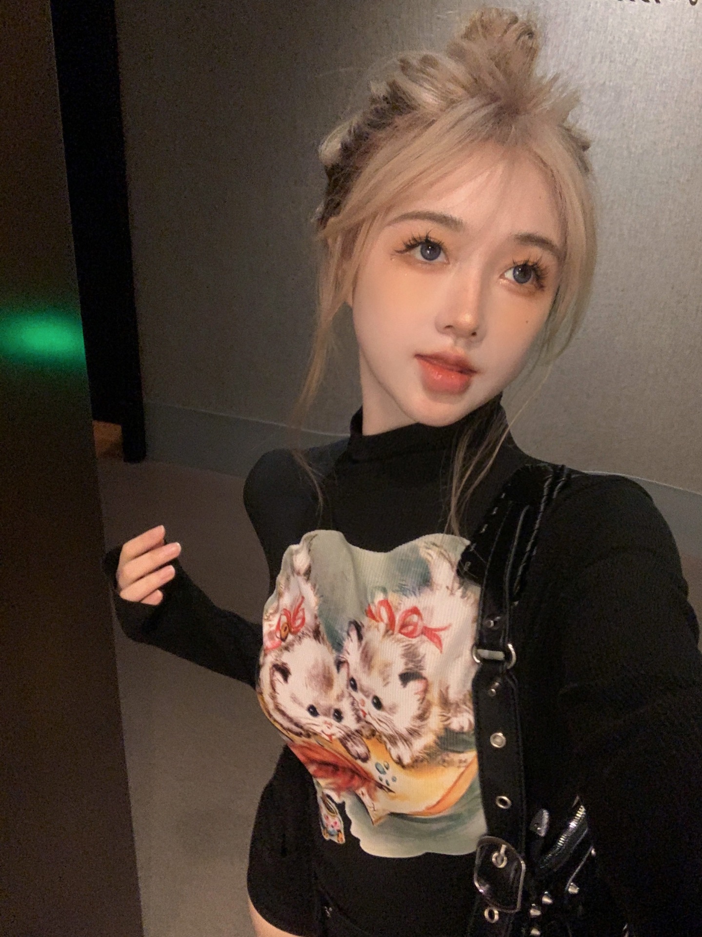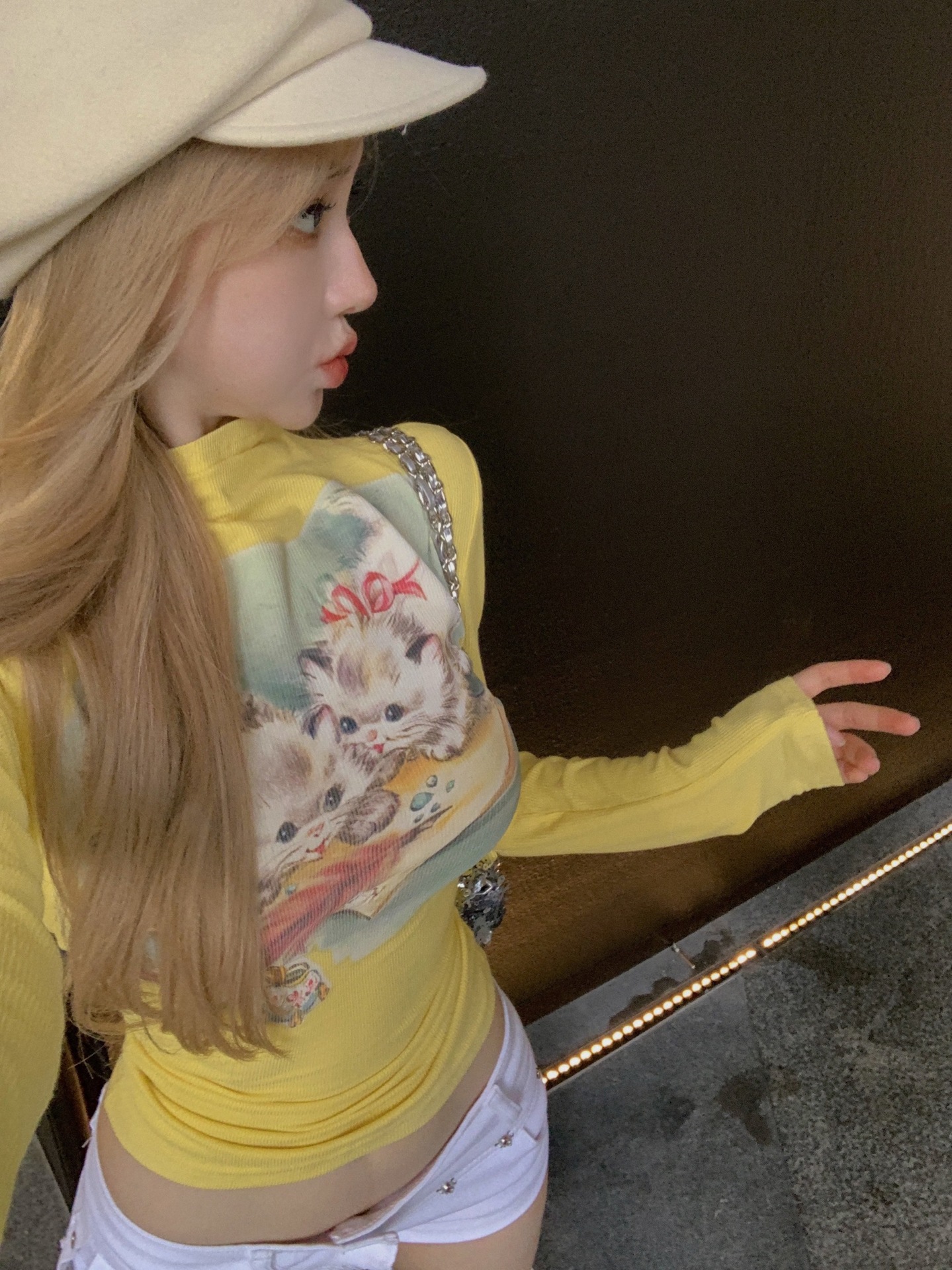 0 Review for Dopamine Cat Printing Long Sleeve T-shirt Early Autumn