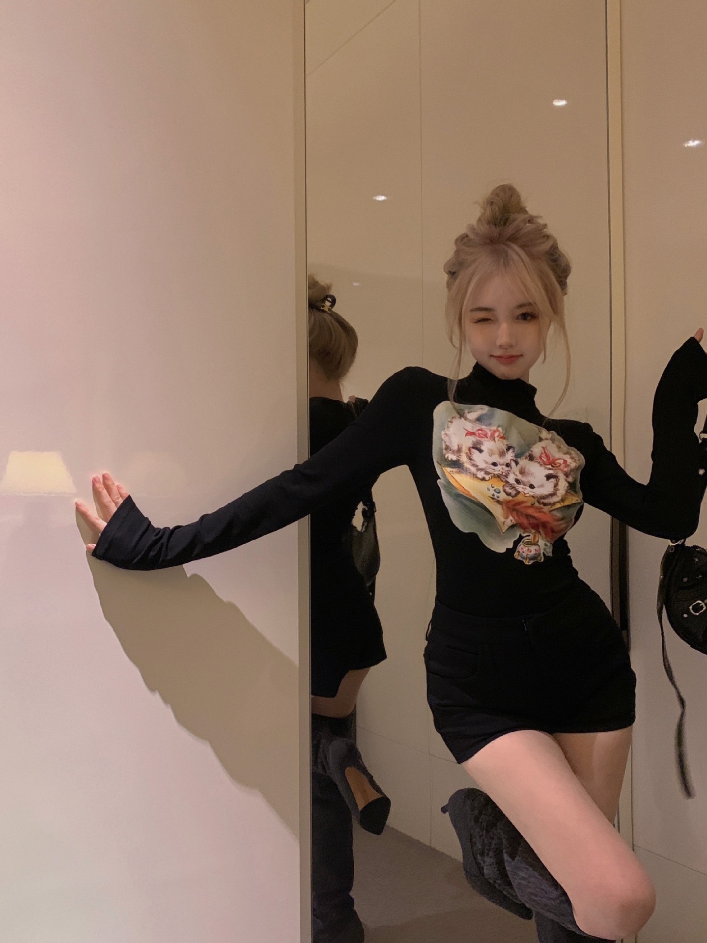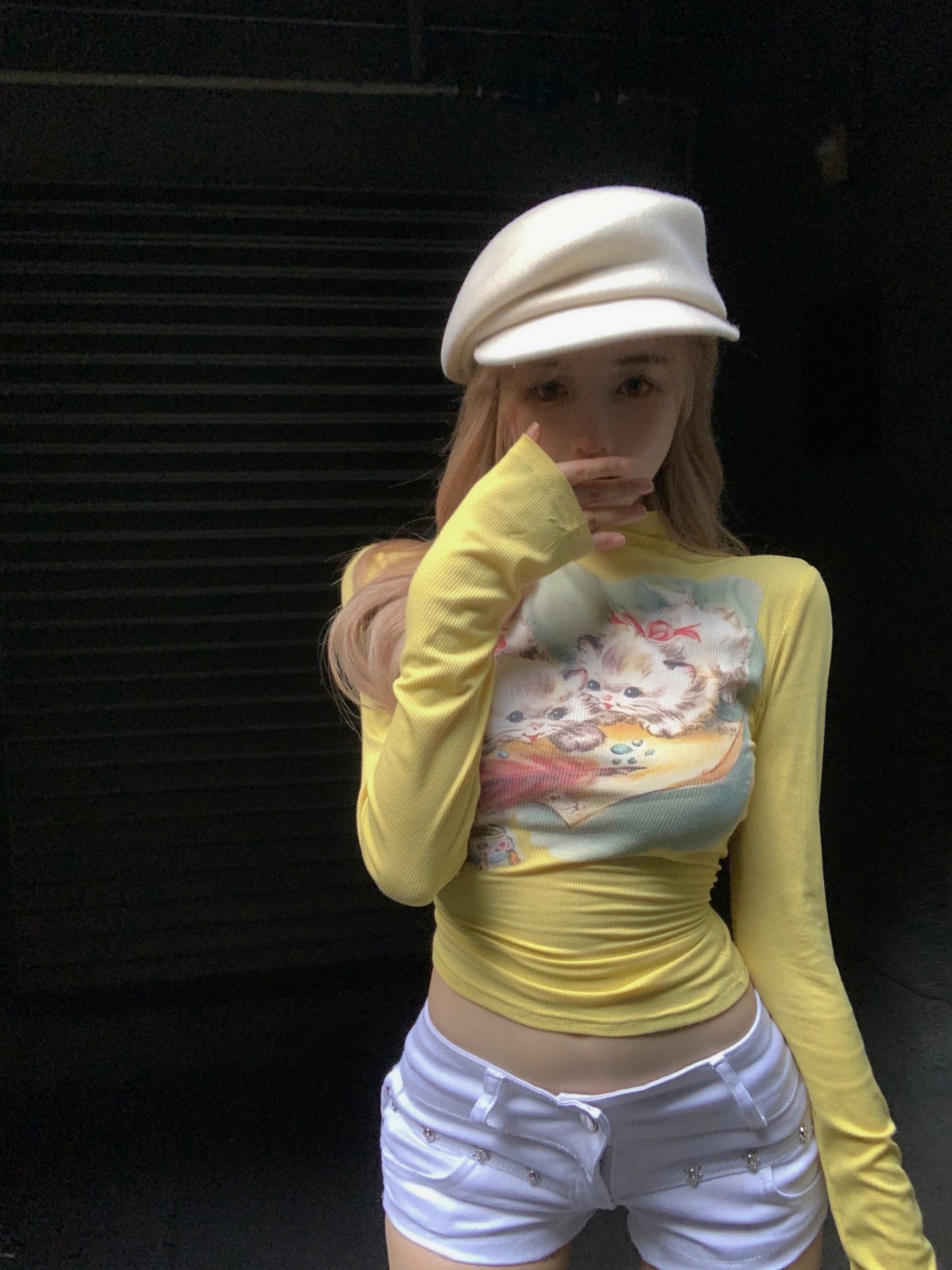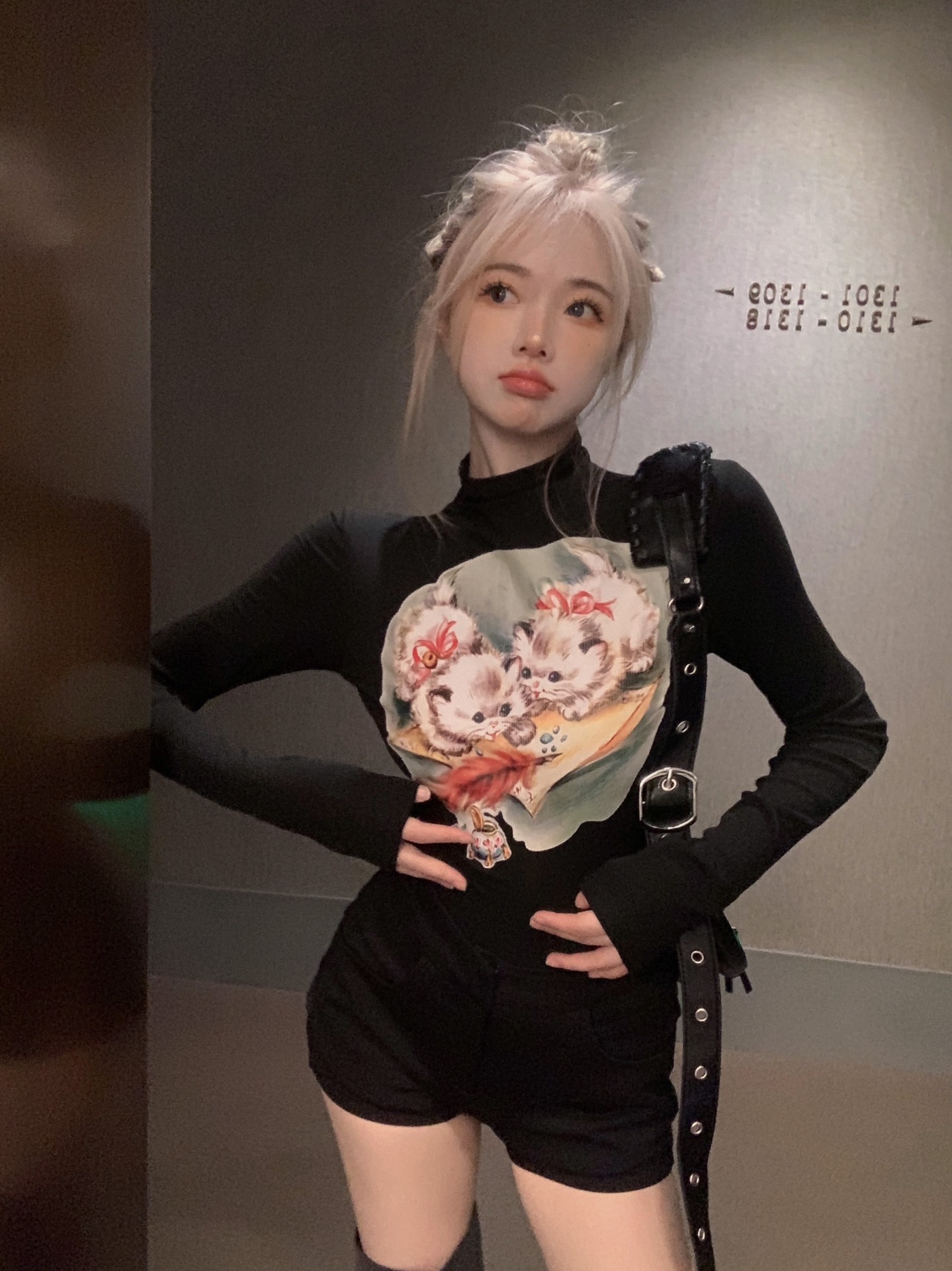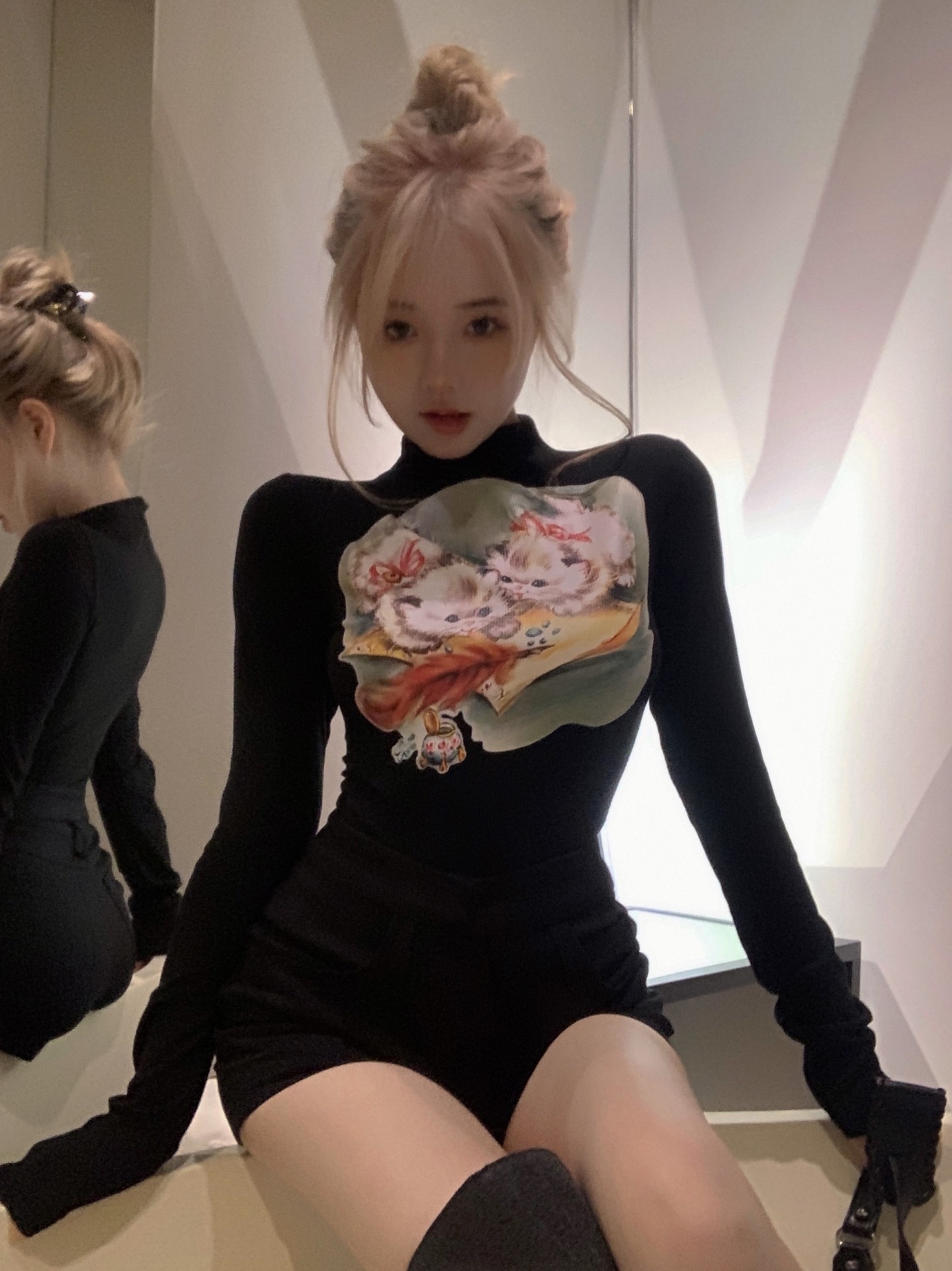 0 Review for Dopamine Cat Printing Long Sleeve T-shirt Early Autumn