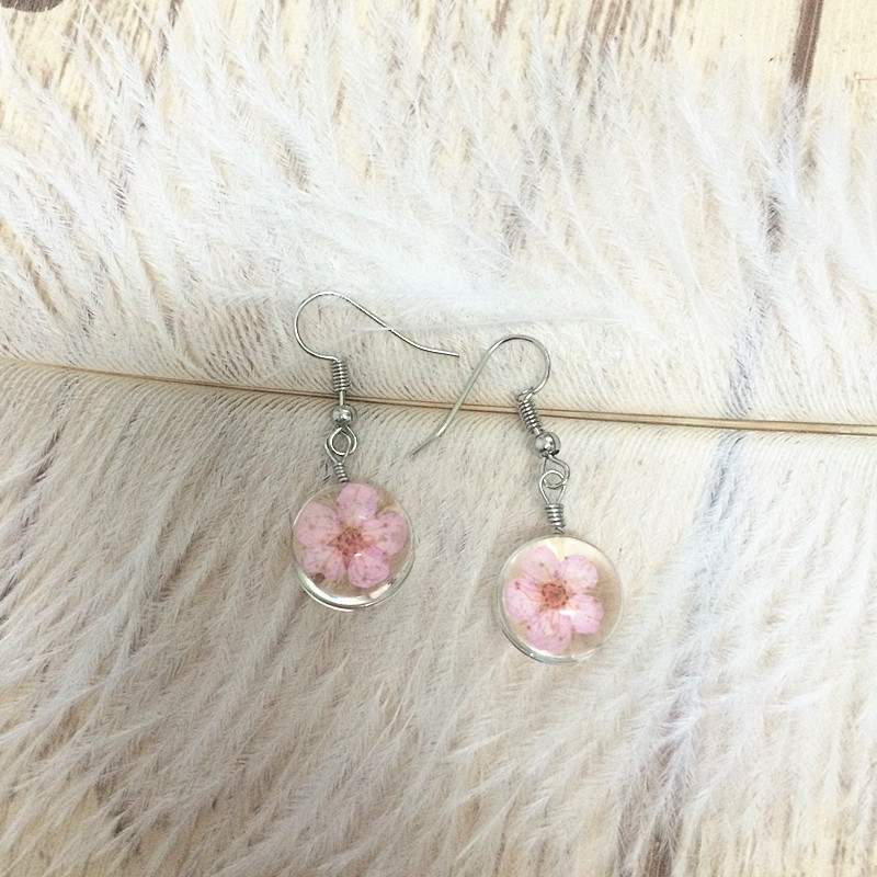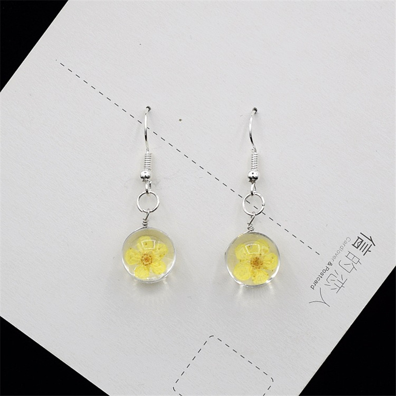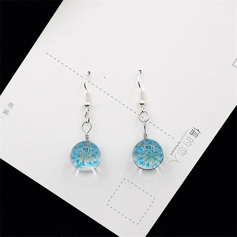 0 Review for Dried Flower Glass Ball Crystal Earrings Creative Sweet