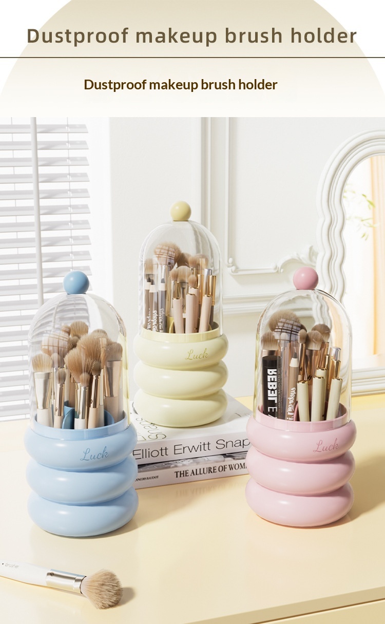 0 Review for Dustproof Rotating Makeup Brush Holder With Lid