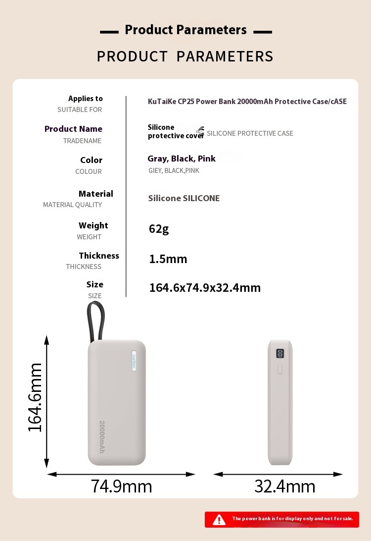 Electric Energy Block 20000 MA Silicone Protective Cover Power Bank