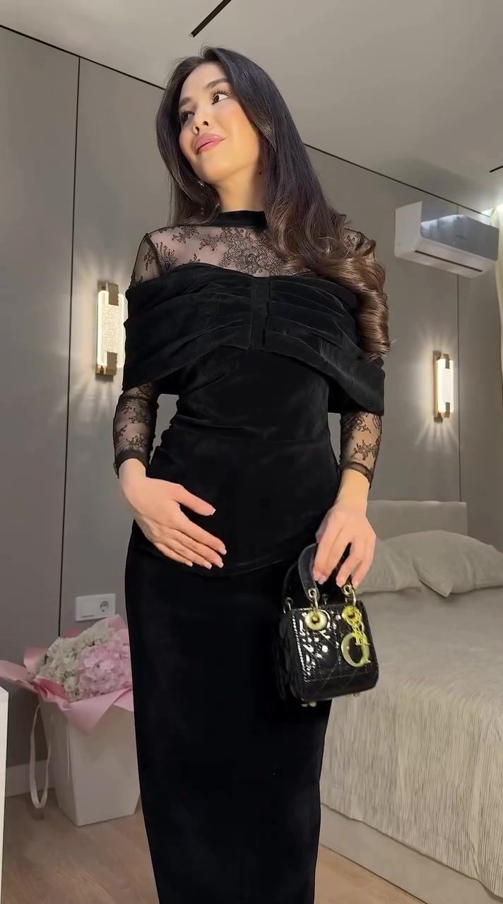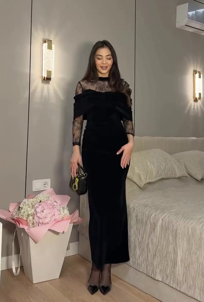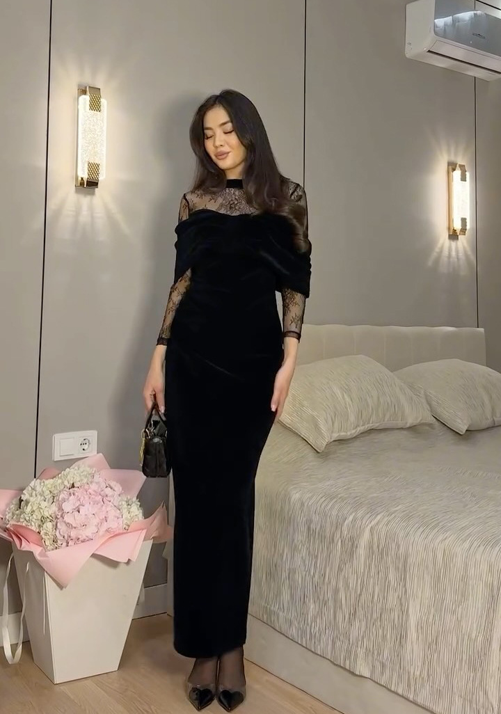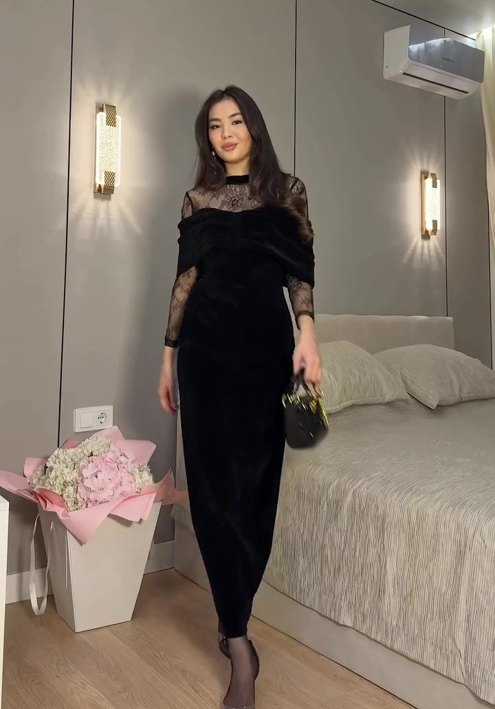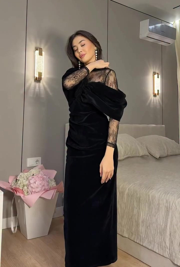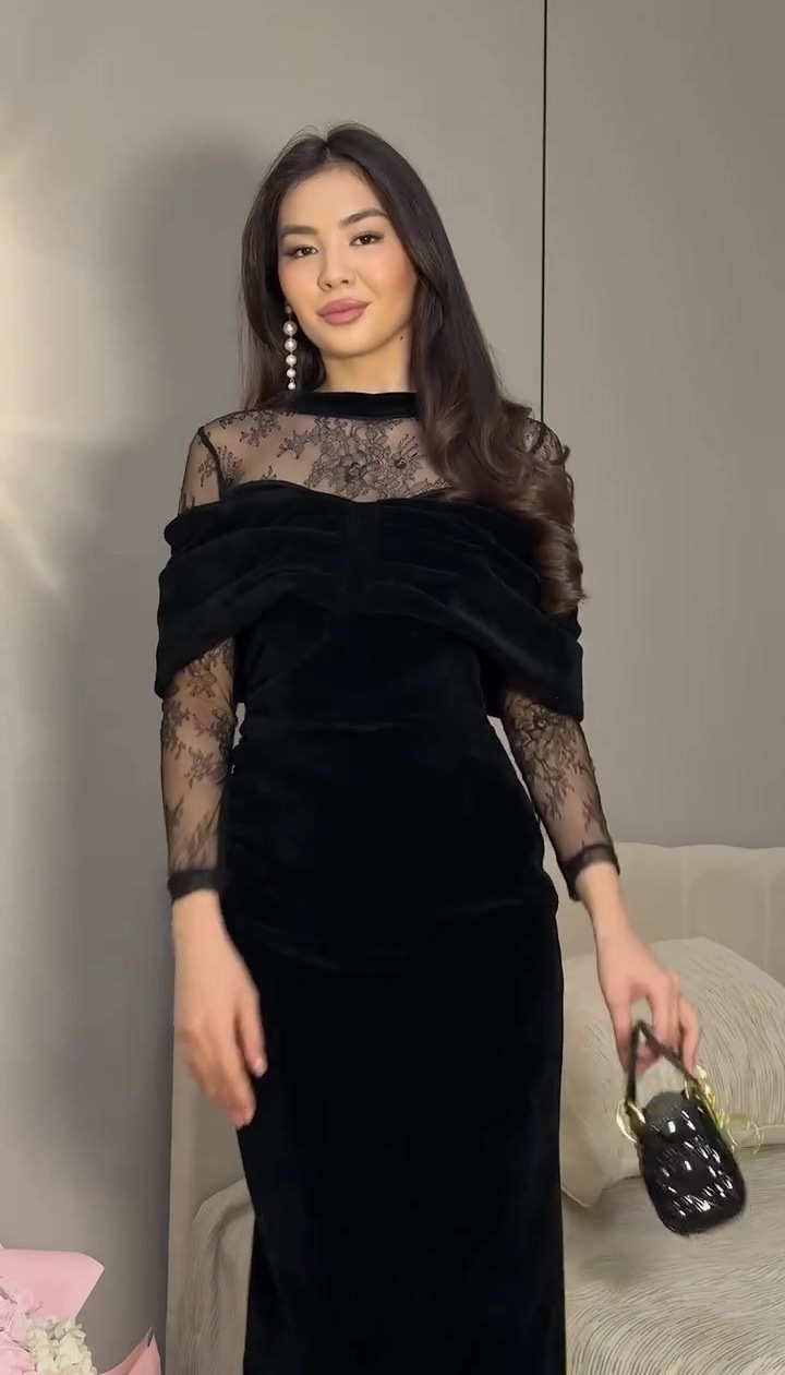 0 Review for Elegant Long-Sleeved Lace And Velvet Patchwork Dress