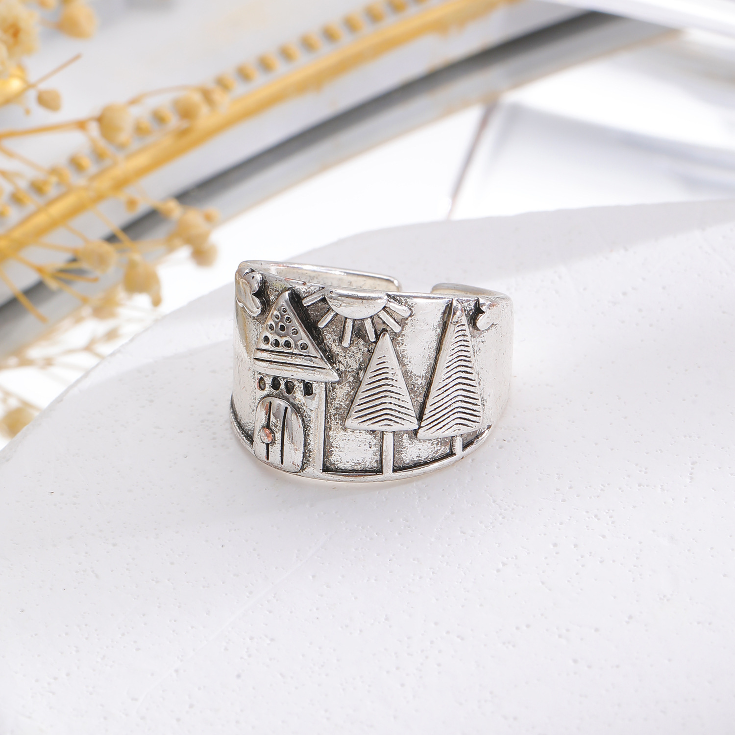 0 Review for Ethnic-style Vintage Creative Wide-band Distressed Open Womens Ring