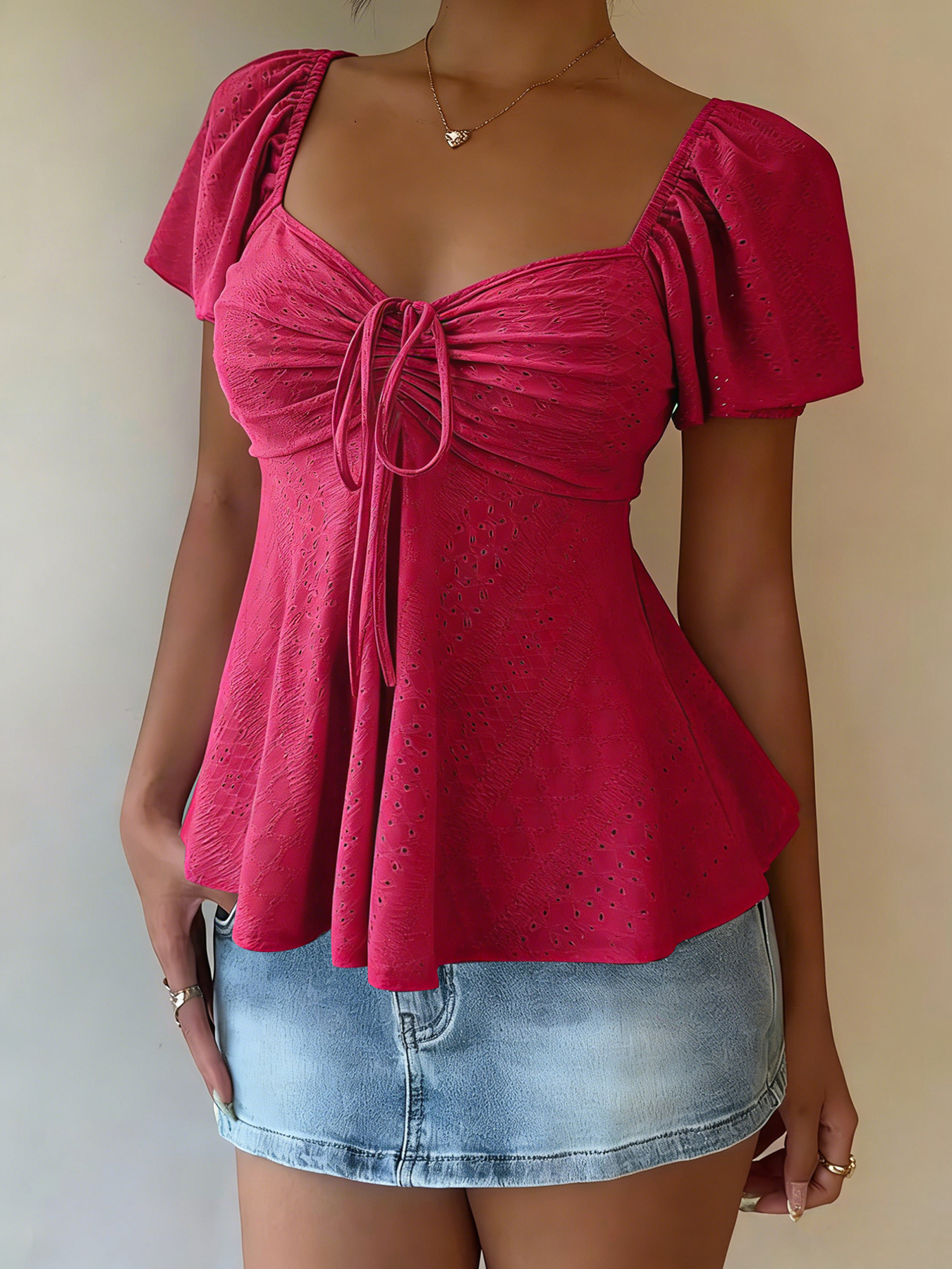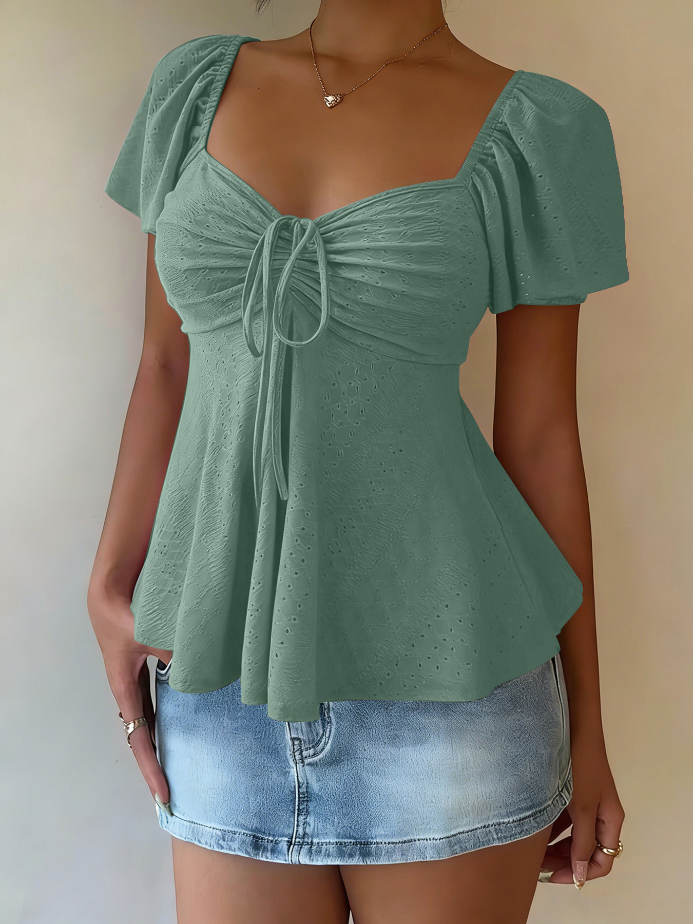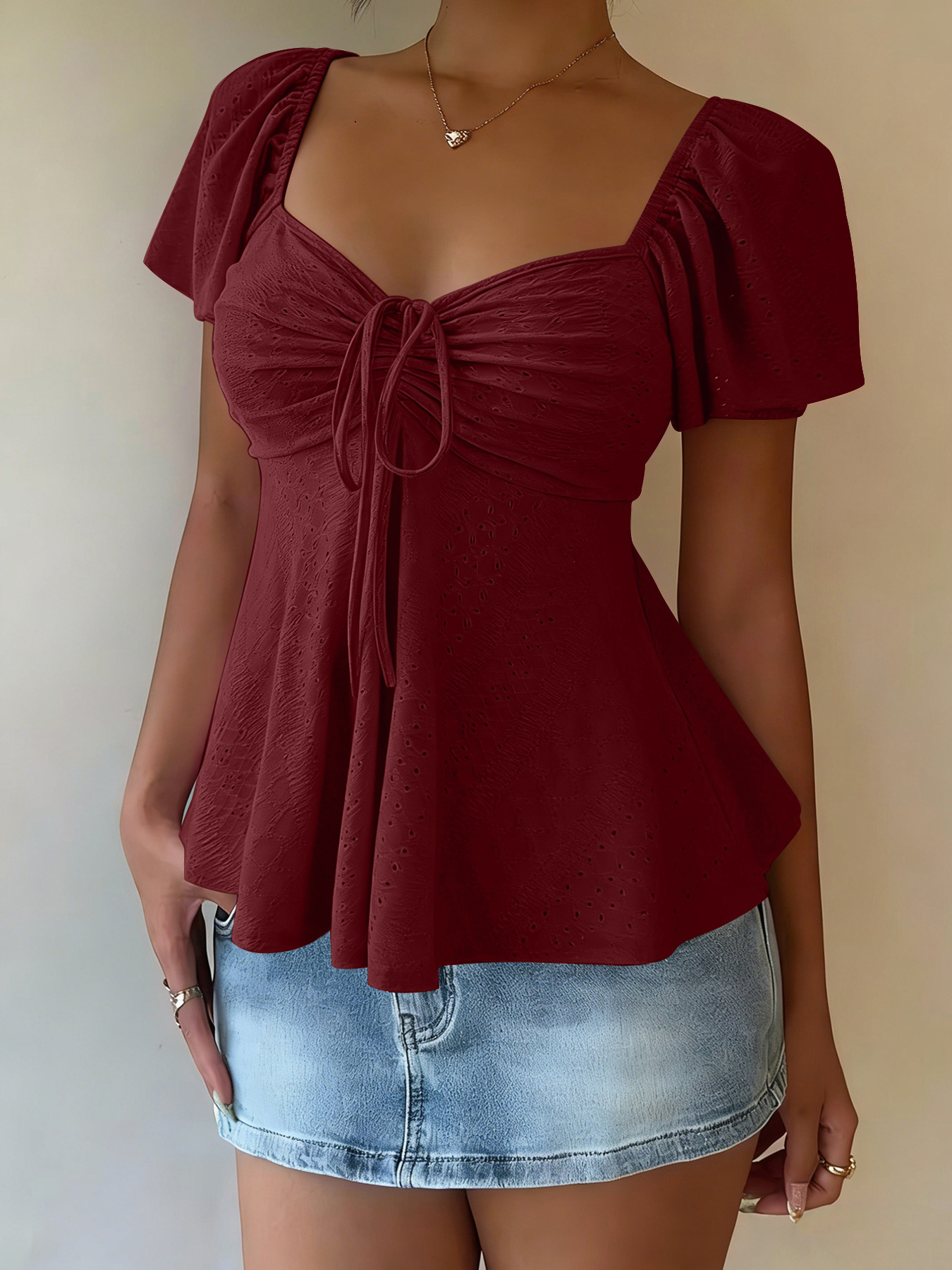 0 Review for Euramerican V-neck Drawstring Tie-up Top