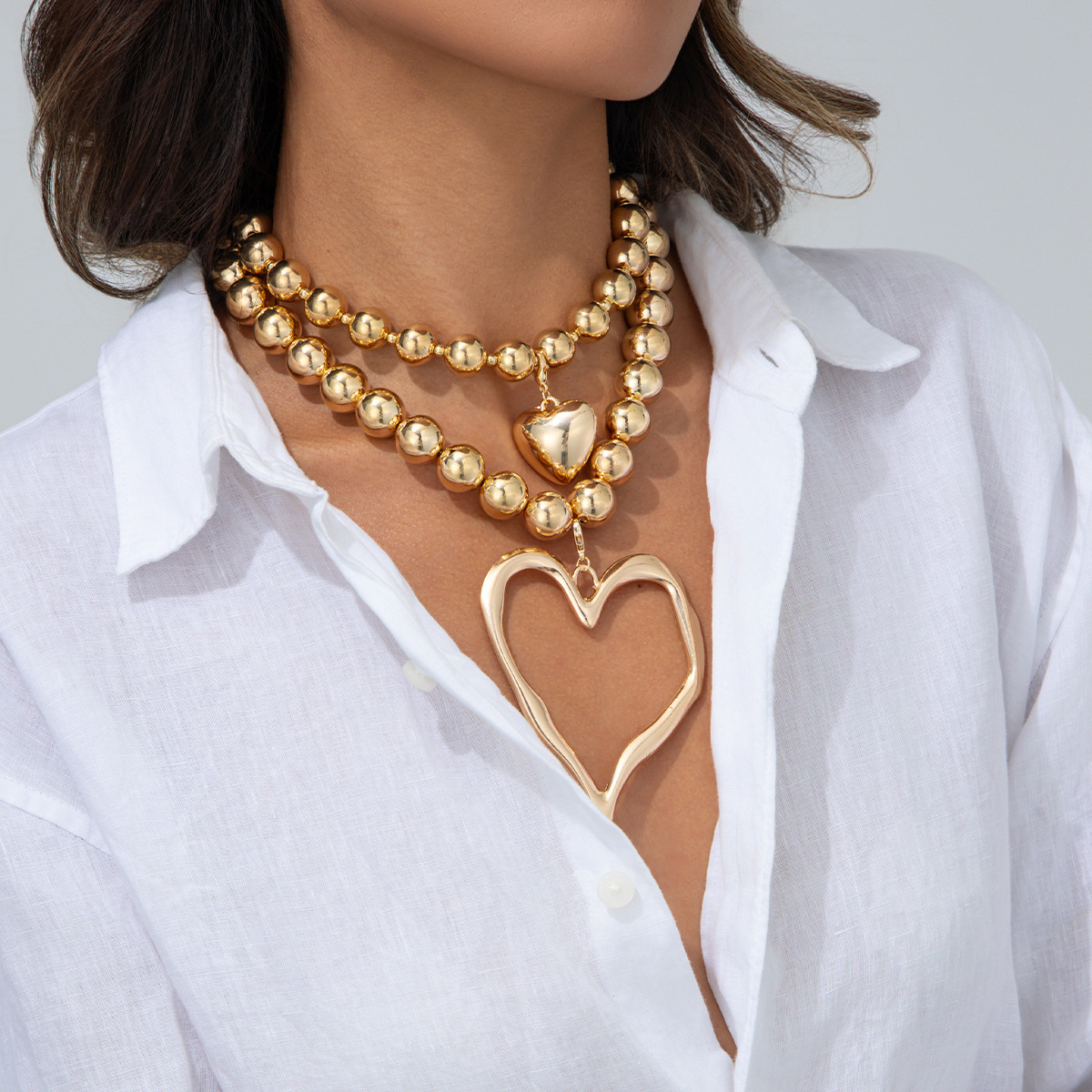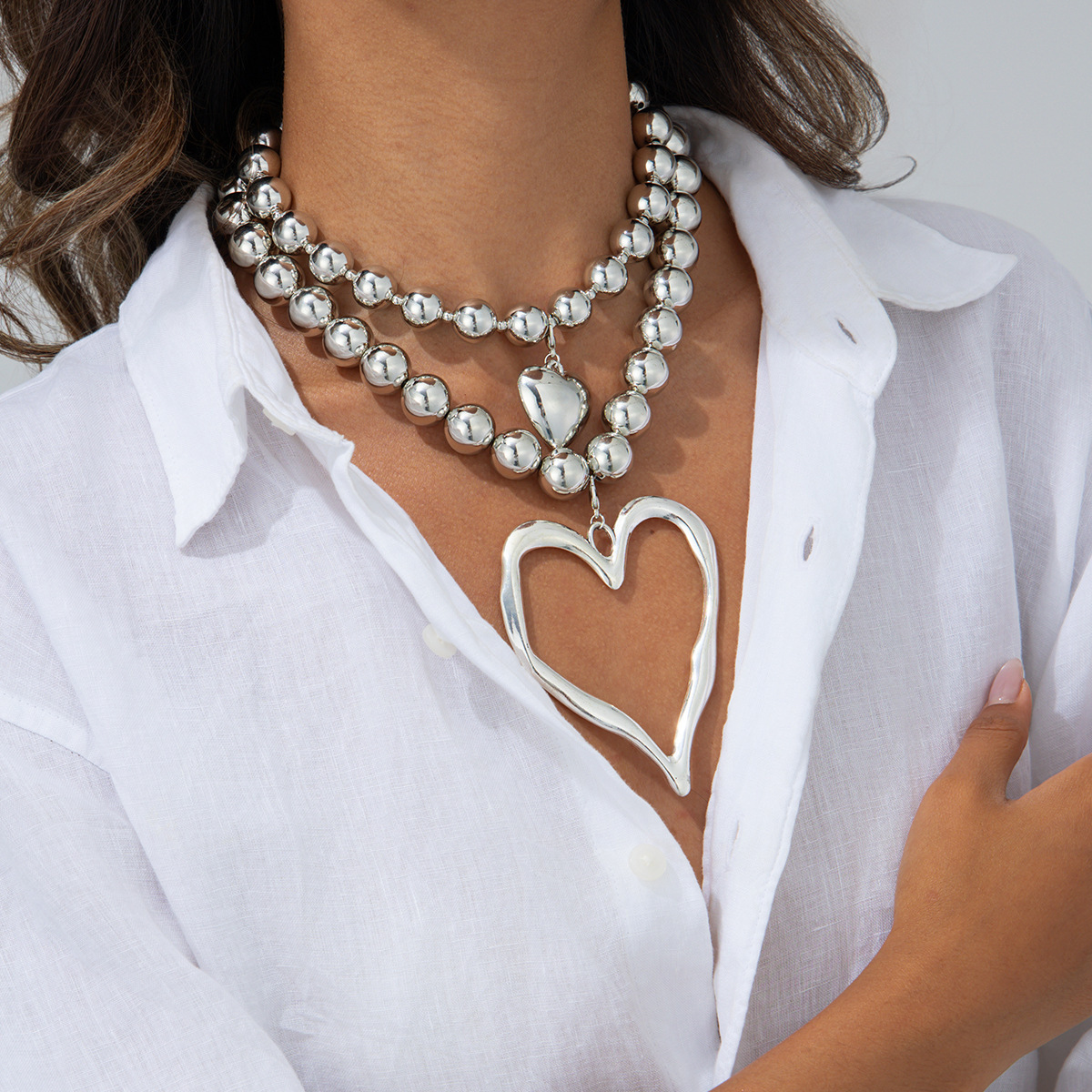 European And American Exaggerated Temperamental Love Pendant Beaded Necklace