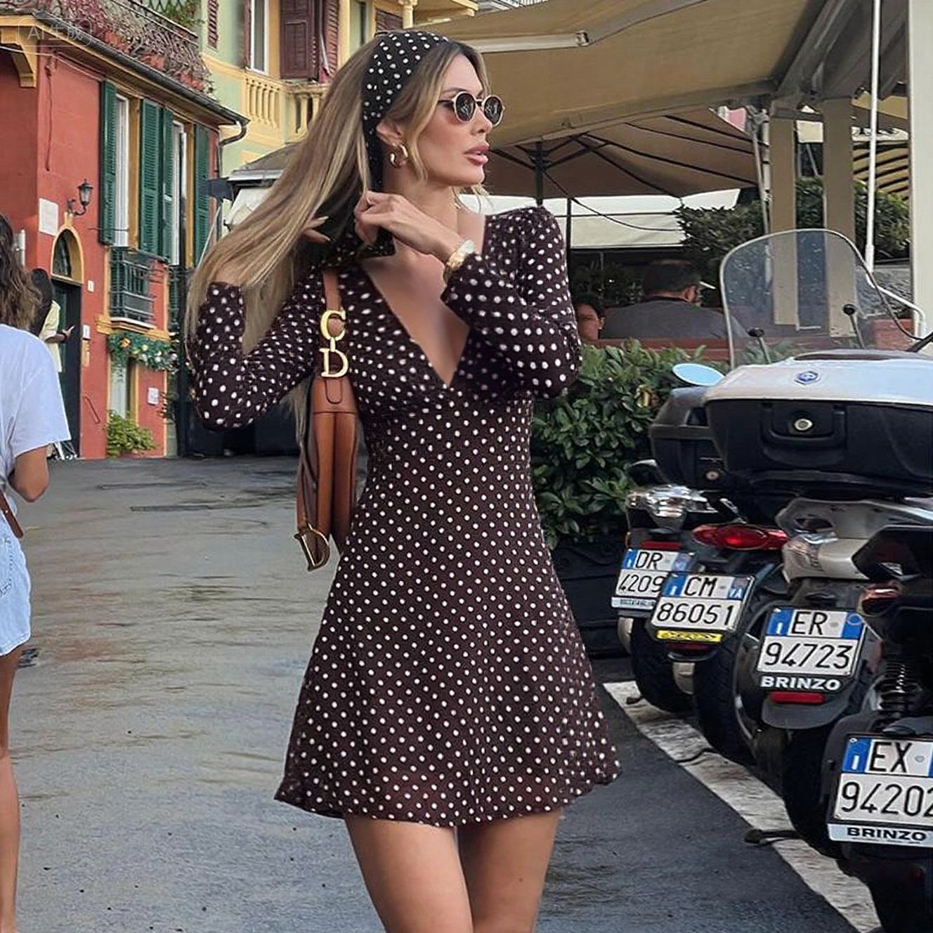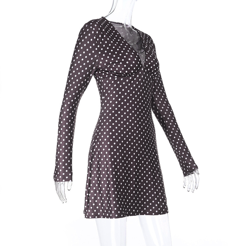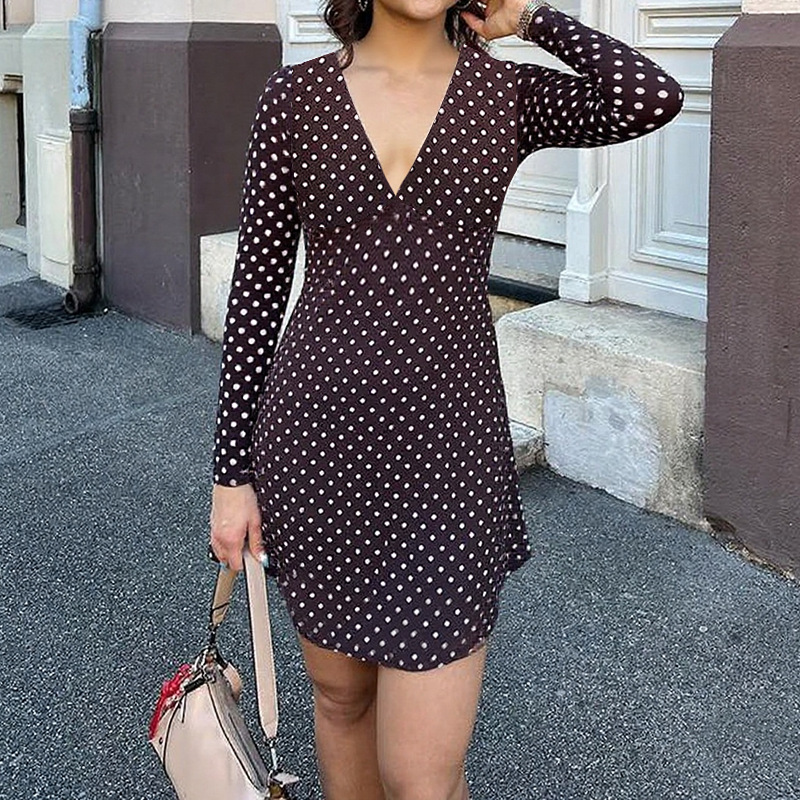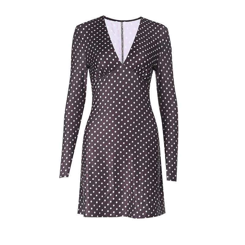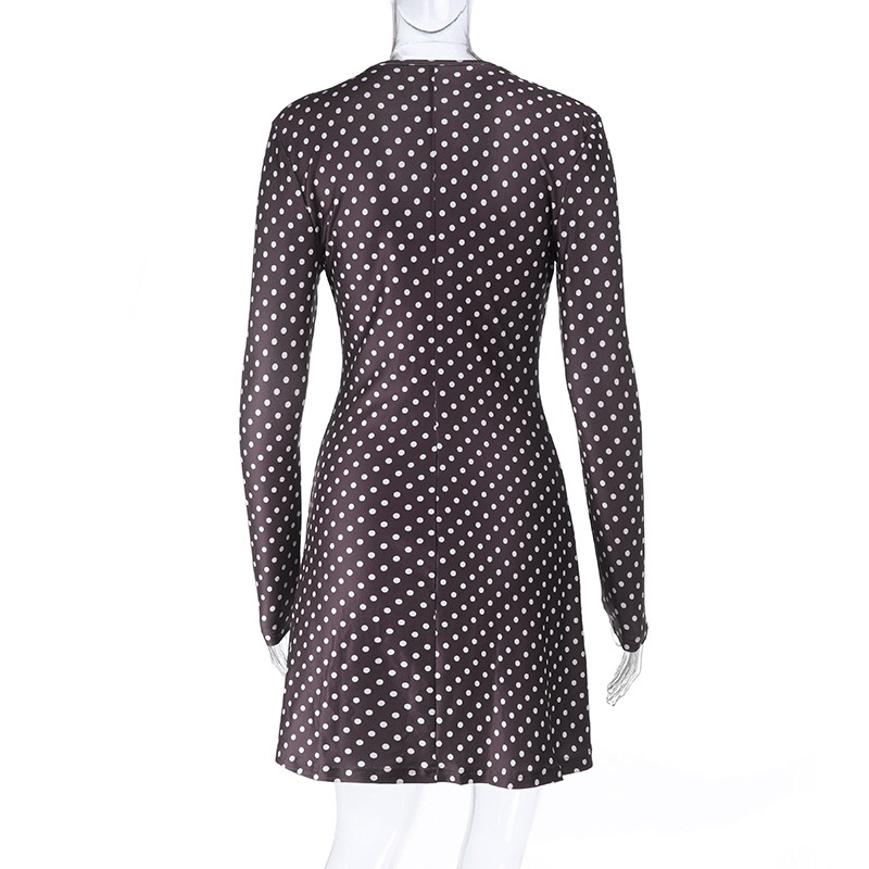 0 Review for European And American Style V-Neck Polka-Dot Long-Sleeve Dress