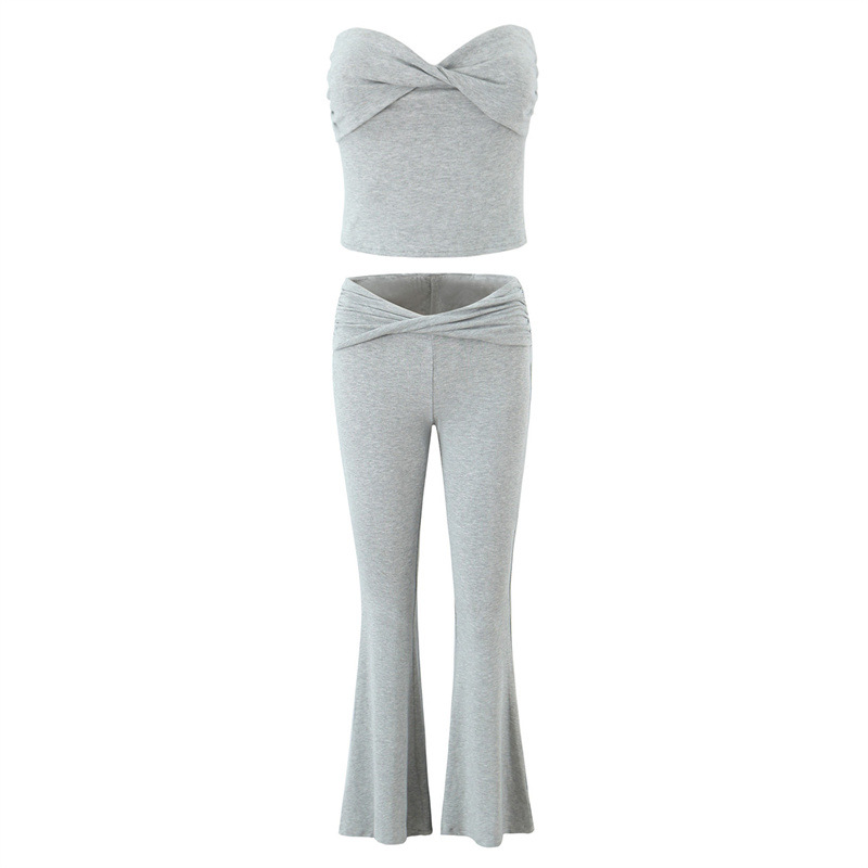 European And American Style Women's Fashion Sexy Casual Twist Tube Top Beautiful Back Tank-top Bell-bottom Pants