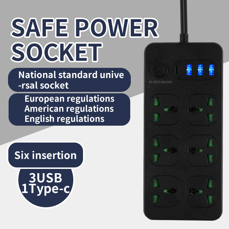 Style: 073 British standard 3-pin black 6-pin +4USB 2-meter