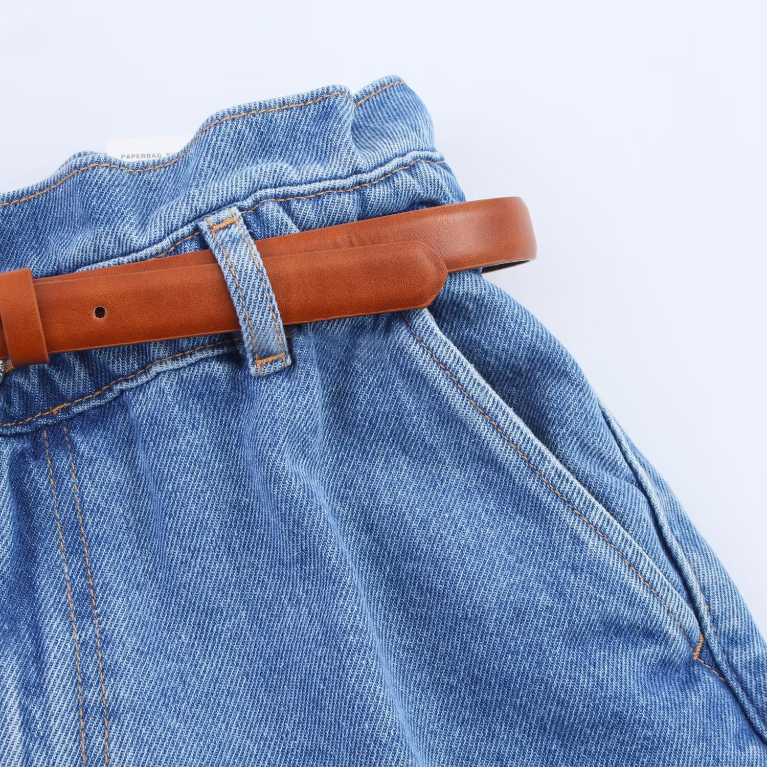 0 Review for Fashion Casual High Waist Paper Bag Denim Casual Shorts