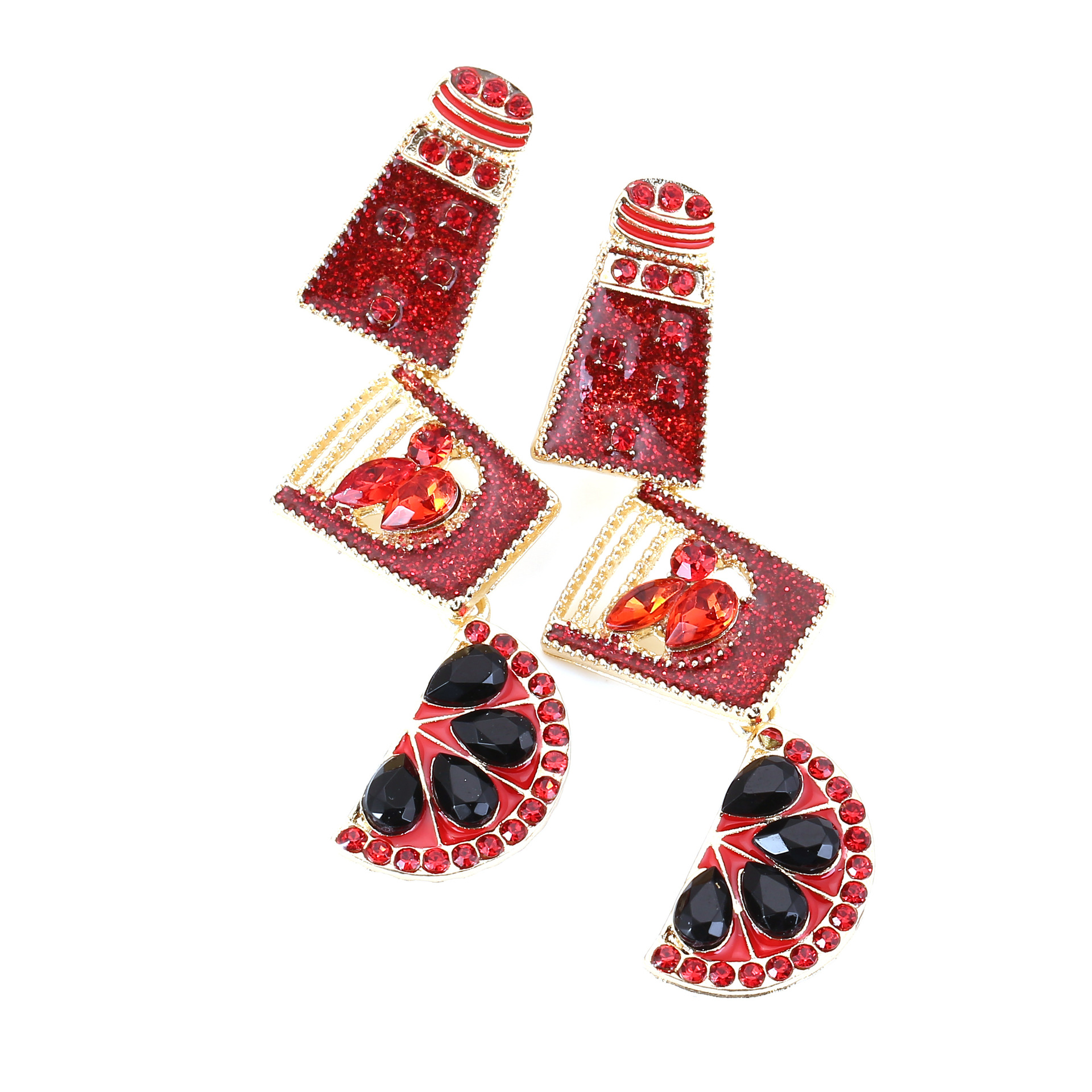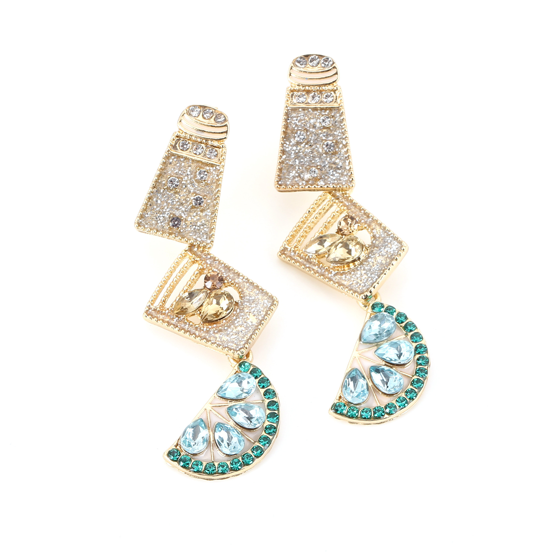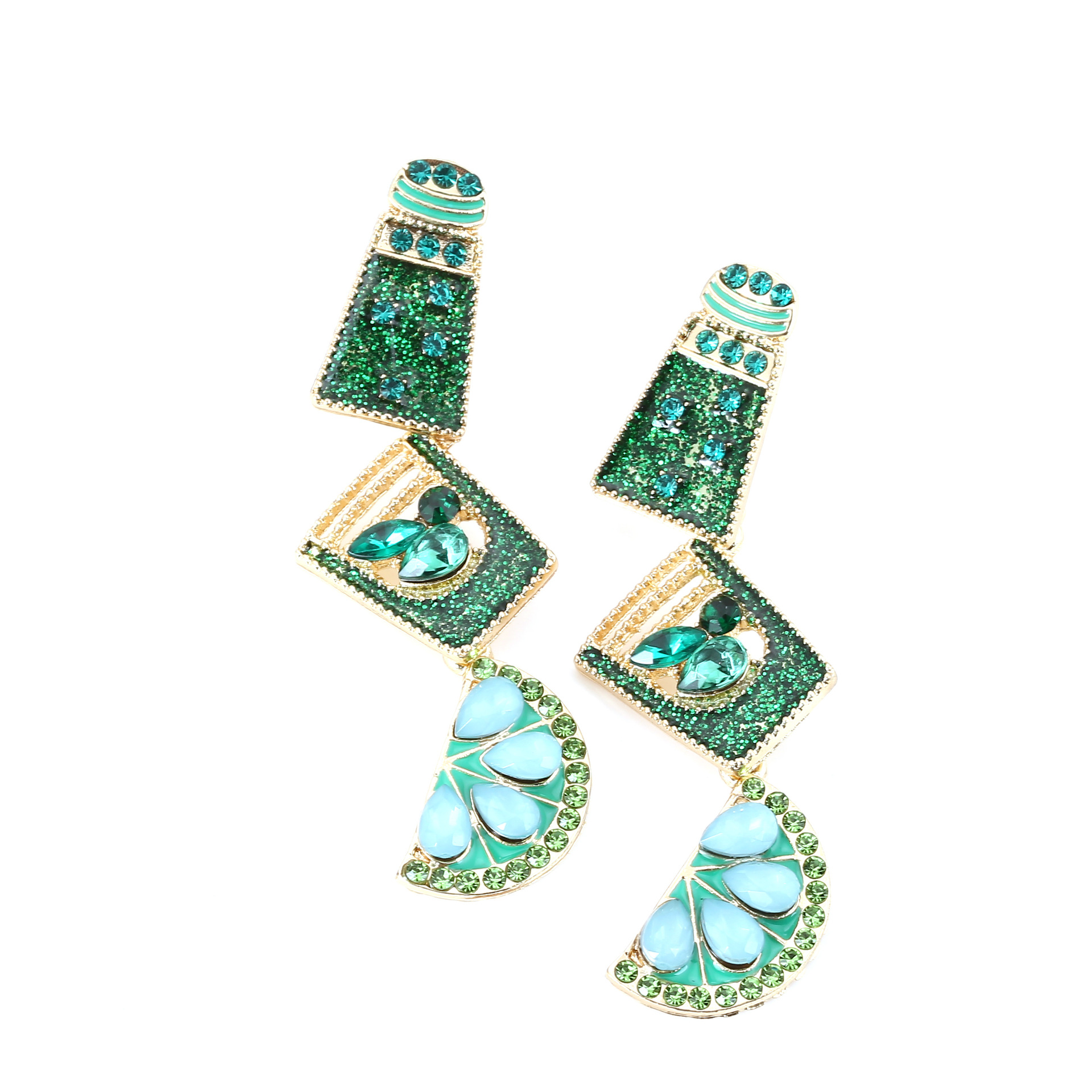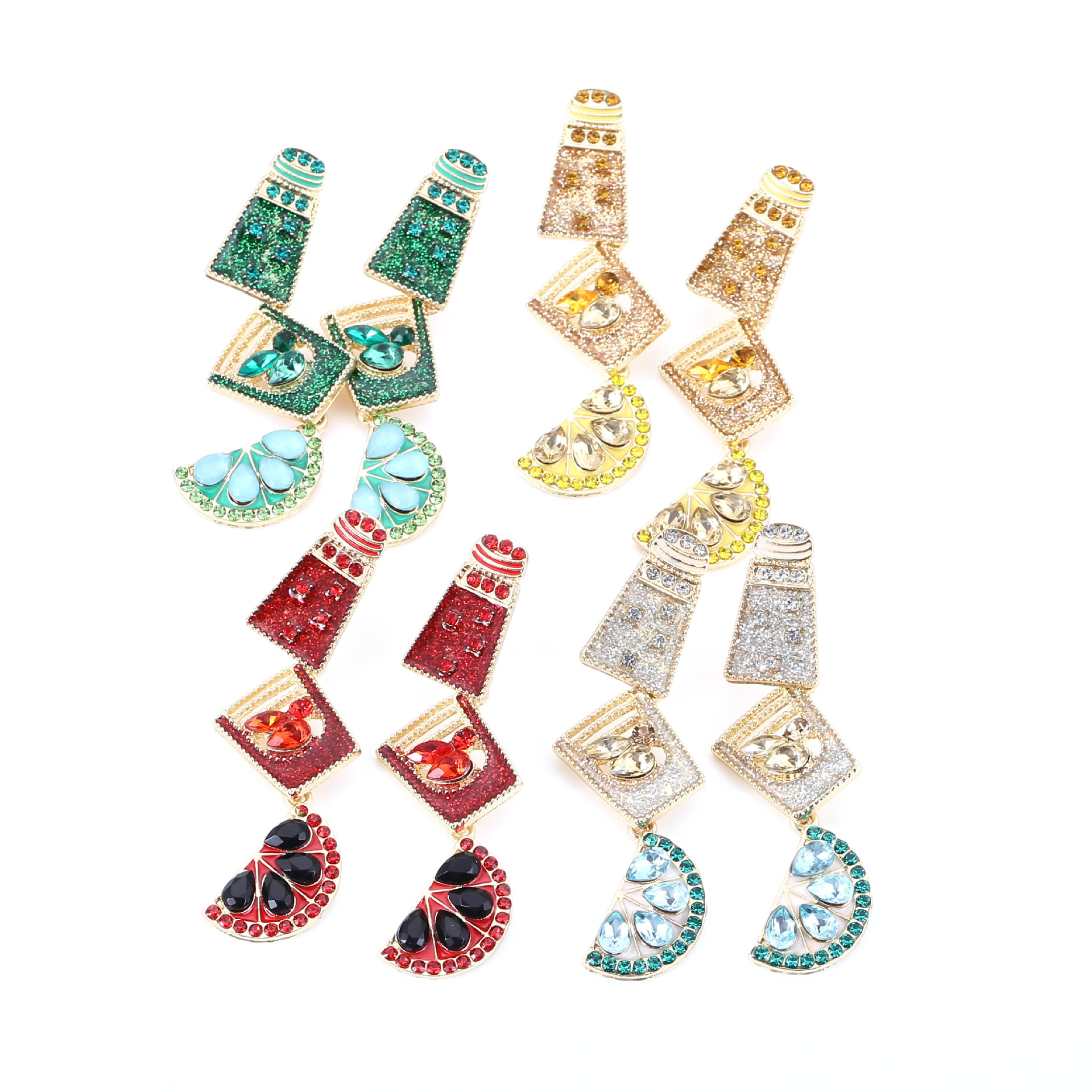 0 Review for Fashion Geometry Pattern Rhinestone Earrings Creative Multi-layer Stitching Dripping Fruit Cup Ear Studs