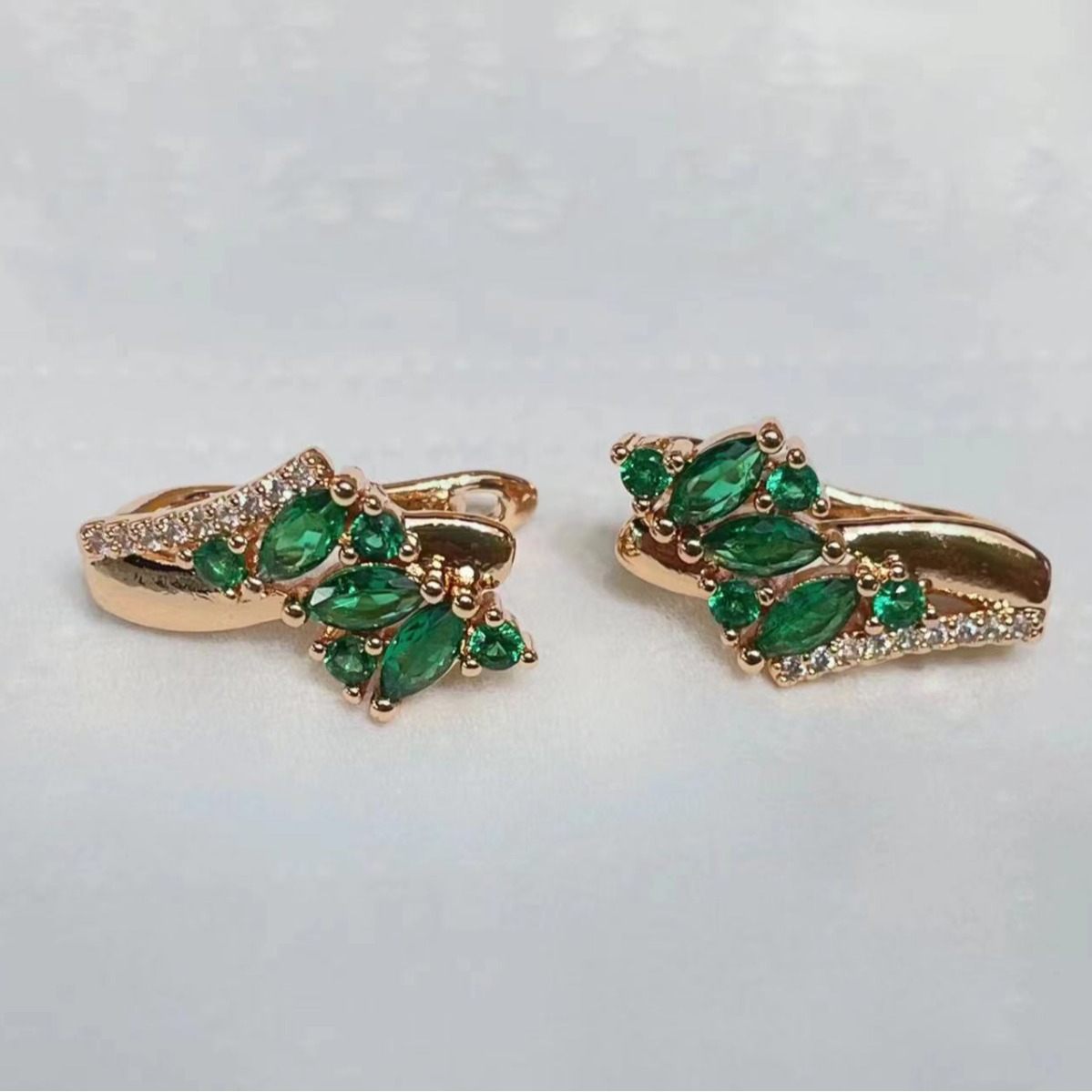 0 Review for Fashion Wild Rose Gold Peacock Green White Zircon Earrings