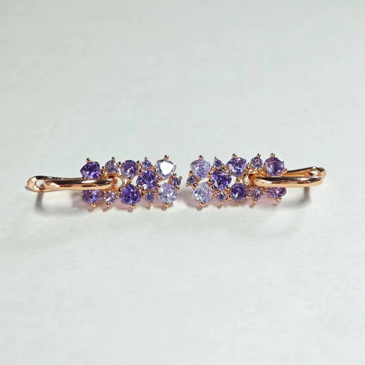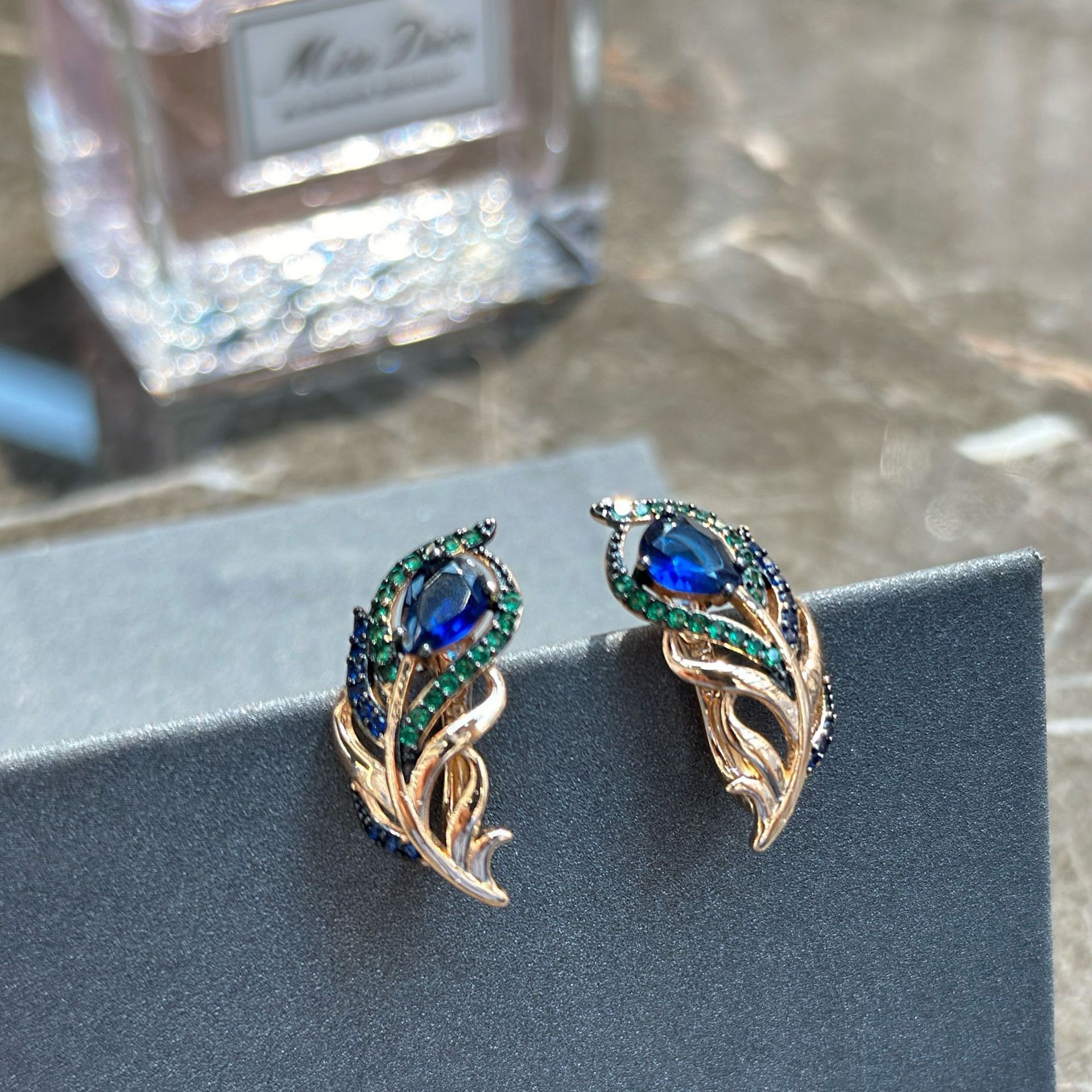 Color: purple earrings, peacock feather earrings, white earrings, dark green earrings, Cyan zircon earrings