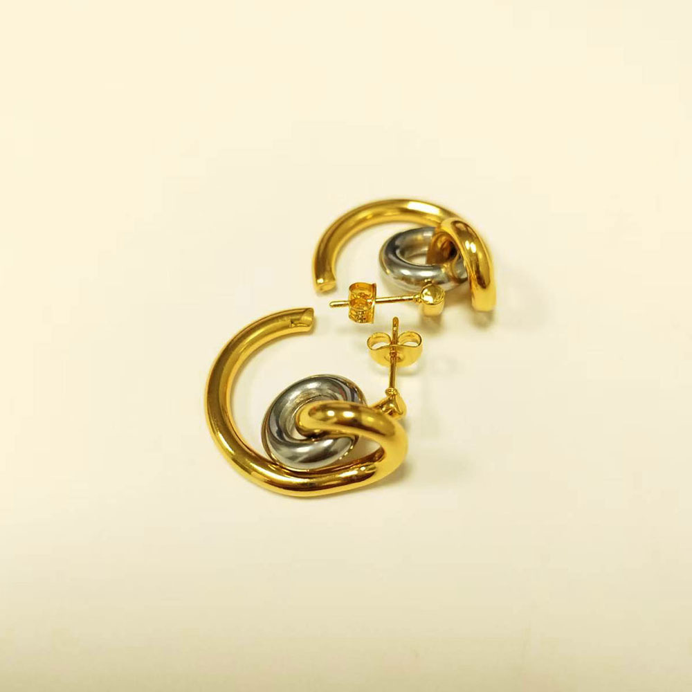 Color: color-block ear stud (gold steel), color-block ear stud (steel Gold), gold, steel color